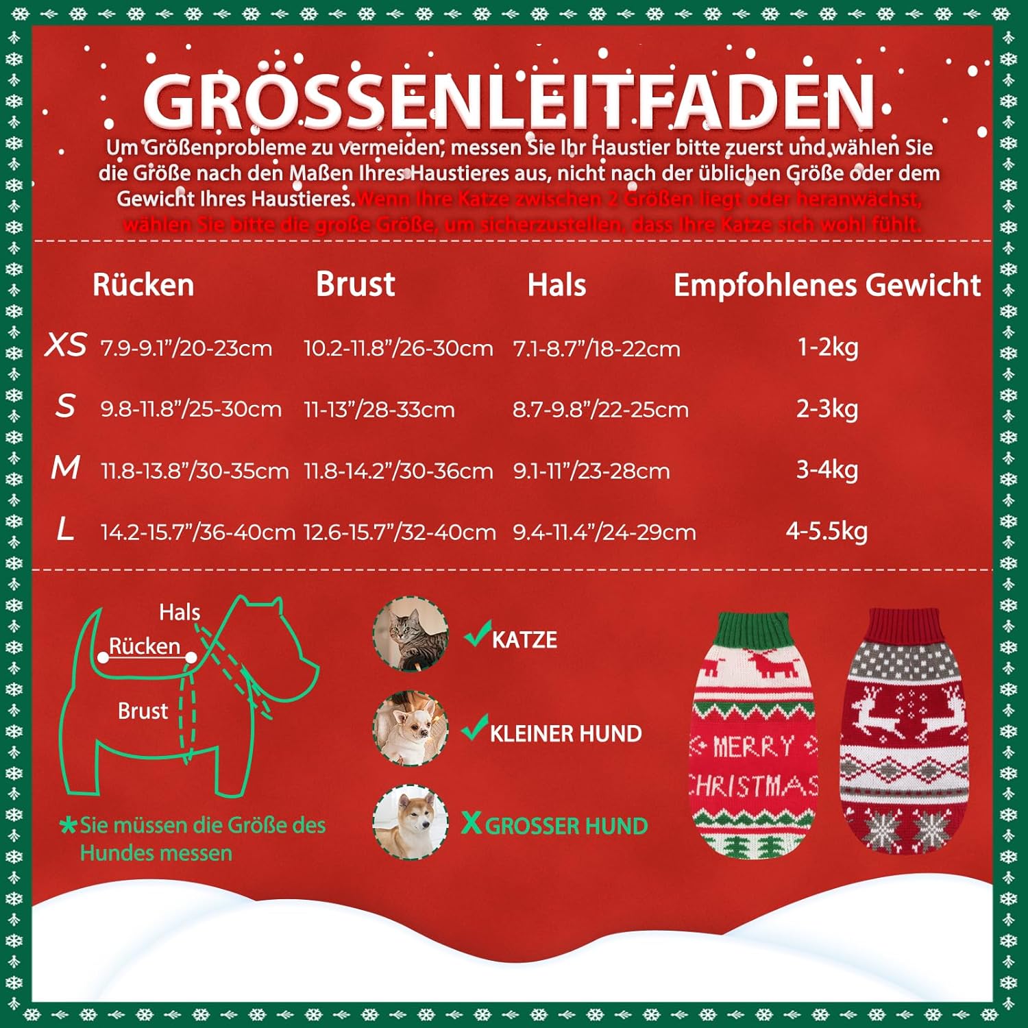• Размер: S - обиколка на врата: 22-25 см, обиколка на гърдите: 28-33 см, дължина на гърба: 25-30 см, препоръчително тегло 2-3 кг. Нашият пуловер за домашни любимци е подходящ за повечето котки и малки кучета. Моля, измерете домашния си любимец и вижте таблицата с размери преди покупка.