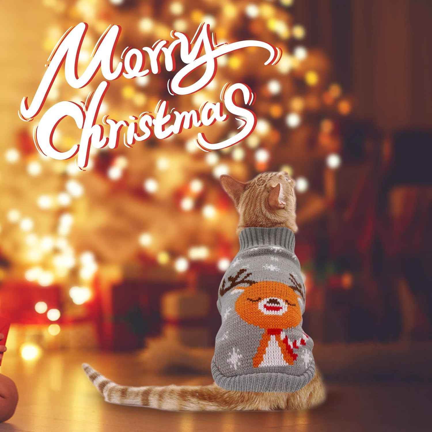 HYLYUN Комплект от 2 коледни пуловера за котки и кучета, пуловери за малки кучета, снежинки, мотив елени, плетиво, зимно палто, коледен костюм за малки кучета, който да ги държи топли