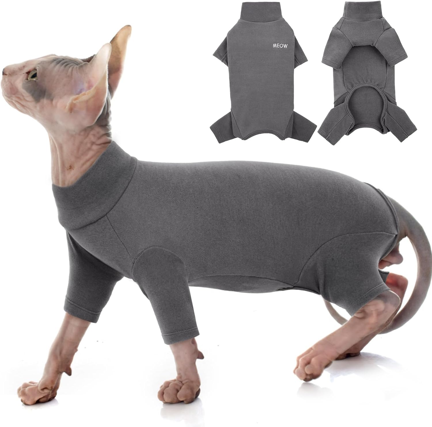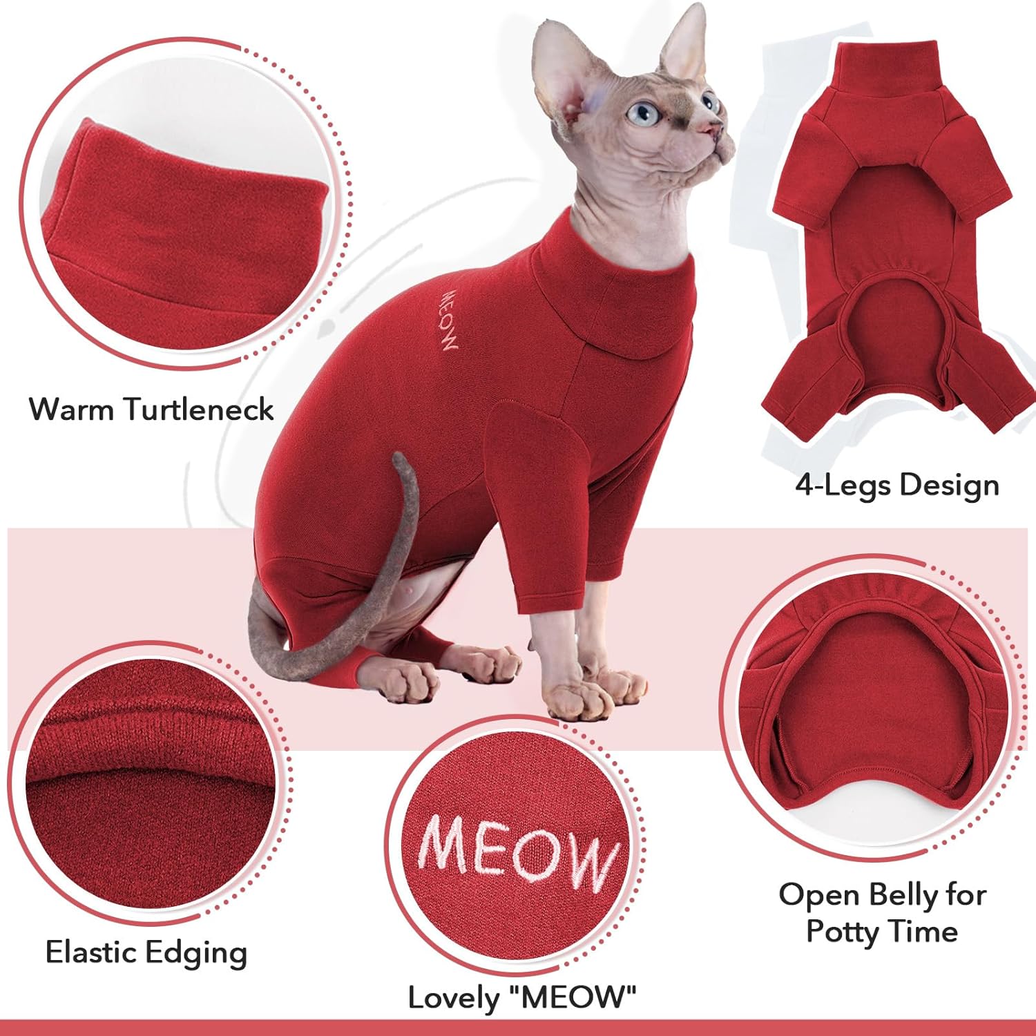 Дизайн с 4 крака – Дрехи за котки от породата Сфинкс с 4 крака и ластик под корема за перфектно прилягане.