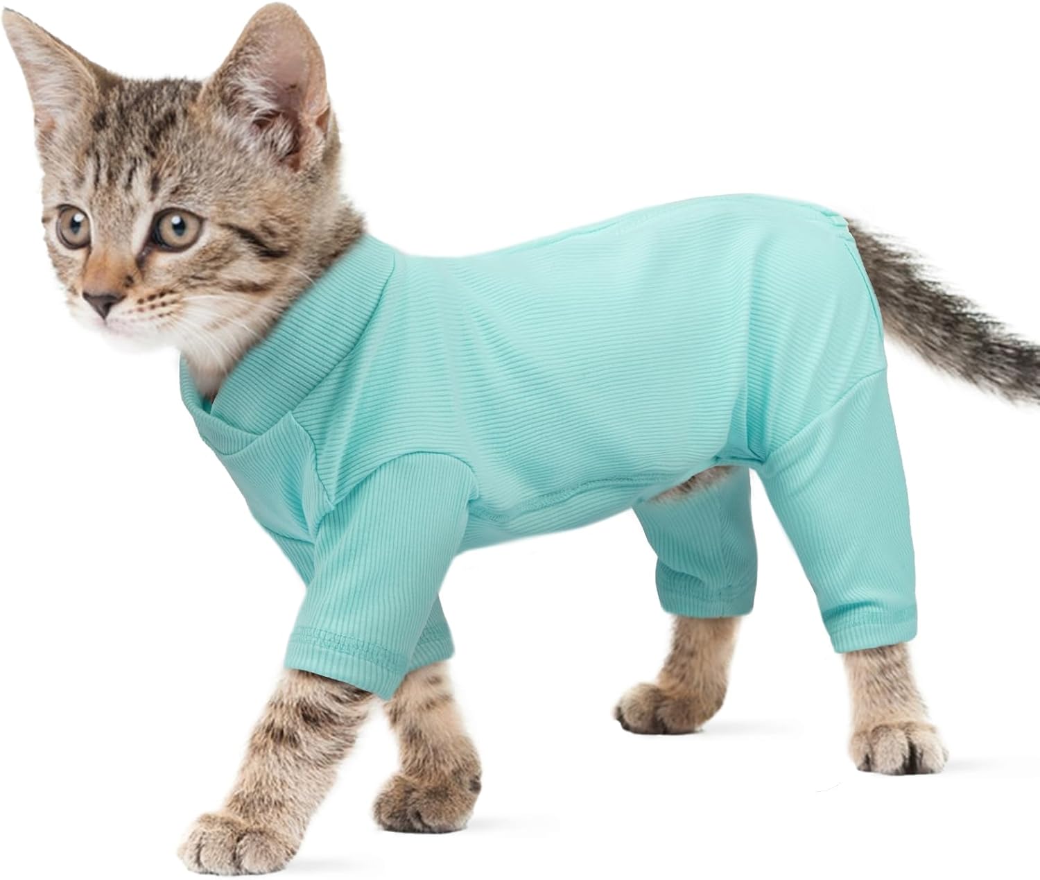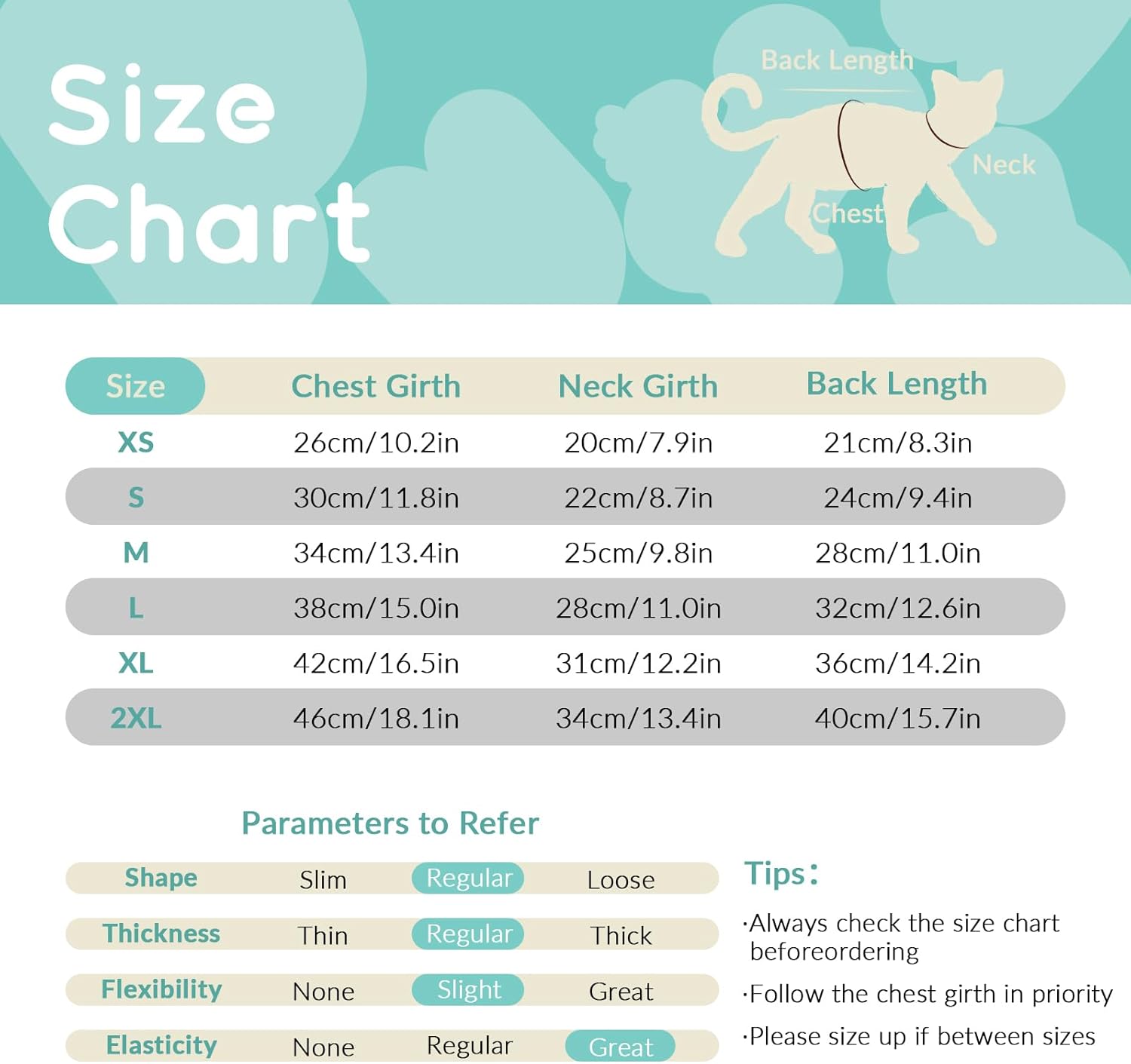 • Меки и удобни: дрешките за котки са изработени от полиестер, леки, меки, дишащи, щадящи кожата и антиалергични. Високоеластичната пижама за котки нежно обгръща тялото на вашата котка и позволява неограничена свобода на движение. Тя ви държи топли в студените дни и нощи. Подходяща е за котки от всякакъв размер.