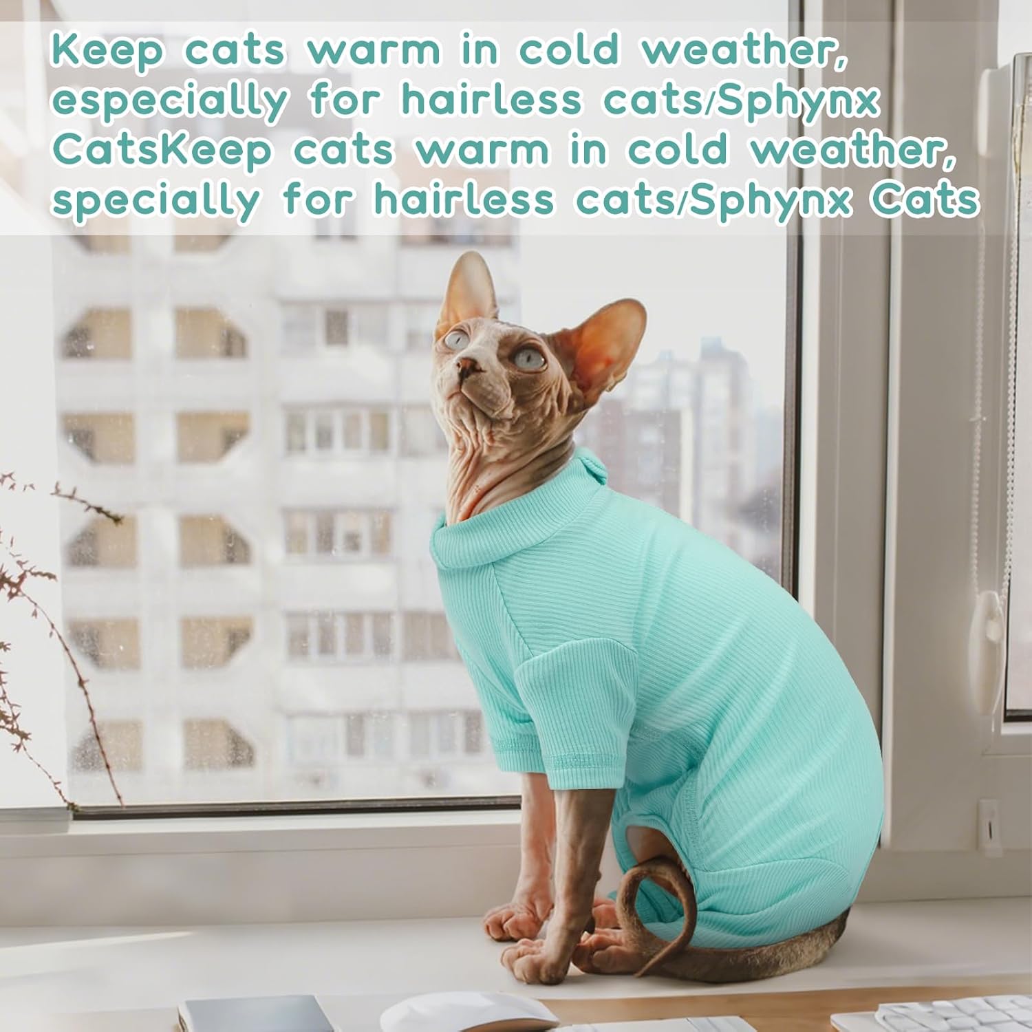 • ПОДХОДЯЩ ЗА ВСИЧКИ СЕЗОНИ Този котешки пуловер е със средна дебелина и е подходящ за всички сезони. Тези дишащи дрешки за котки Сфинкс са удобни за носене през лятото и поддържат котката ви чиста и защитена от наранявания. През пролетта и есента този топъл котешки комплект държи котката ви топла. А през зимата е топло да се носи под дебело зимно котешко яке.