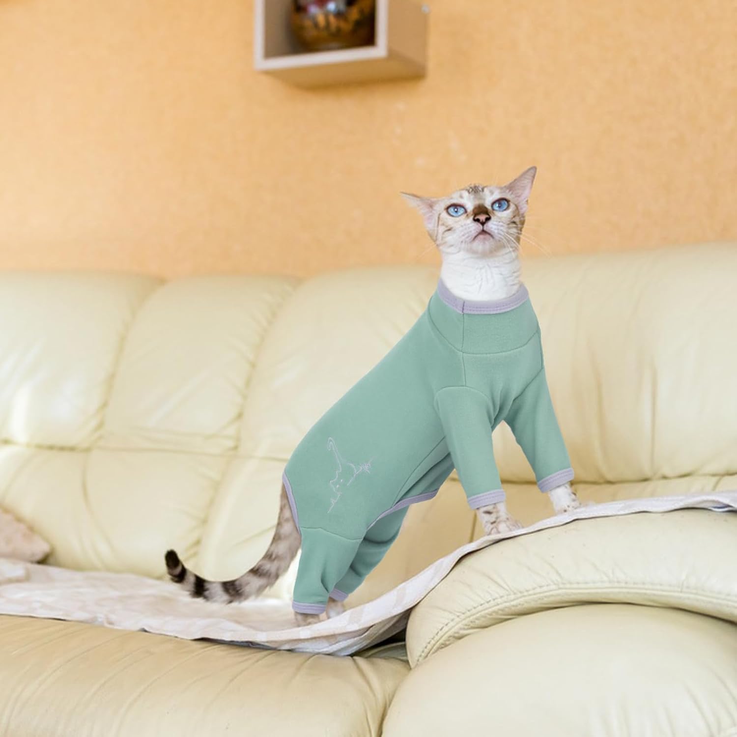 • Косма, полепнала по котките: Котките са склонни да линеят повече по време на сезонните промени. Този постоперативен котешки гащеризон ефективно предотвратява хвърчането на котешката козина и намалява количеството косми по дивани, чаршафи, дрехи и килими.