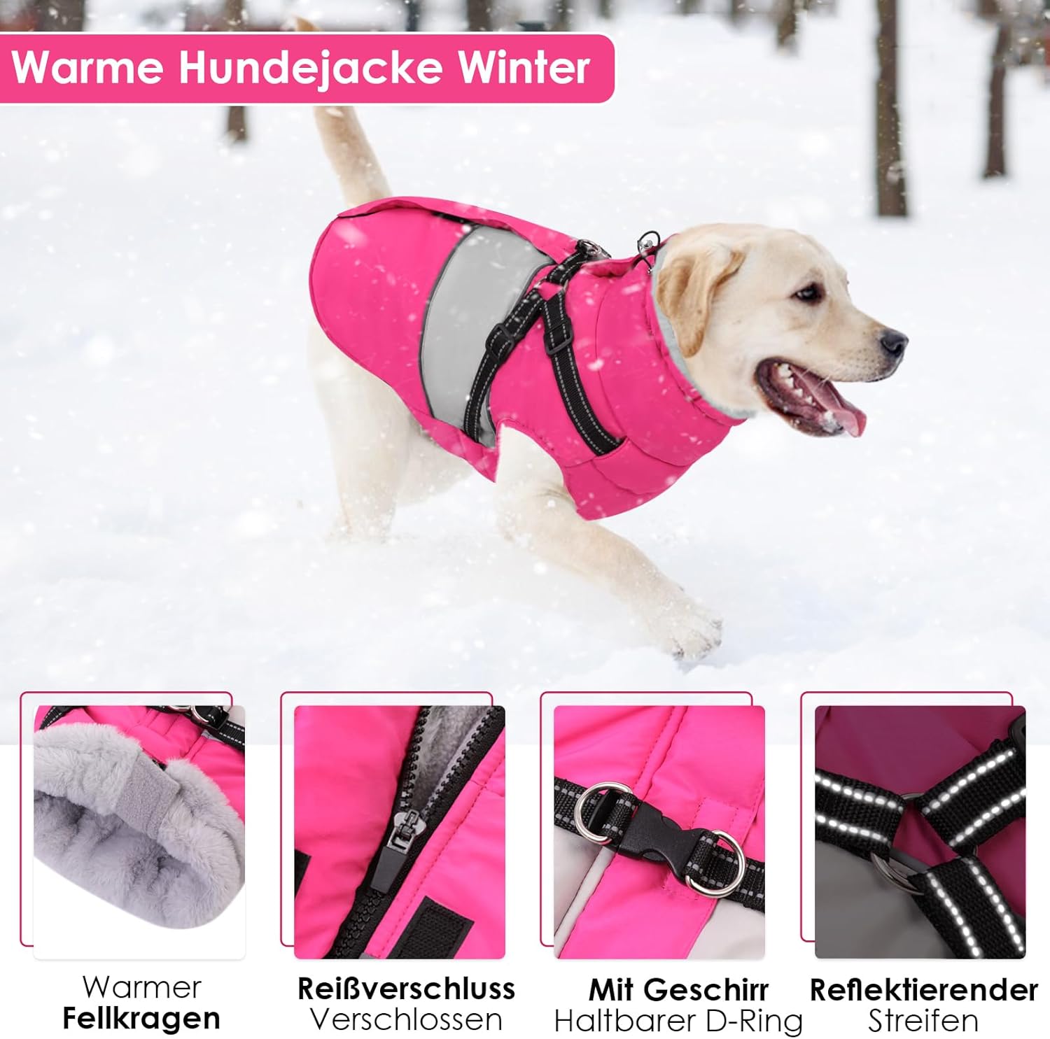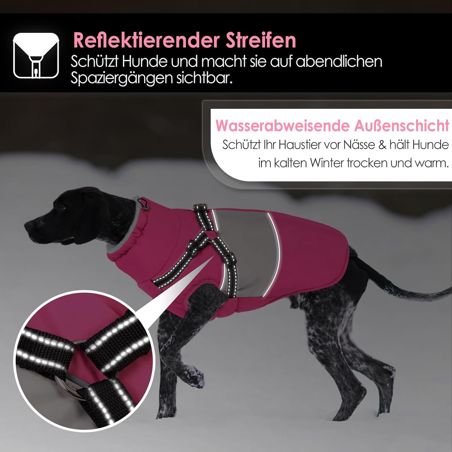 • Светлоотразително палто за кучета със защита на корема: това топло зимно палто с еластична гръдна област осигурява перфектно прилягане. Светлоотразителните ленти за безопасност на нашите зимни палта за кучета увеличават видимостта през нощта и защитават безопасността на вашето куче.
