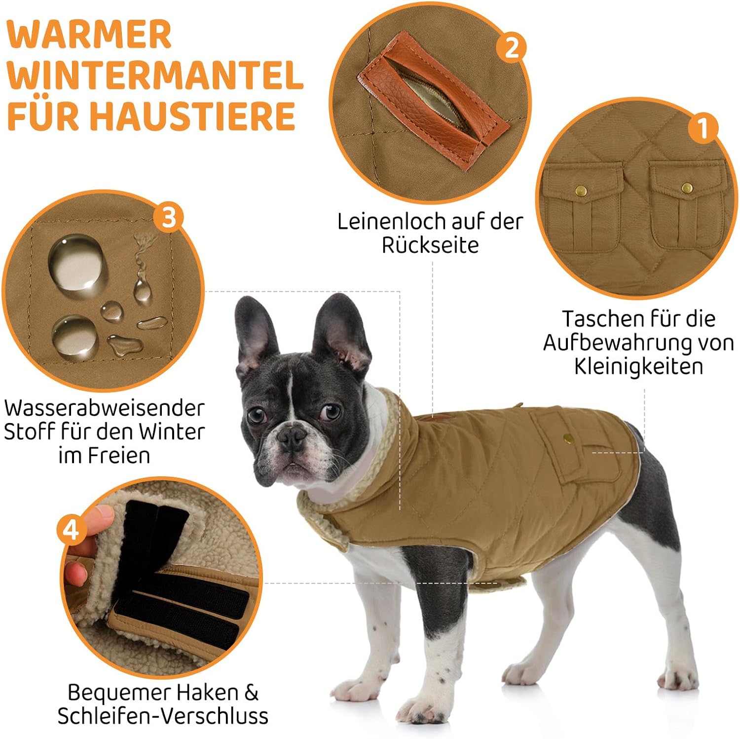 • Топло зимно палто за малки и средни кучета: Предлагаме ултра топло палто за малки кучета в малки, средни и големи размери; то е удобно и се регулира; налични са размери от XS до L; нашият размер може да се различава от размера, който вашият домашен любимец обикновено носи; моля, прочетете нашата таблица с размери, преди да изберете размер.