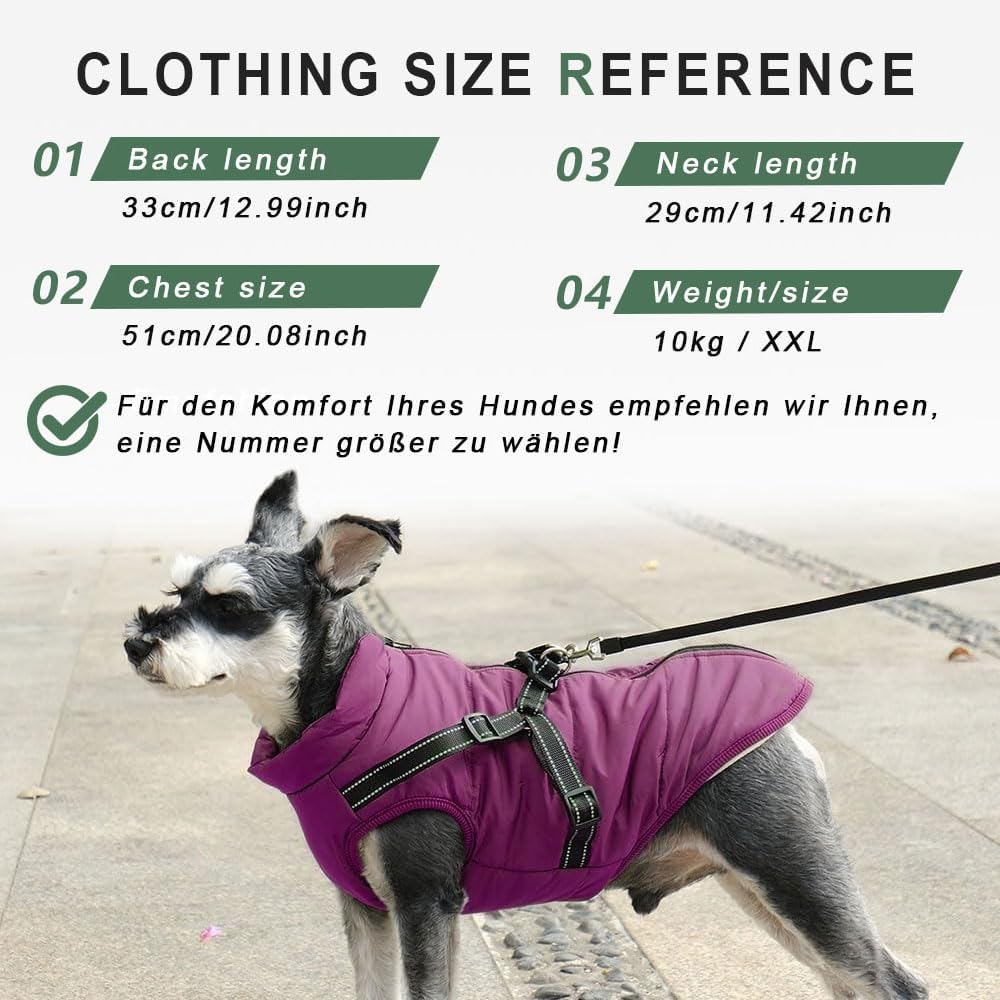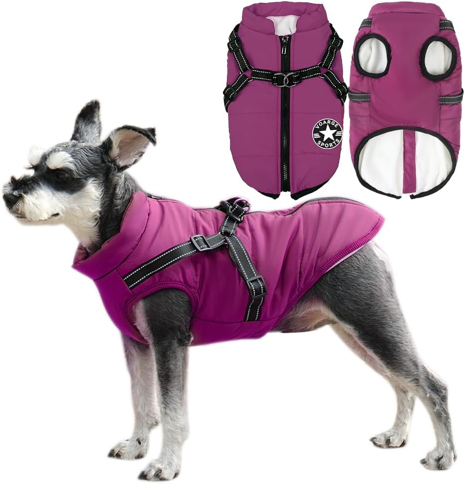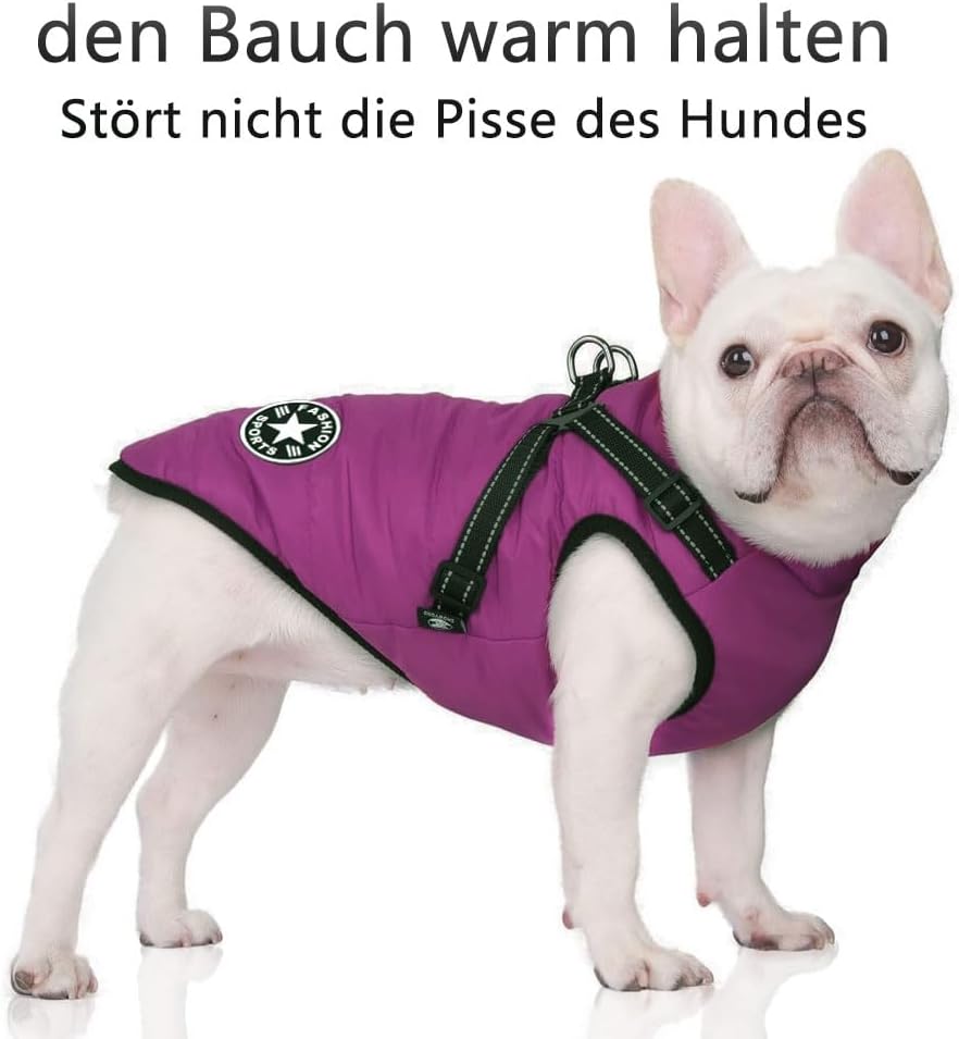Яке за кучета, зимен жилет, палто за кучета с хамут, за малки кучета, водоустойчиво, може да се пере в пералня, дизайн със светлоотразителни ленти, издръжлив D-образен пръстен (S, лилаво)