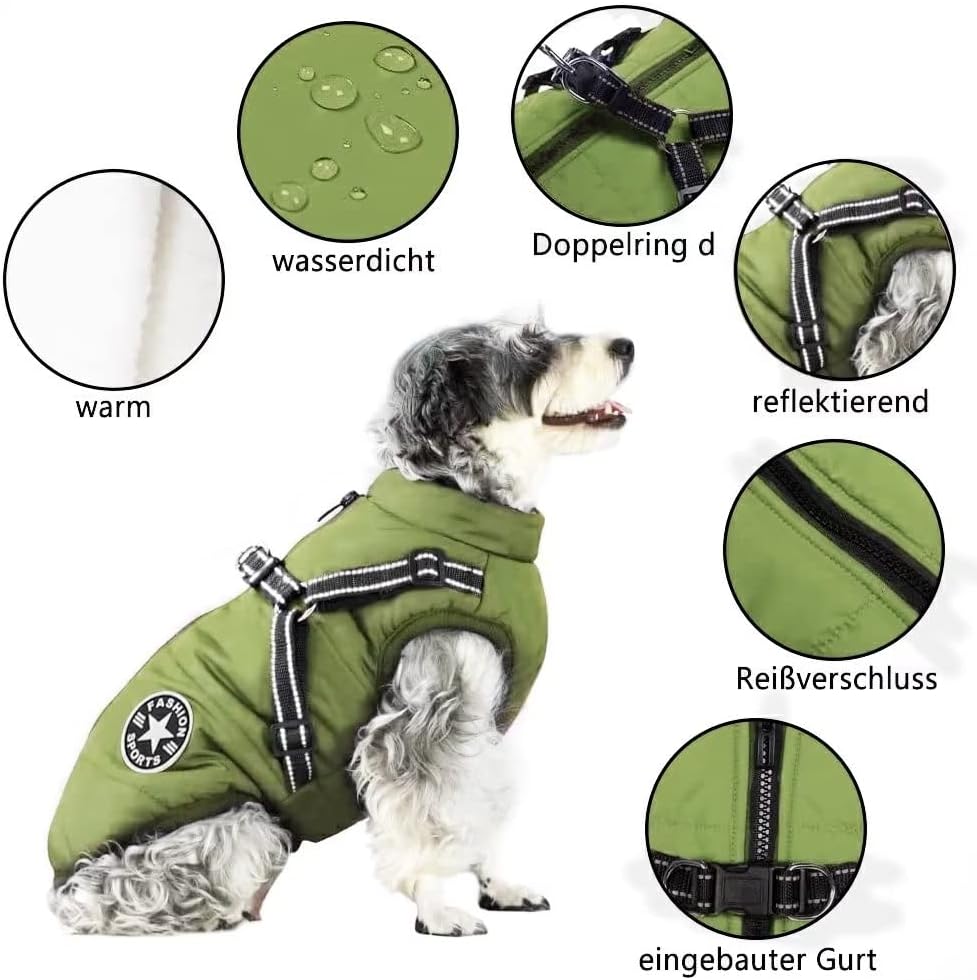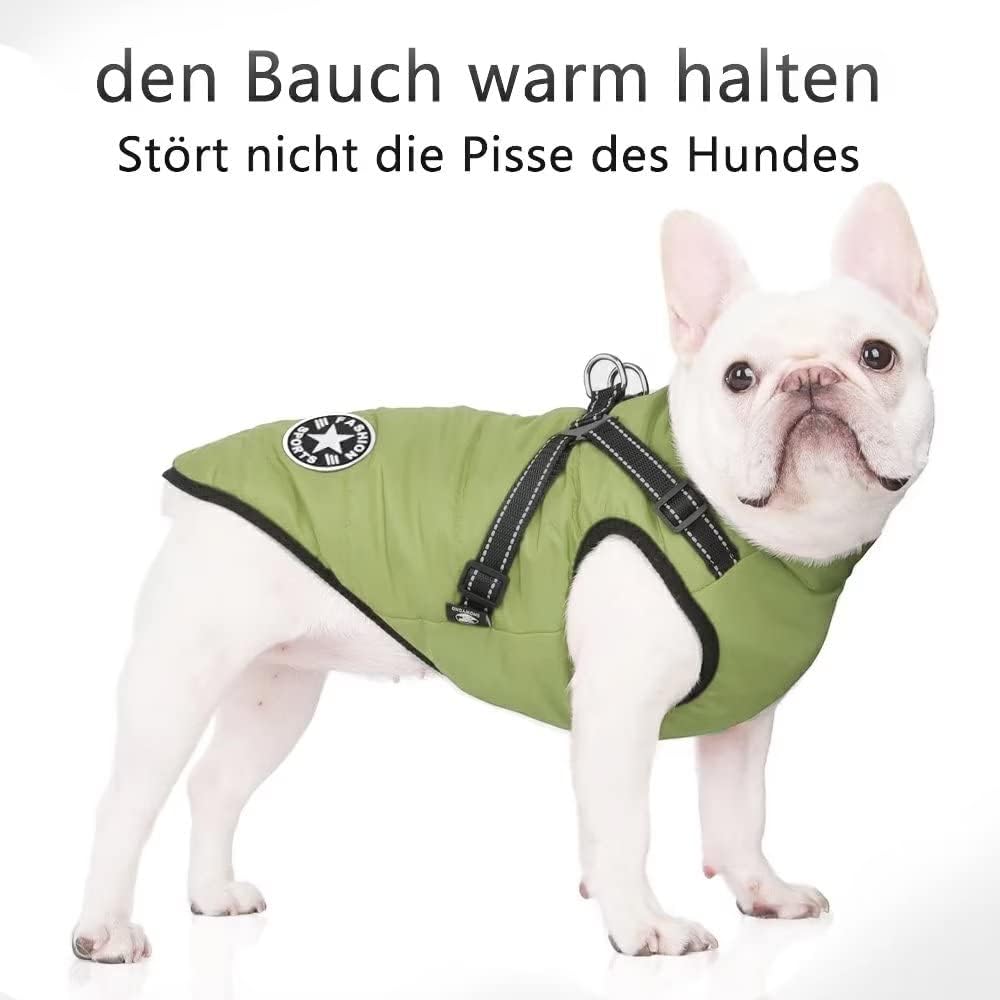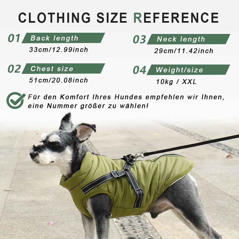 Яке за кучета, зимен жилет, палто за кучета с хамут, за малки кучета, водоустойчиво, може да се пере в пералня, дизайн със светлоотразителни ленти, издръжлив D-образен пръстен (XL, зелено)