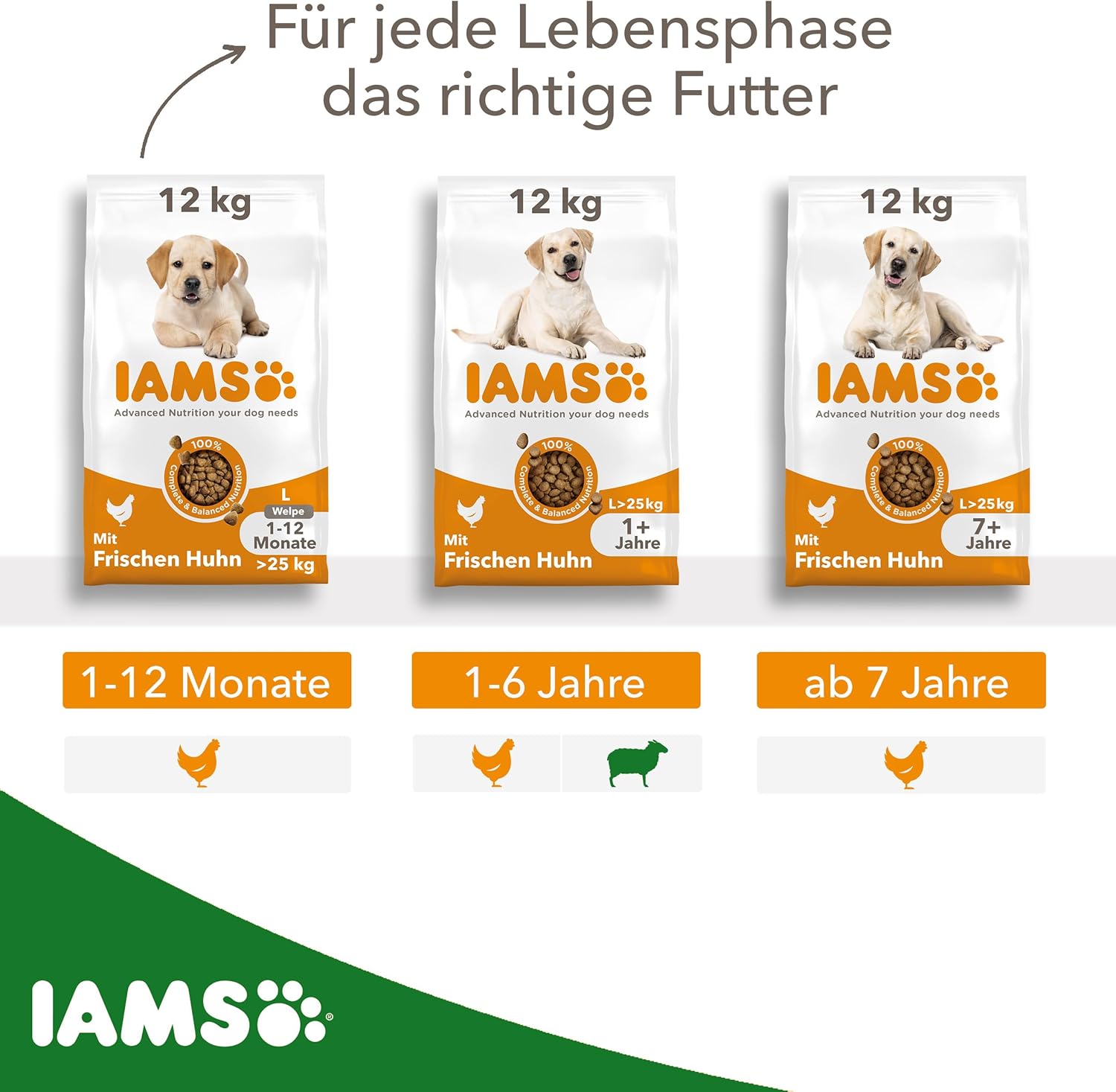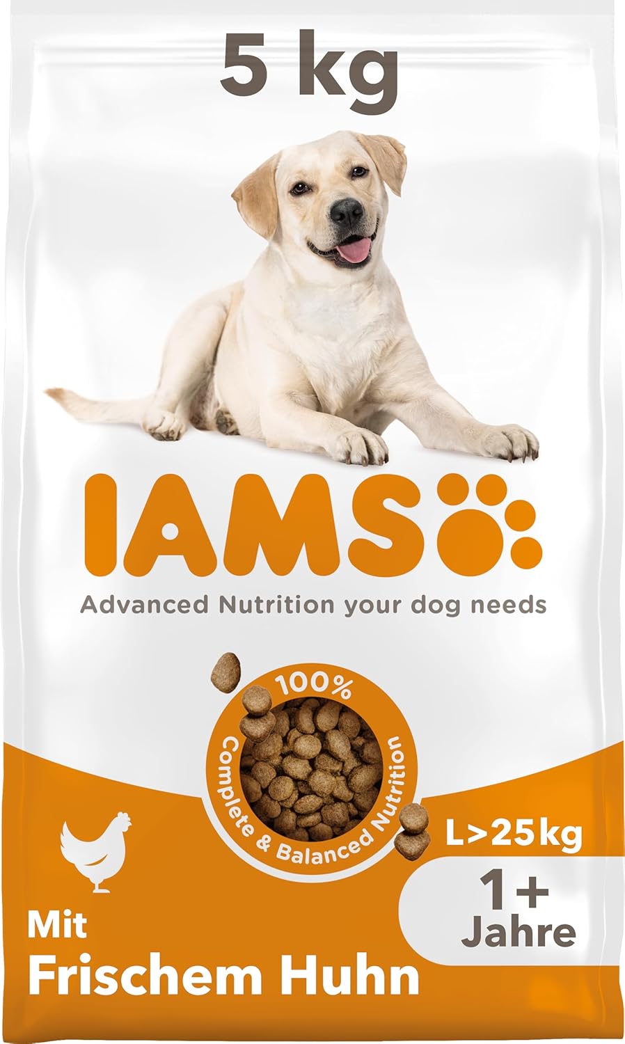 Преходът към храна IAMS трябва да бъде постепенен в продължение на 4 дни. Количеството храна на вашето куче може да варира в зависимост от възрастта, темперамента и нивото на активност. За възрастни кучета с тегло над 25 кг препоръчваме IAMS Adult Large size.
