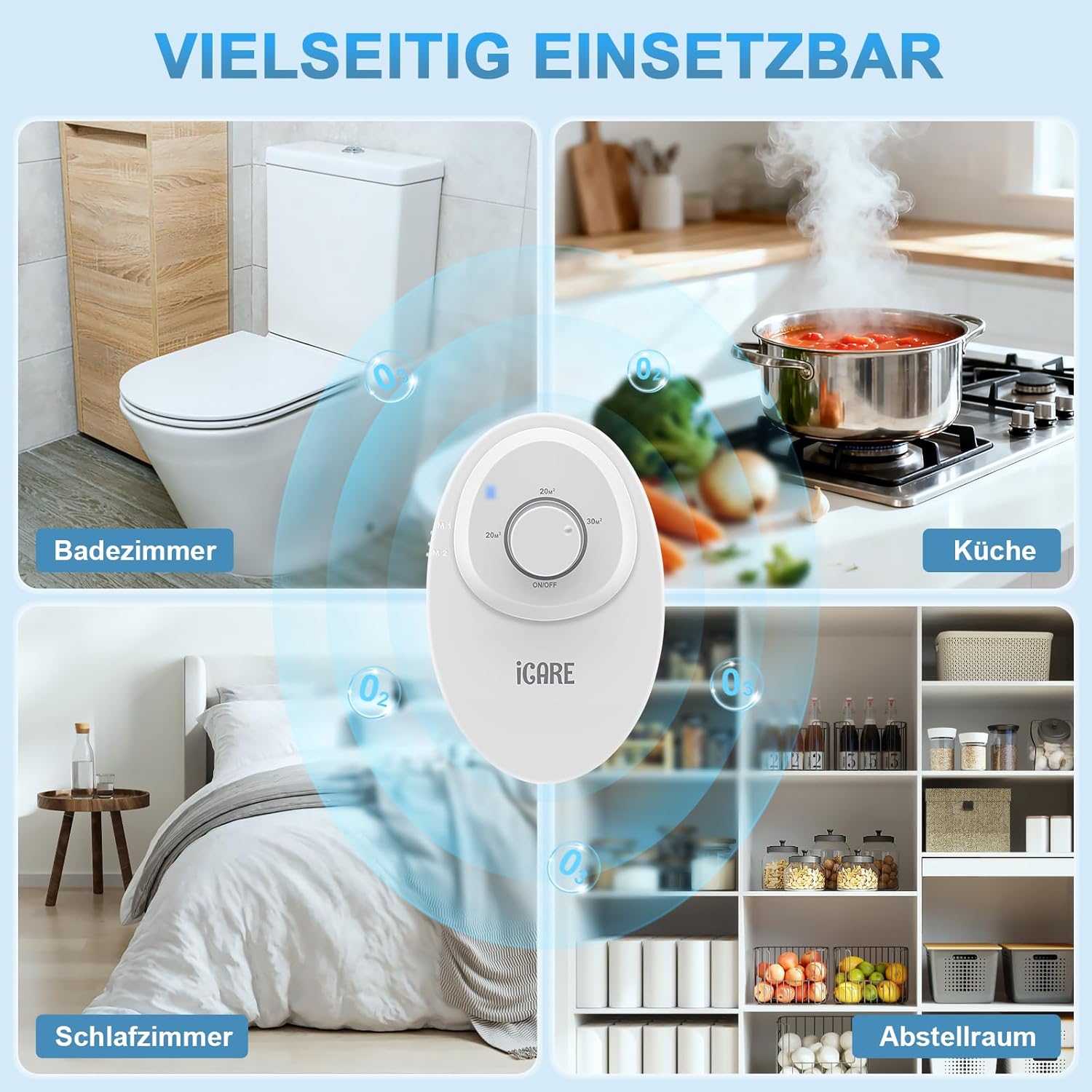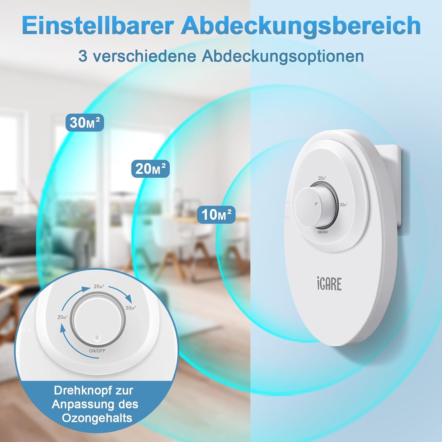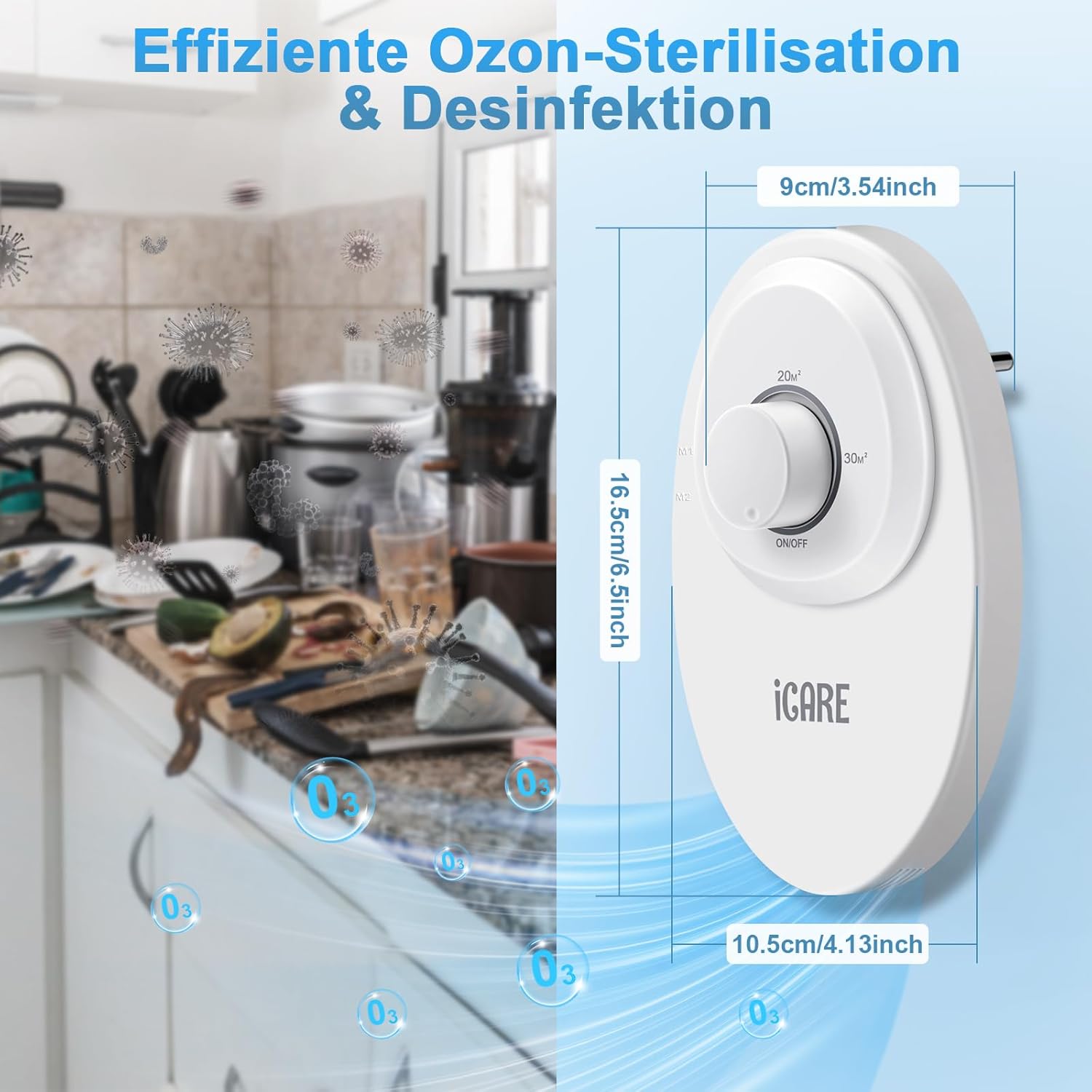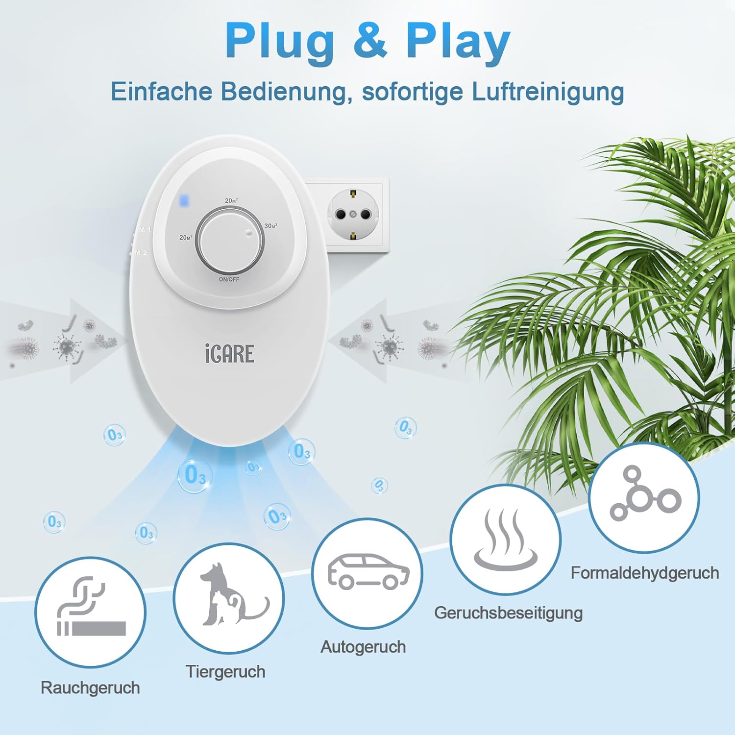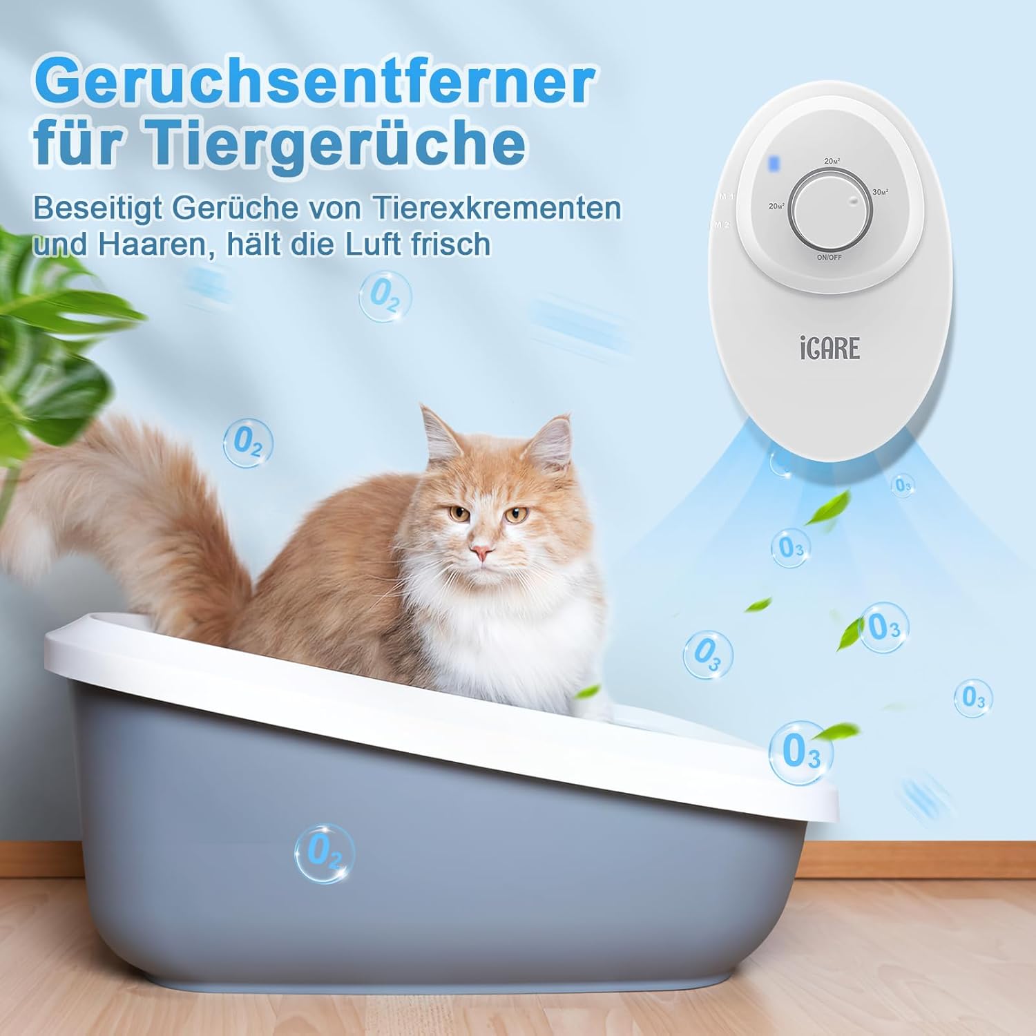 ICARE Озонов генератор, пречиствател на въздух, 120 мг/ч озонов премахвач на миризми, елиминатор на миризми за дома, котешка тоалетна, дезодорант за кучета, лесен за употреба, озоново устройство за 30㎡ баня, кухня, дим, автомобили