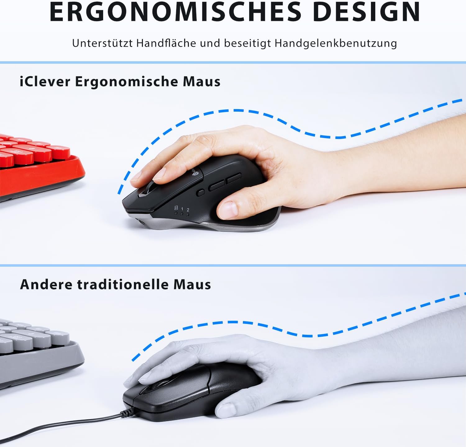 • Тиха работа: Вършете задачите си тихо, без да безпокоите другите! Безжичната ергономична мишка прави всяко щракване на левия и десния бутон и завъртането на колелцето на мишката прецизно и безшумно, което значително подобрява вашата концентрация, учене и производителност. Благодарение на бутоните за превключване напред и назад, сърфирането в интернет е много по-плавно и по-бързо!