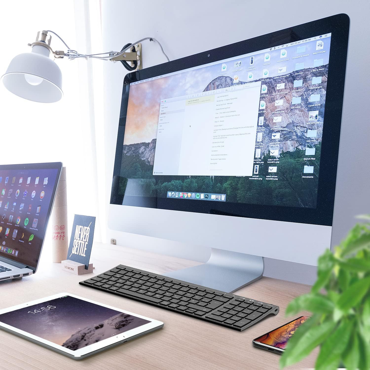 iClever BK10 Bluetooth клавиатура, безжична презареждаща се клавиатура с 3 Bluetooth канала, стабилна връзка, ултратънък ергономичен дизайн, безжична клавиатура за iOS, Android, Windows, черна