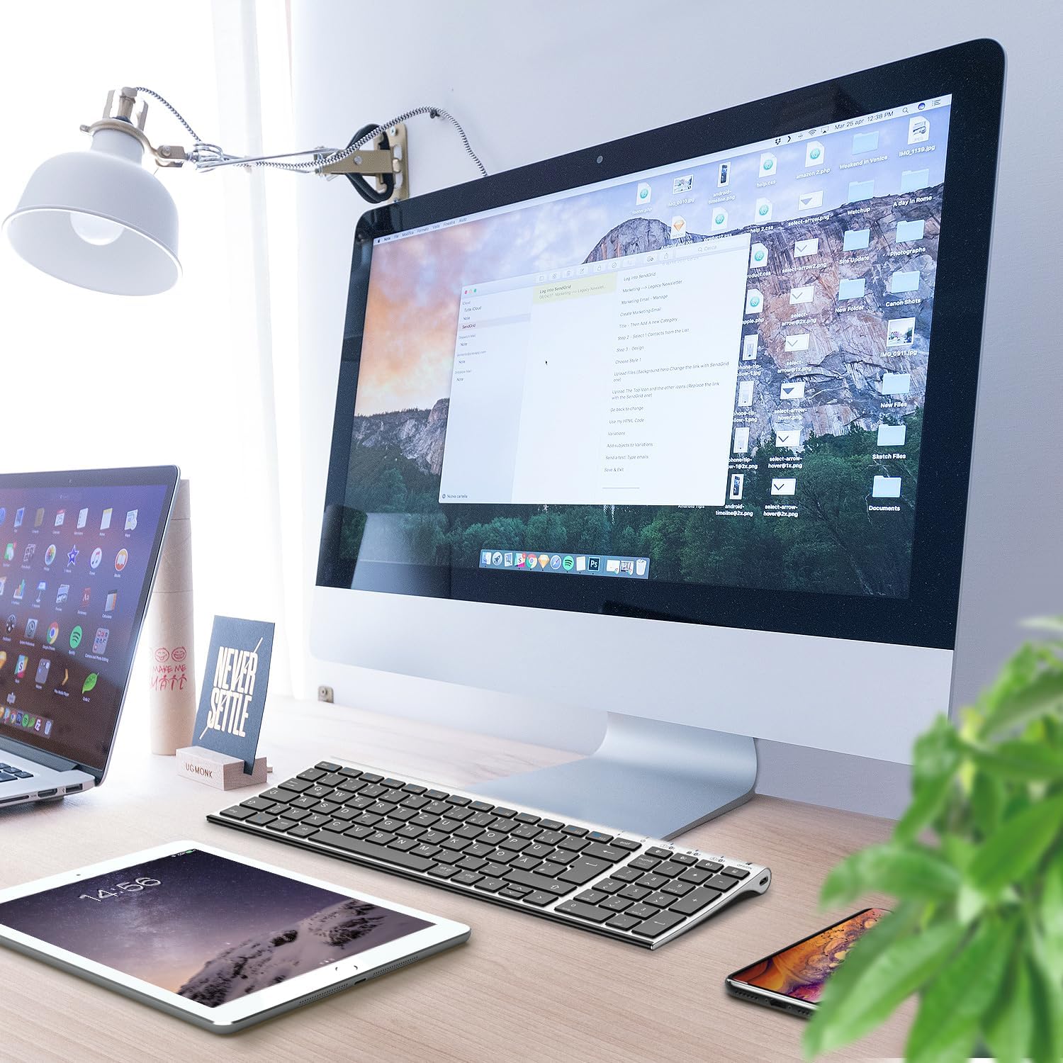 iClever BK10 Bluetooth клавиатура, безжична, презареждаща се с 3 Bluetooth канала, стабилна връзка, ултратънък ергономичен дизайн, безжична клавиатура за iOS, Android, Windows