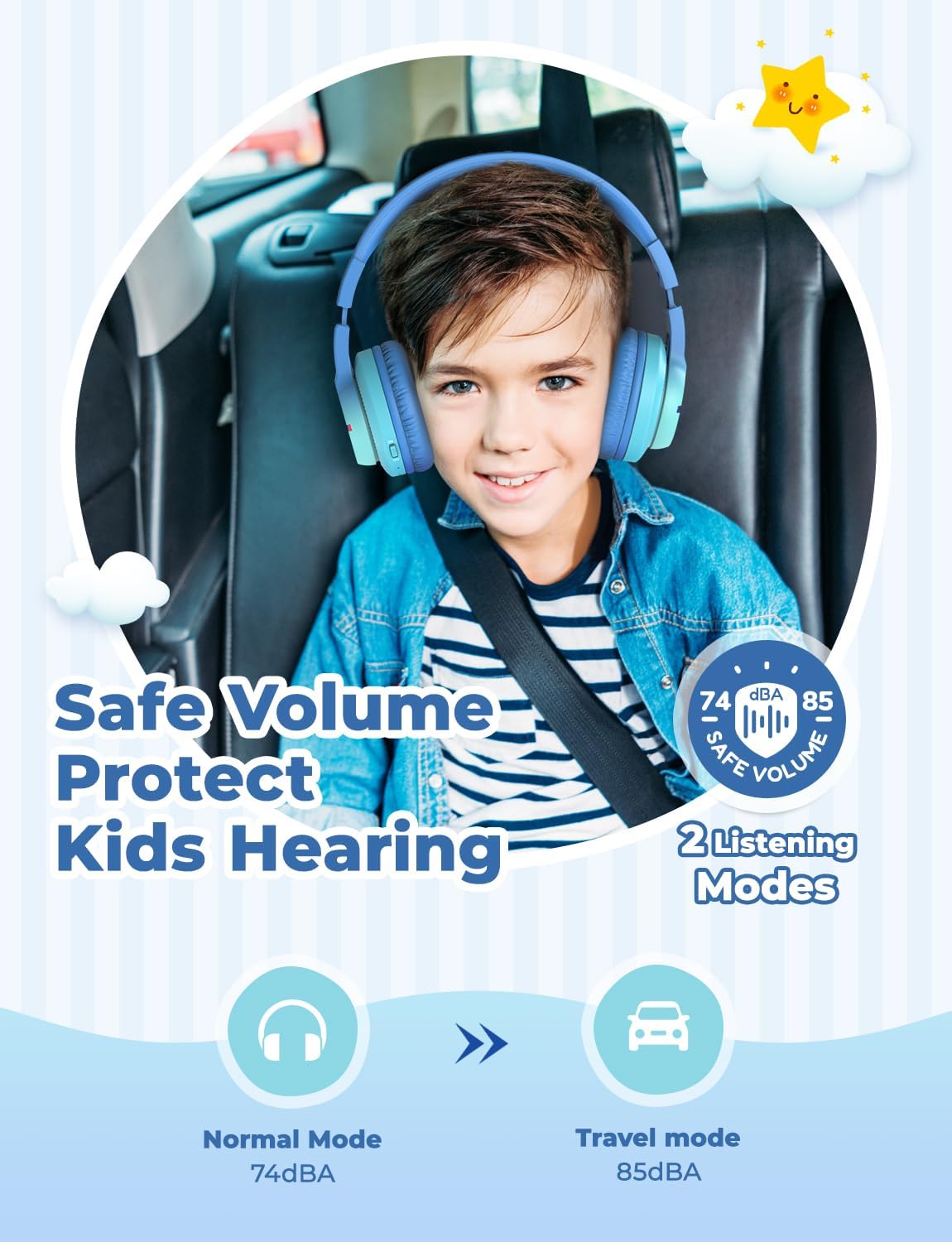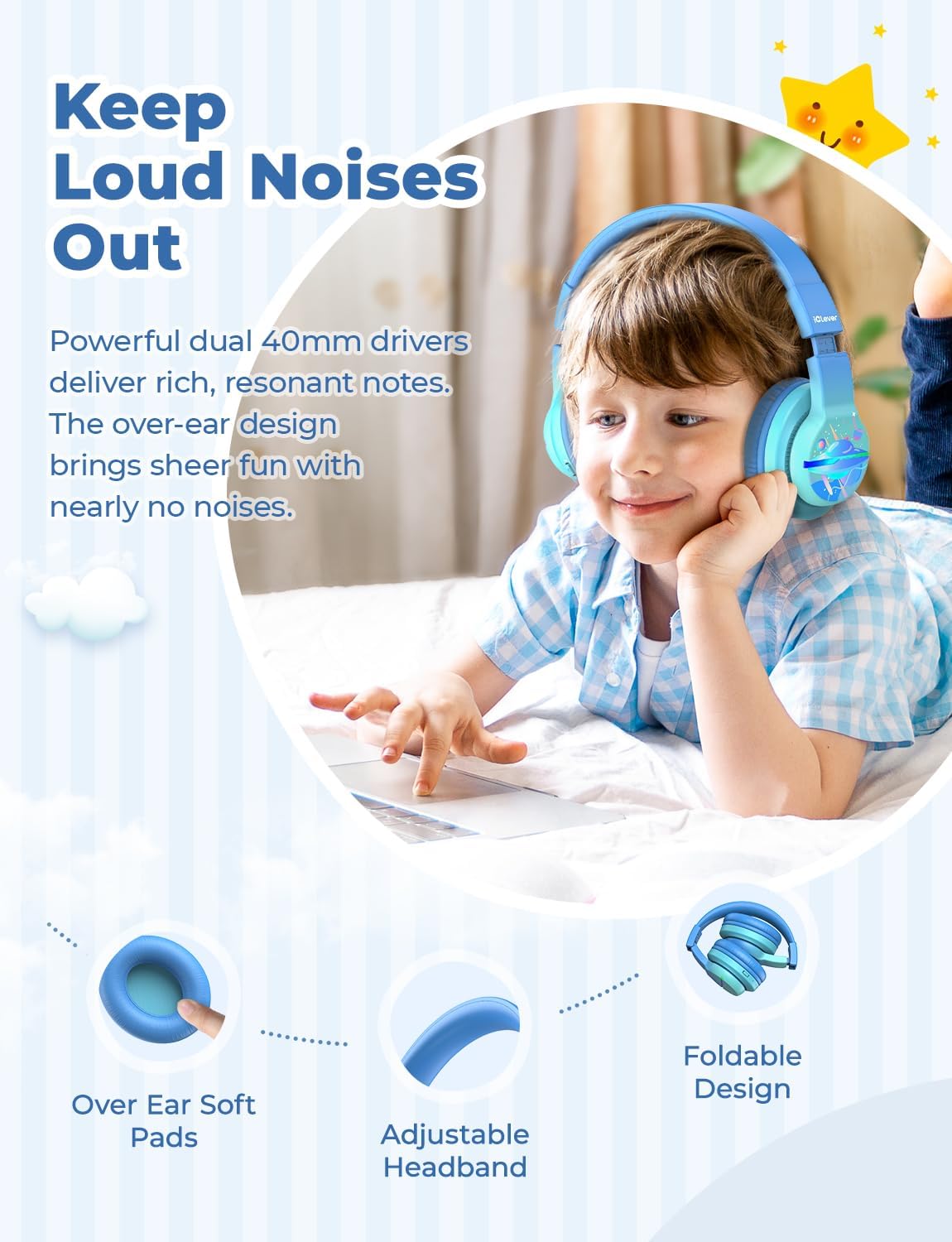 Planes, trains, cars and other places can cause noise. How to overcolour unwanted sounds? Simply use iClever Kids wireless Bluetooth headphones that shield them from excessive noise so they can learn undisturbed or listen to music.