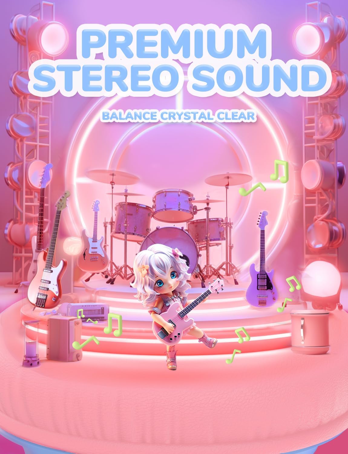 • Акустика с висока резолюция: Тези детски слушалки осигуряват кристално чист стерео звук с богат бас и ясни високи честоти благодарение на вградения си 40-милиметров драйвер. С тези удобни слушалки децата могат да се потопят в собствената си музикална страна на чудесата, без да безпокоят другите около тях.