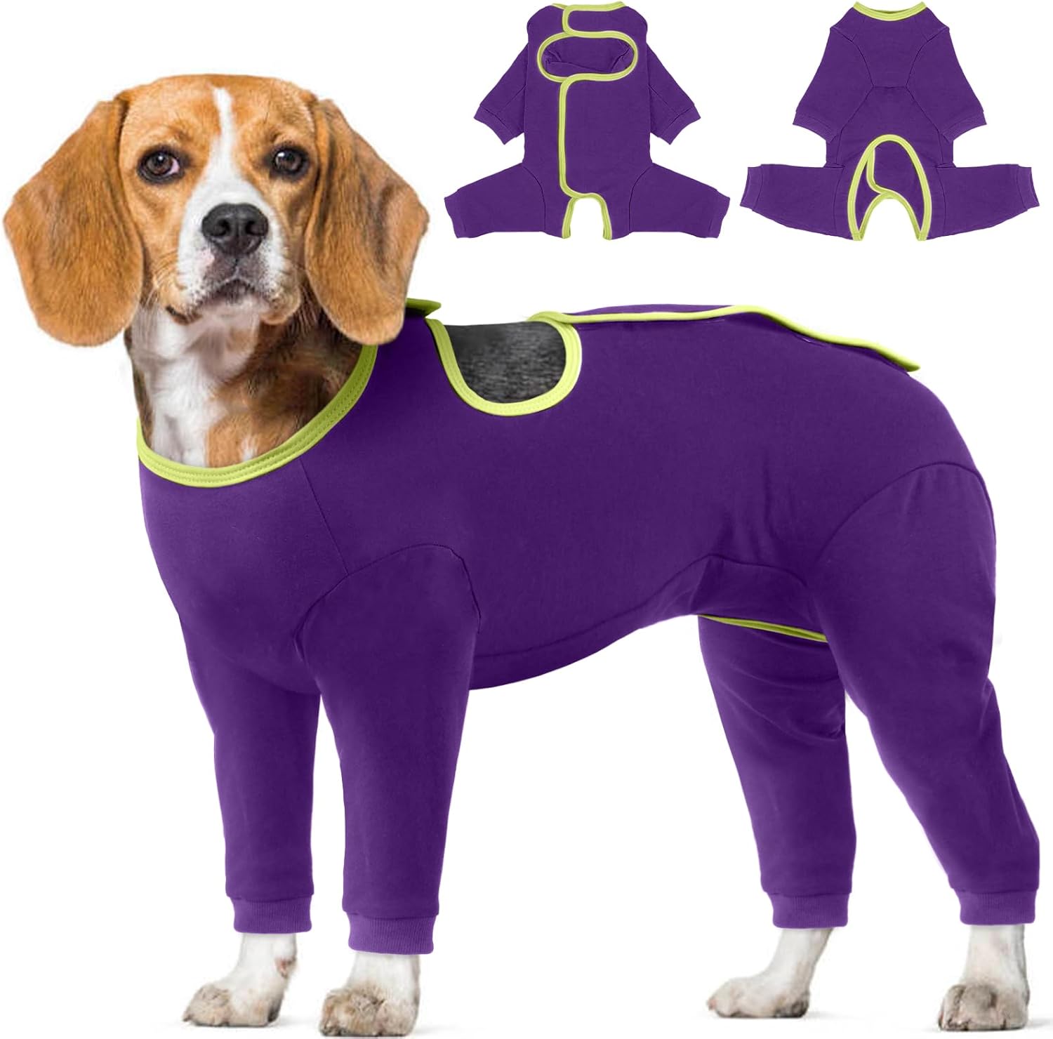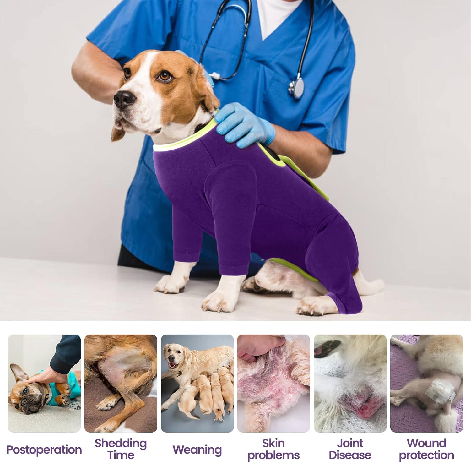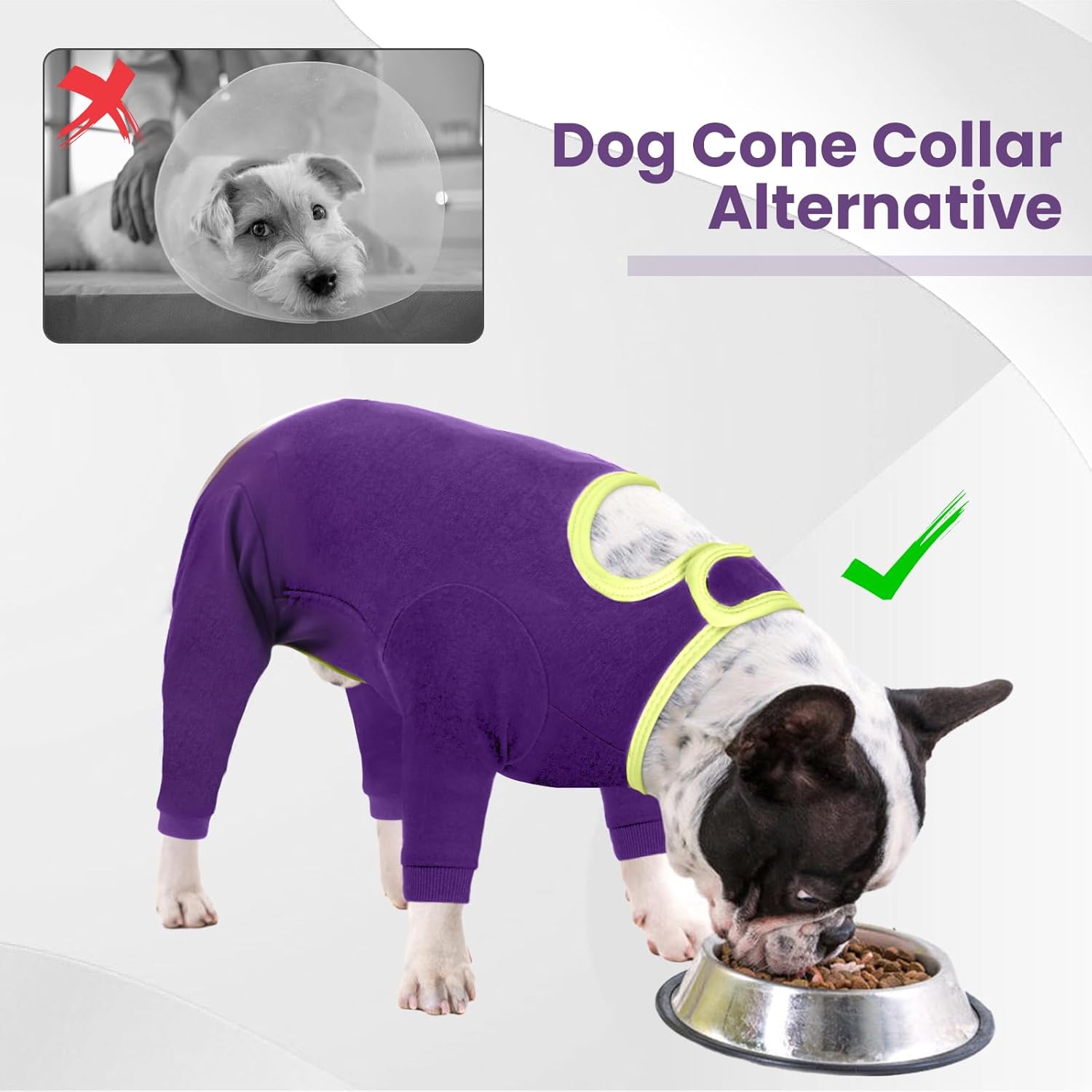 IECOii възстановяващ костюм за кучета, лесен за обличане гащеризон с дълъг ръкав за стерилизация, боди за кучета за коремни рани, алтернатива на конуси за кучета, лилав, XL