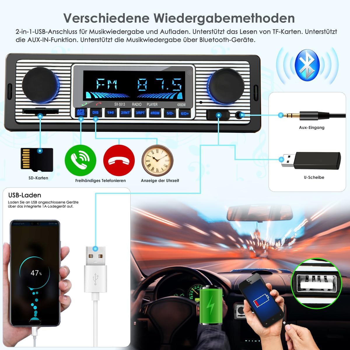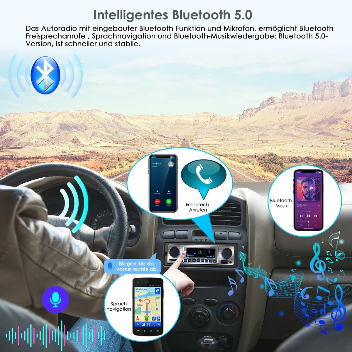 • Автомобилно радио с Bluetooth 5.0: Bluetooth автомобилно радио с качество на звука без загуби. Нашето Bluetooth автомобилно радио със система за свободни ръце, мобилният телефон се свързва автоматично и осигурява добра връзка. Активирайте разговорите си, без да заседнат, стабилна връзка и качество на звука без загуби. 1-DIN автомобилното радио пасва идеално на повечето автомобили.