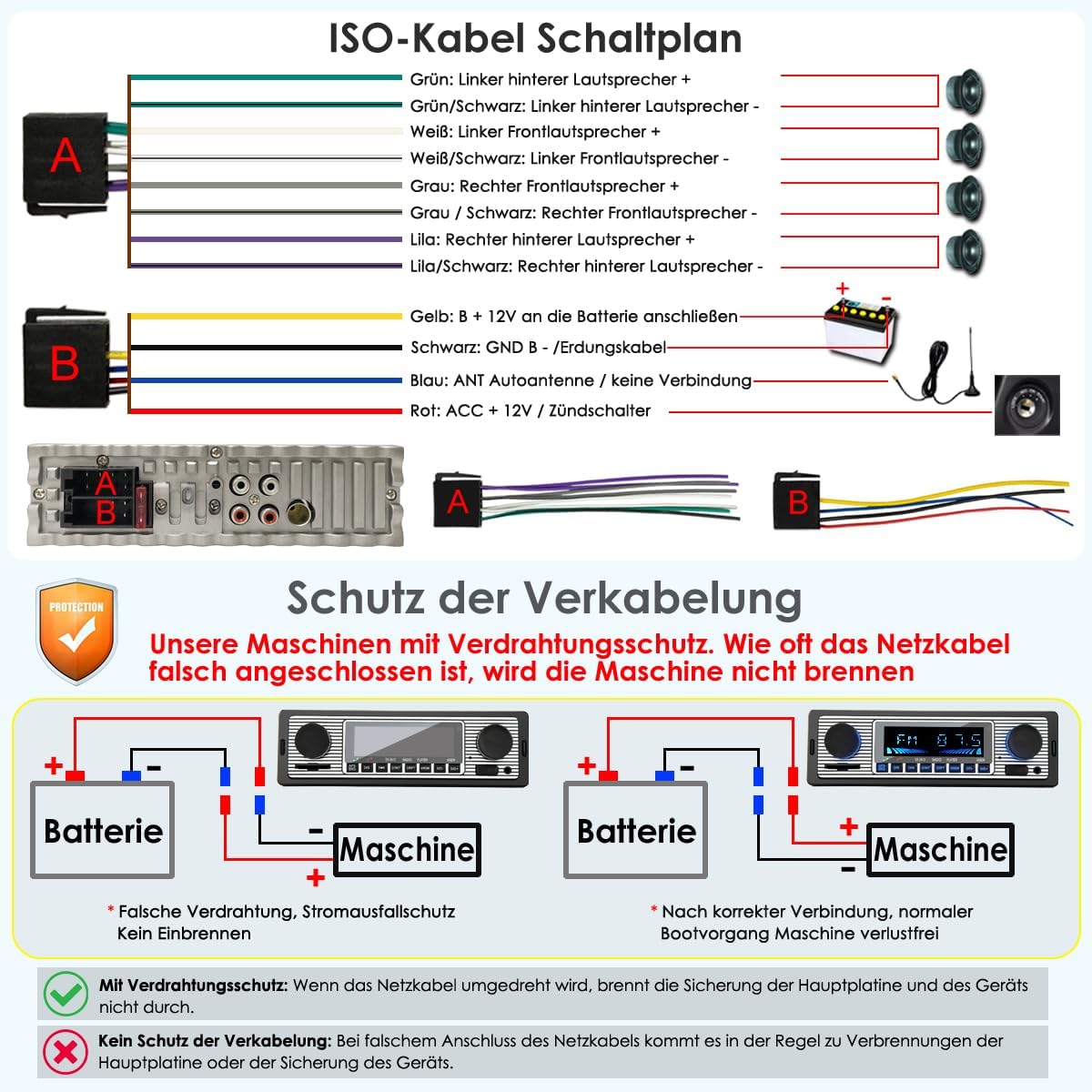 • 【Мултимейен плейър и защита на окабеляването】: поддържа AUX кабел/TF карта/U диск за възпроизвеждане с различни методи и опции. Можете да се насладите на шофирането. Отговаря на вашите индивидуални нужди. Нашето радио е със защита на окабеляването. Без значение колко пъти захранващият кабел е свързан неправилно, устройството няма да изгори.