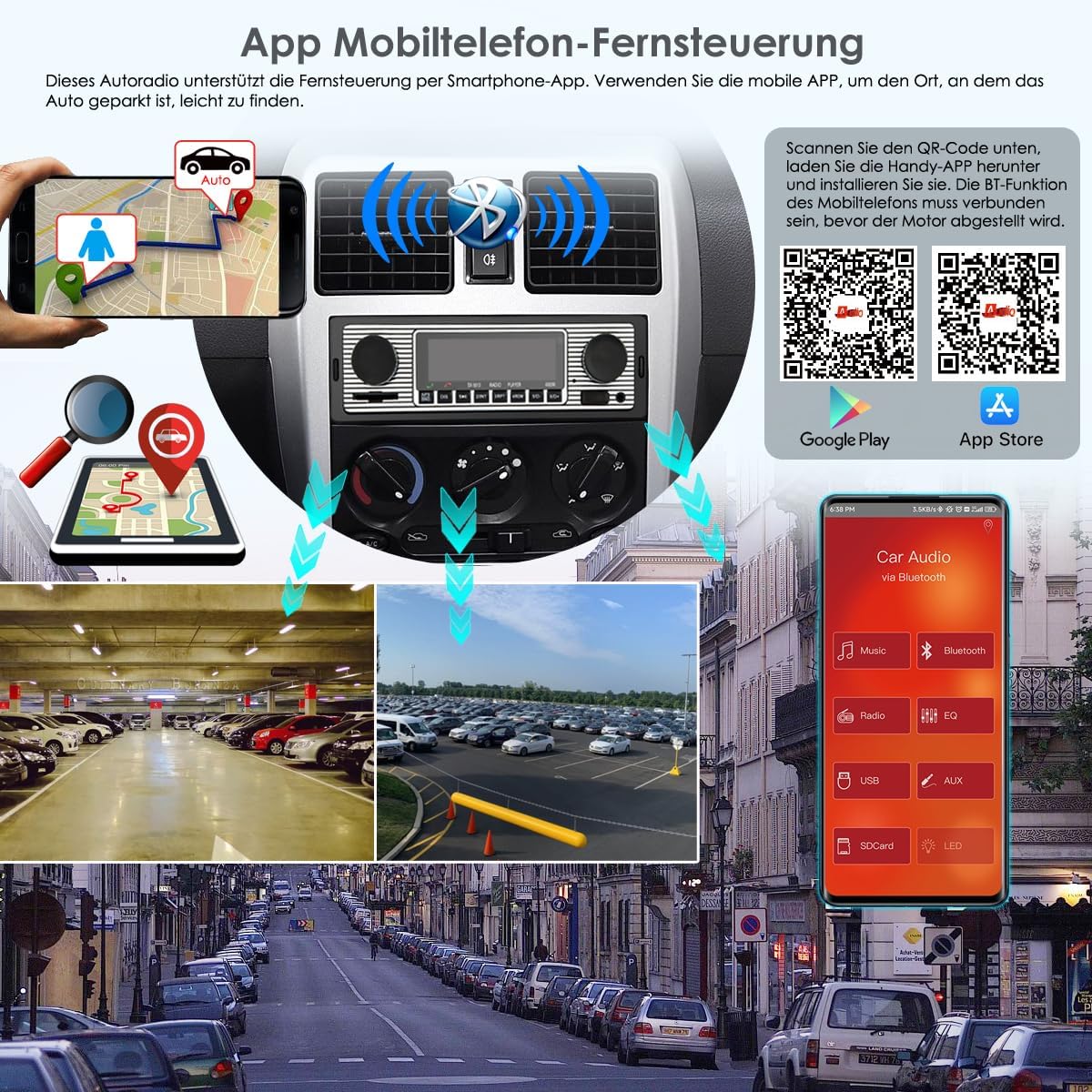 • 1-DIN автомобилно радио с Bluetooth и гласов асистент: нашето Bluetooth радио за кола съчетава най-новите технологии. Натиснете кратко бутона "2", за да събудите гласовия асистент след свързване с Bluetooth на мобилния телефон. С позиционирането на мобилния телефон за намиране на автомобил, лесно е да откриете къде е паркиран.