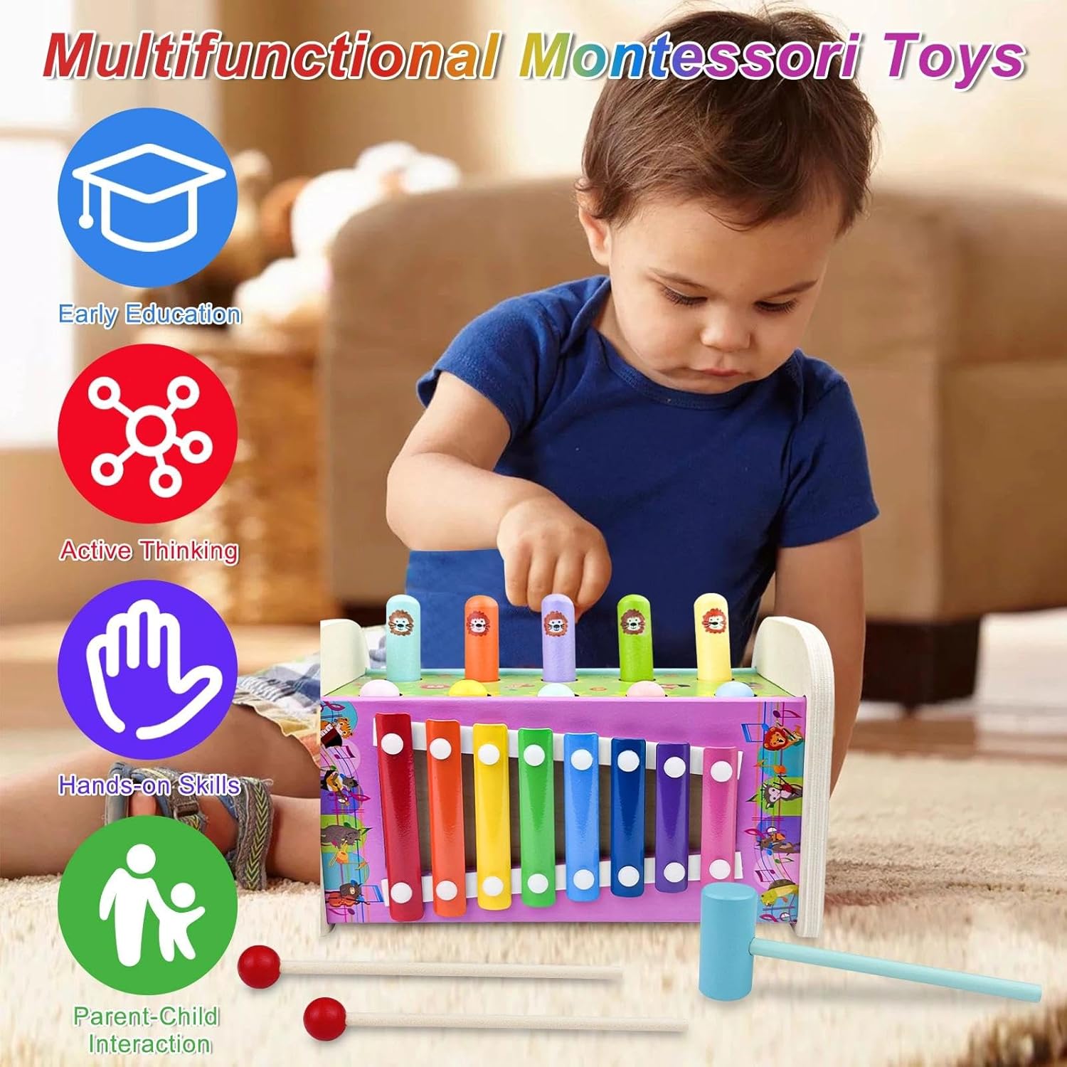 • 【Многофункционално изживяване】 Музикална играчка Монтесори: В допълнение към основния геймплей, тя разполага със забавни мелодии и ксилофон. Докосването на клавишите е съпроводено с музика за допълнително удоволствие. Тази единична играчка предлага множество приложения, за да отговори на разнообразните нужди на децата. Това е играчка за ранно детско образование с функции за забавление и обучение.