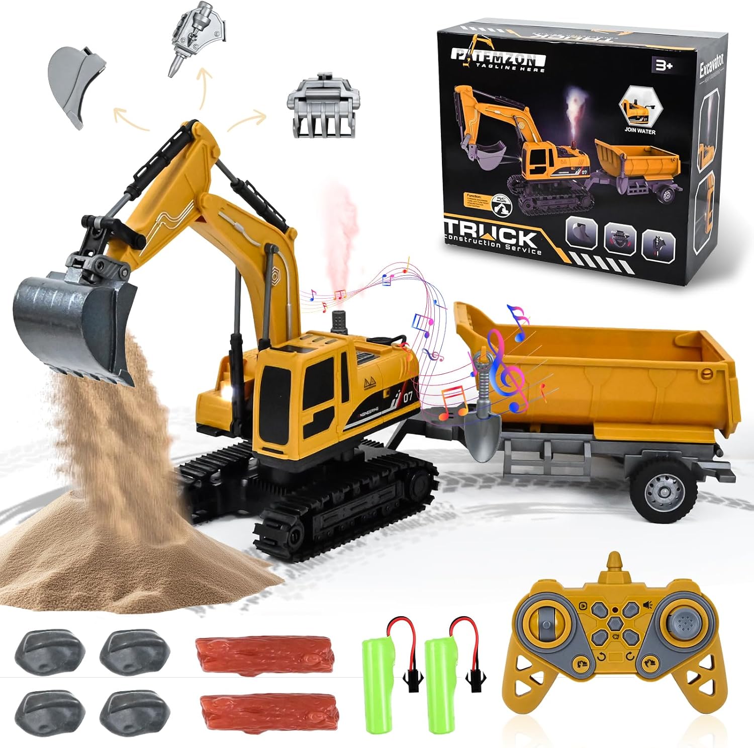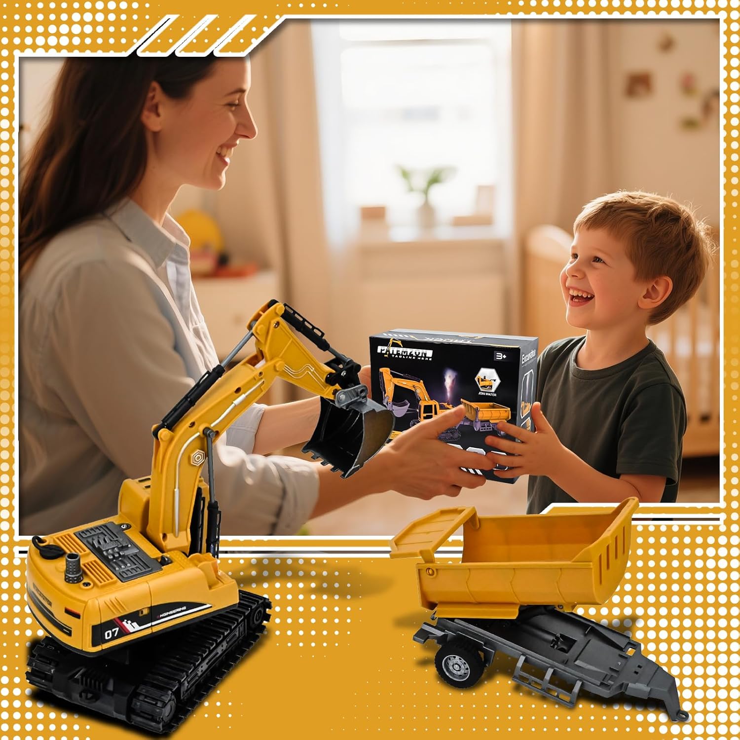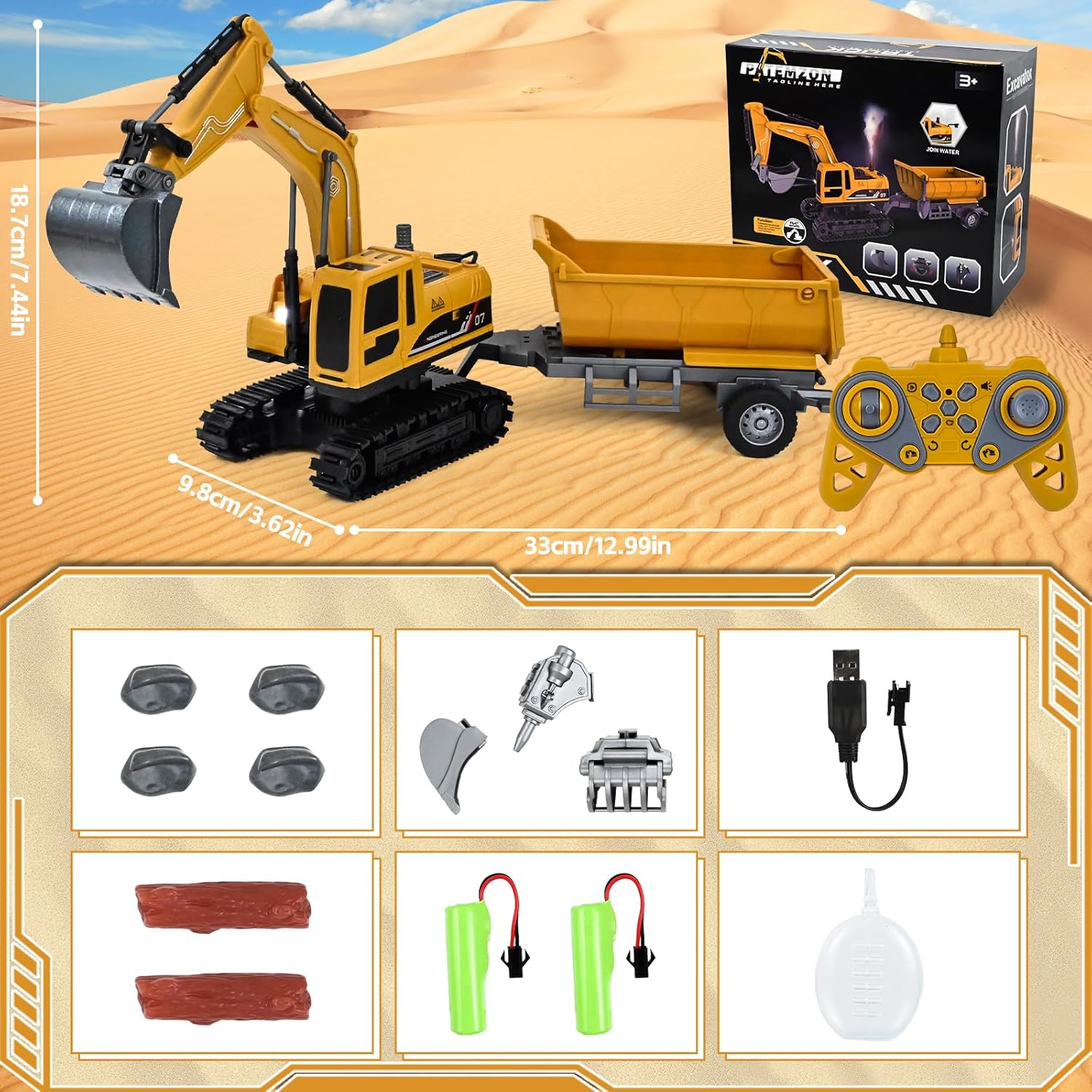 • Страхотен подарък: идеален за деца на възраст от 4 до 10 години. Подарете този готин комплект ремарке за багер с дистанционно управление за рождени дни или Коледа. Комбинирайте нашия функционален багер с други строителни машини за още по-забавно!