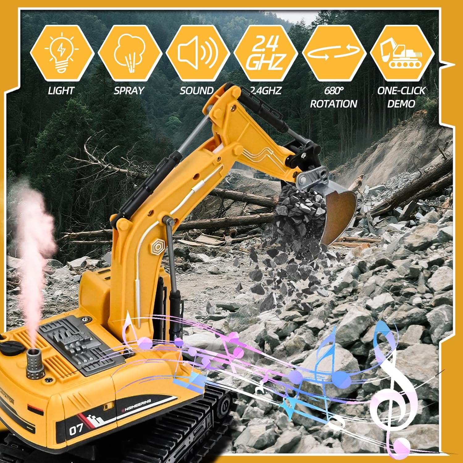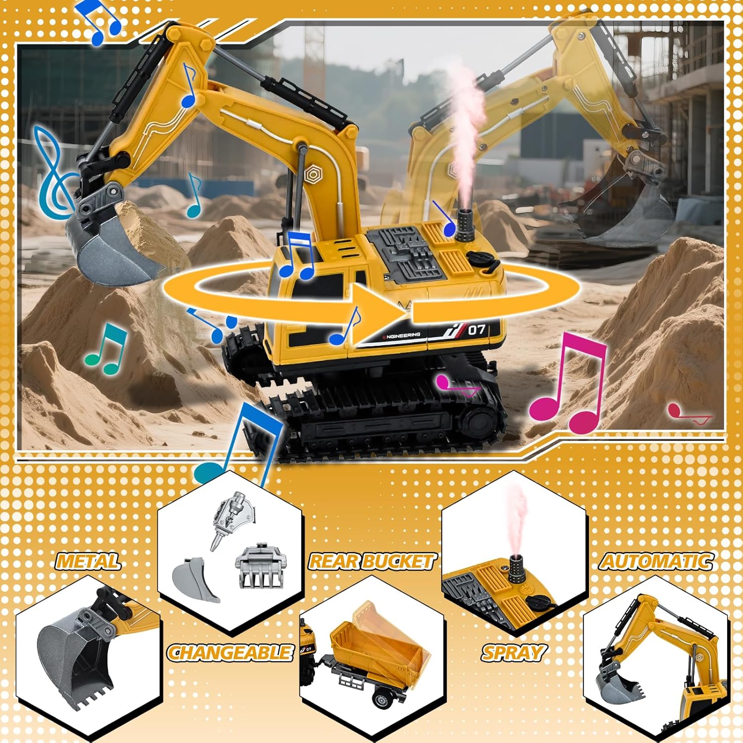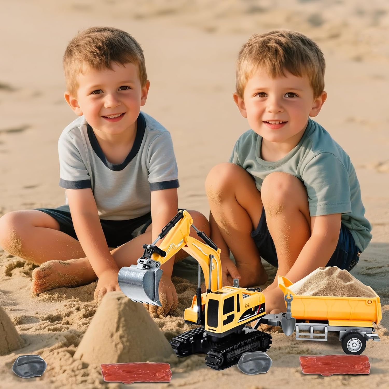 • Страхотен подарък: идеален за деца на възраст от 4 до 10 години. Подарете този готин комплект ремарке за багер с дистанционно управление за рождени дни или Коледа. Комбинирайте нашия функционален багер с други строителни машини за още по-забавно!