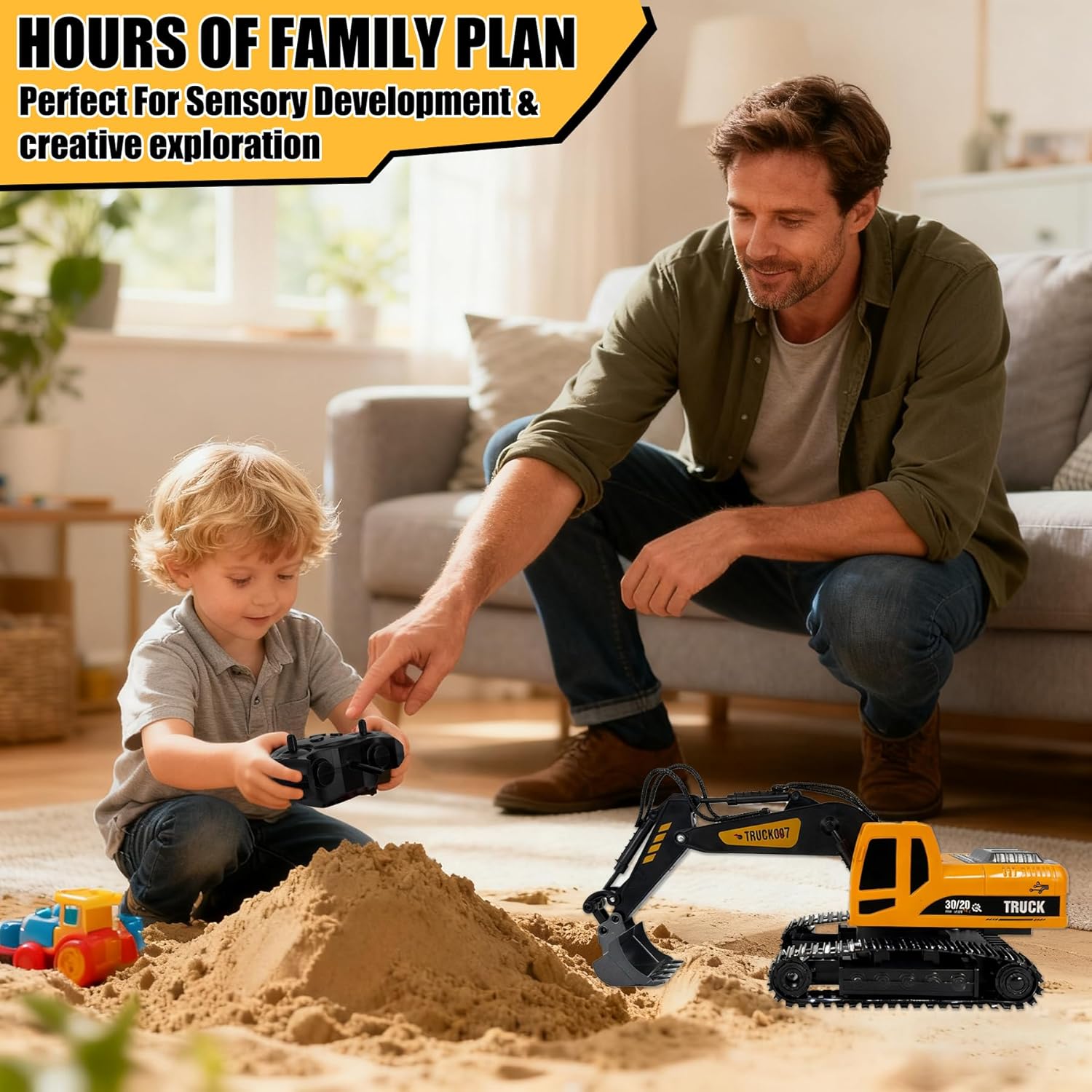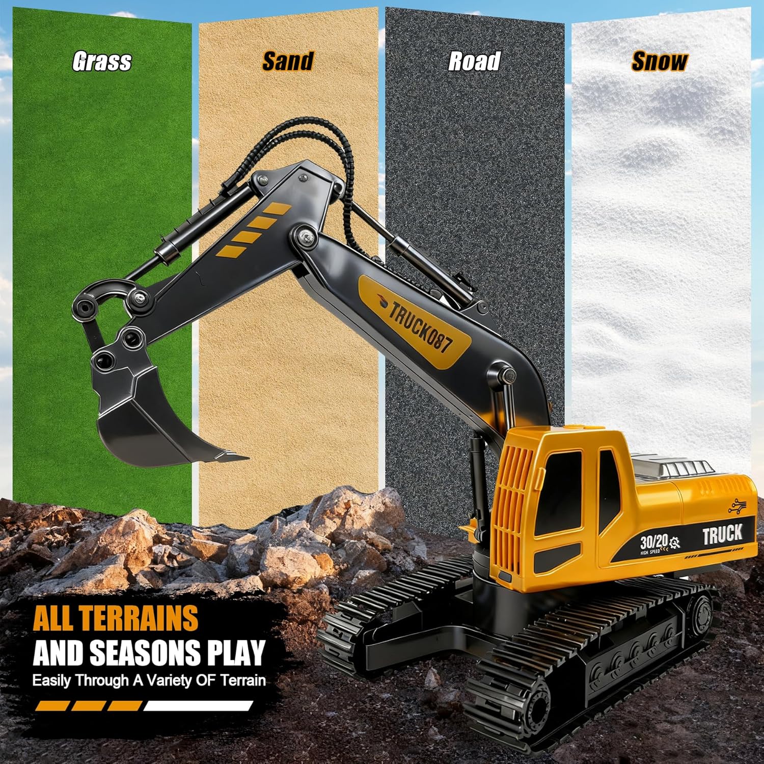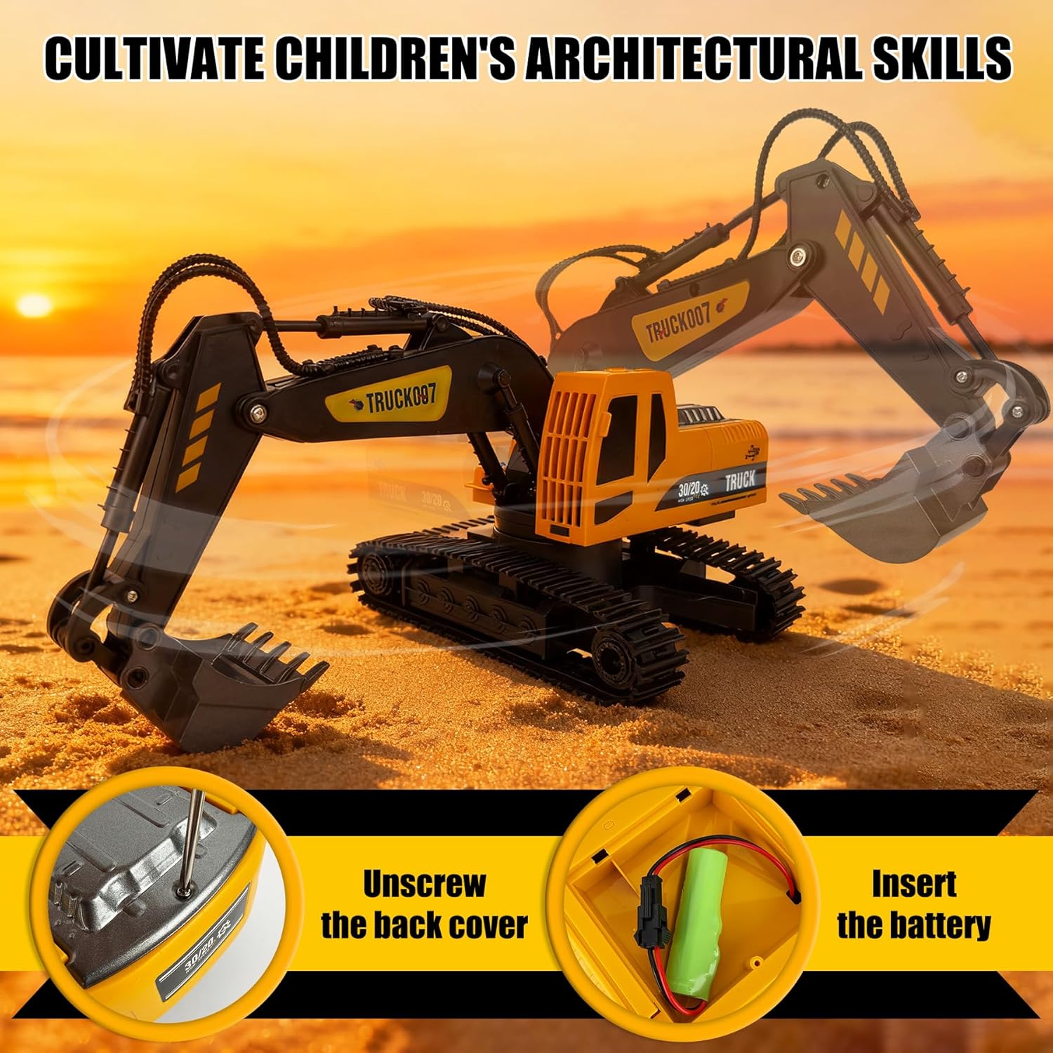Радиоуправляемата строителна машина е изработена от издръжлив ABS материал със здраво гъсенично задвижване и подсилено рамо. Тази конструкция осигурява стабилност върху широк спектър от повърхности – независимо дали е килим, почва или пясък – и осигурява дълъг експлоатационен живот, дори при честа употреба.