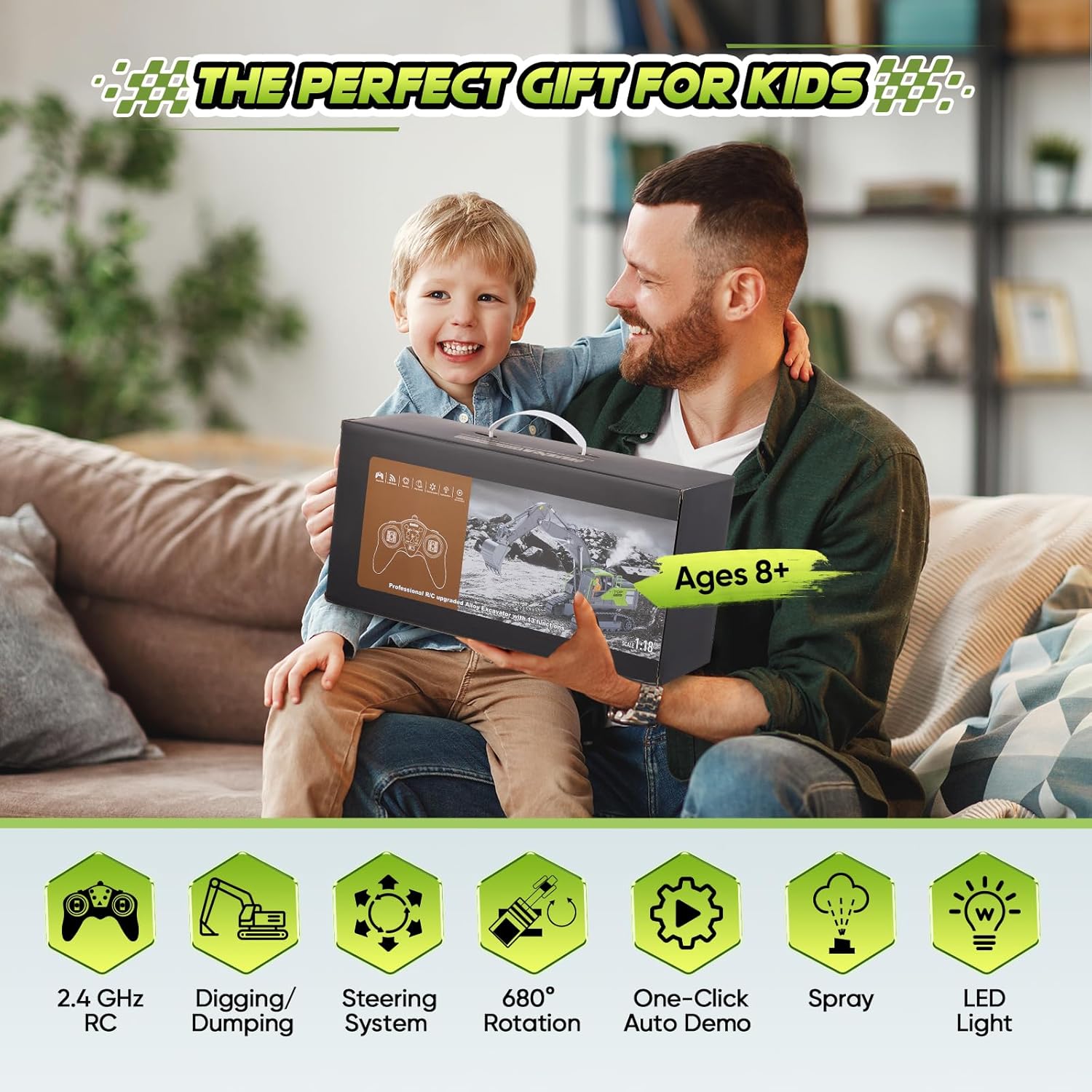 • Идеален подарък: Играчката багер с дистанционно управление е предназначена за деца над 8 години и съчетава учене със забавление. Тя насърчава координацията между ръцете и очите и събужда интерес към технологиите. Много добра идея за подарък за момчета, които харесват строителни машини.