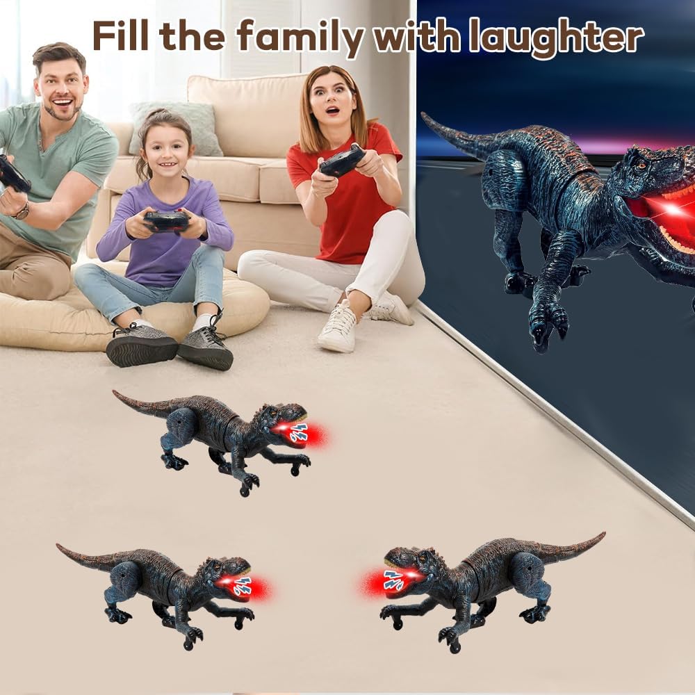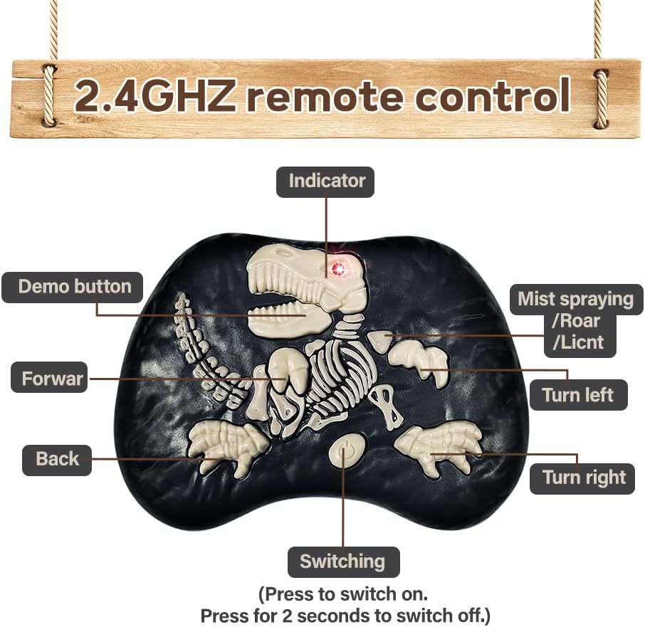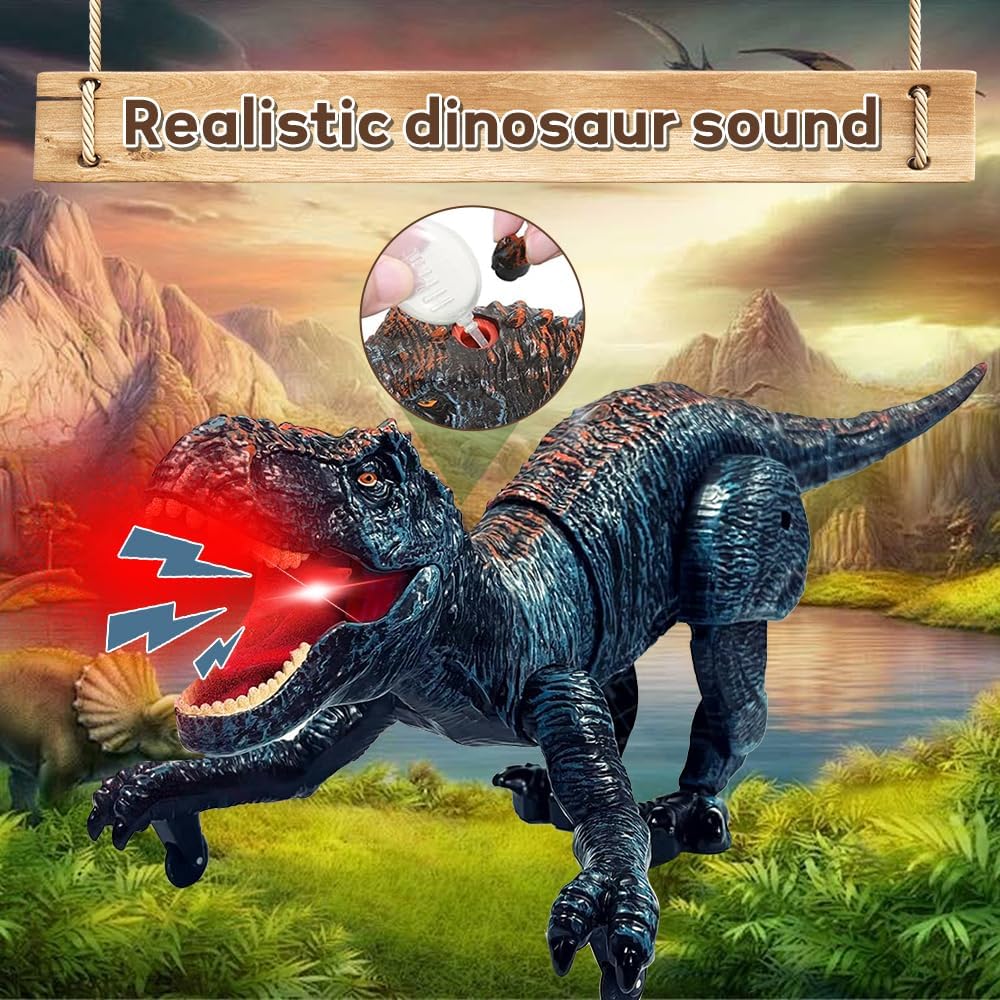 1. Experience the thrill of an adventure with our remote controlled dinosaur toy with lifelike walking and roar, complete with LED lights. When the dinosaur opens its mouth, lights shine out of its mouth. Specially improved spray, light provide more fun and interactive play for children.