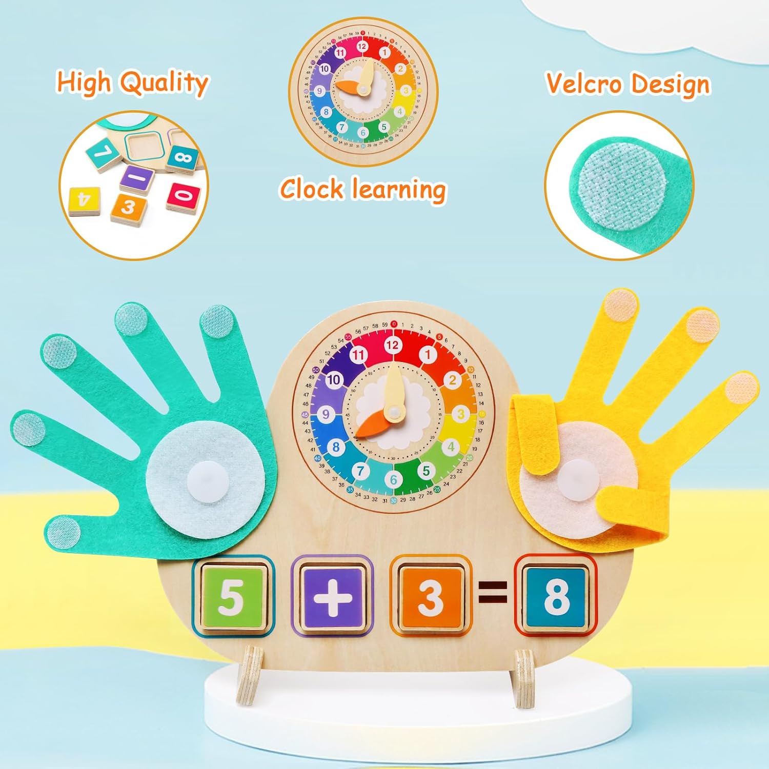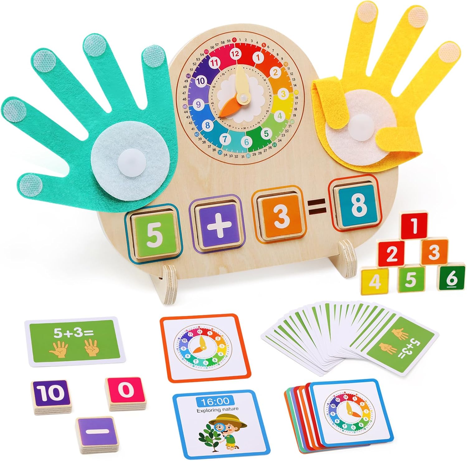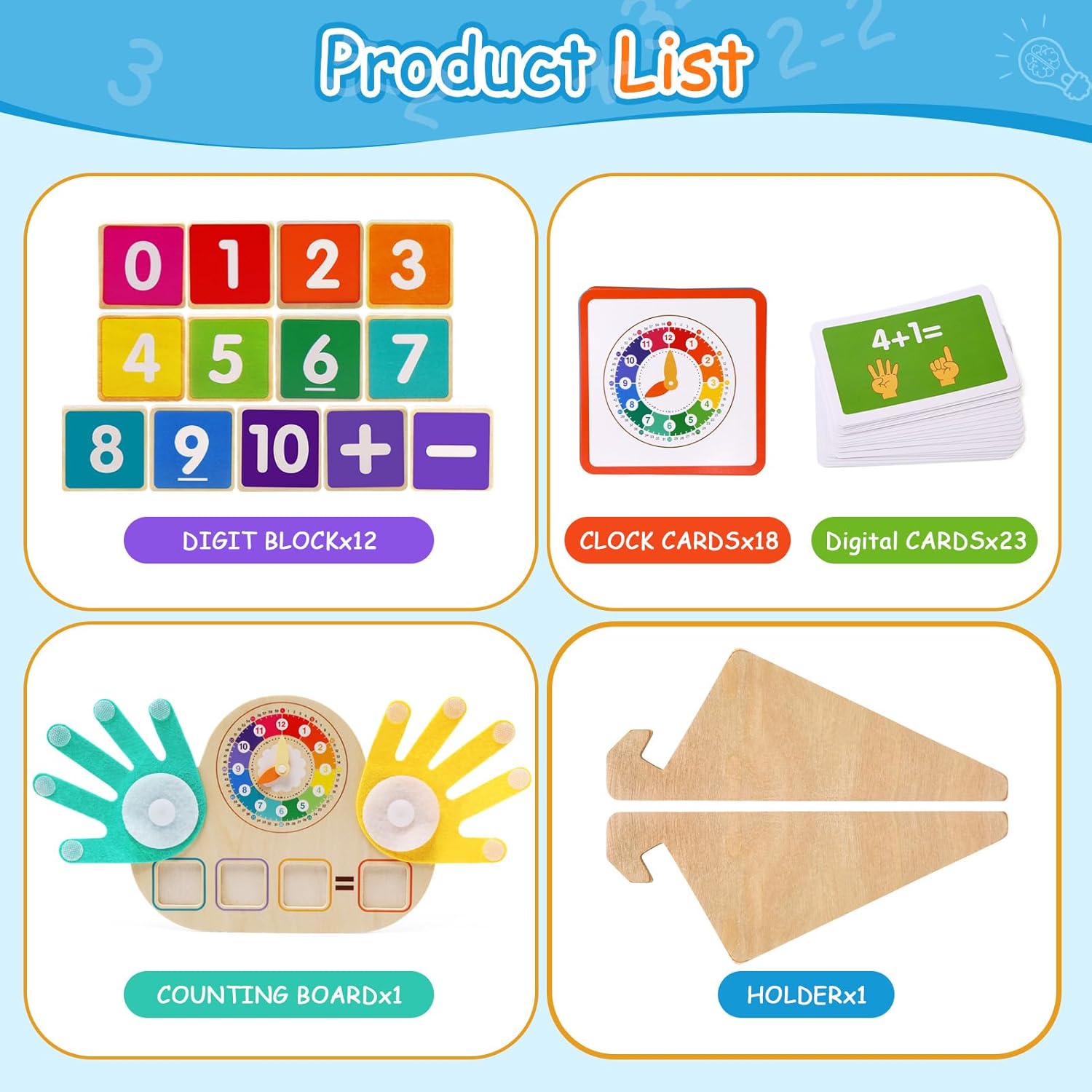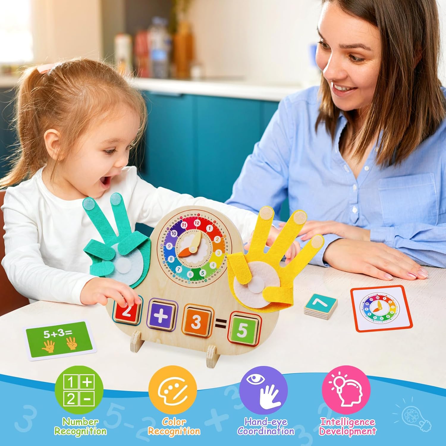 1. Holzzahlenblöcke: Kinder können mit den Zahlenblöcken von 1 bis 10 und den Karten das Rechnen üben. Sie können die Blöcke und Karten verwenden, um Zählen, Addieren und Subtrahieren zu visualisieren und zu verstehen. 2. Uhrenspielzeug: Bewegen Sie die Stunden- und Minutenzeiger entsprechend den Uhrenkarten, um Kinder zum Üben und zur Entwicklung eines Zeitkonzepts zu animieren. Verschiedene Karten zeigen Lebensszenen zu unterschiedlichen Zeiten.