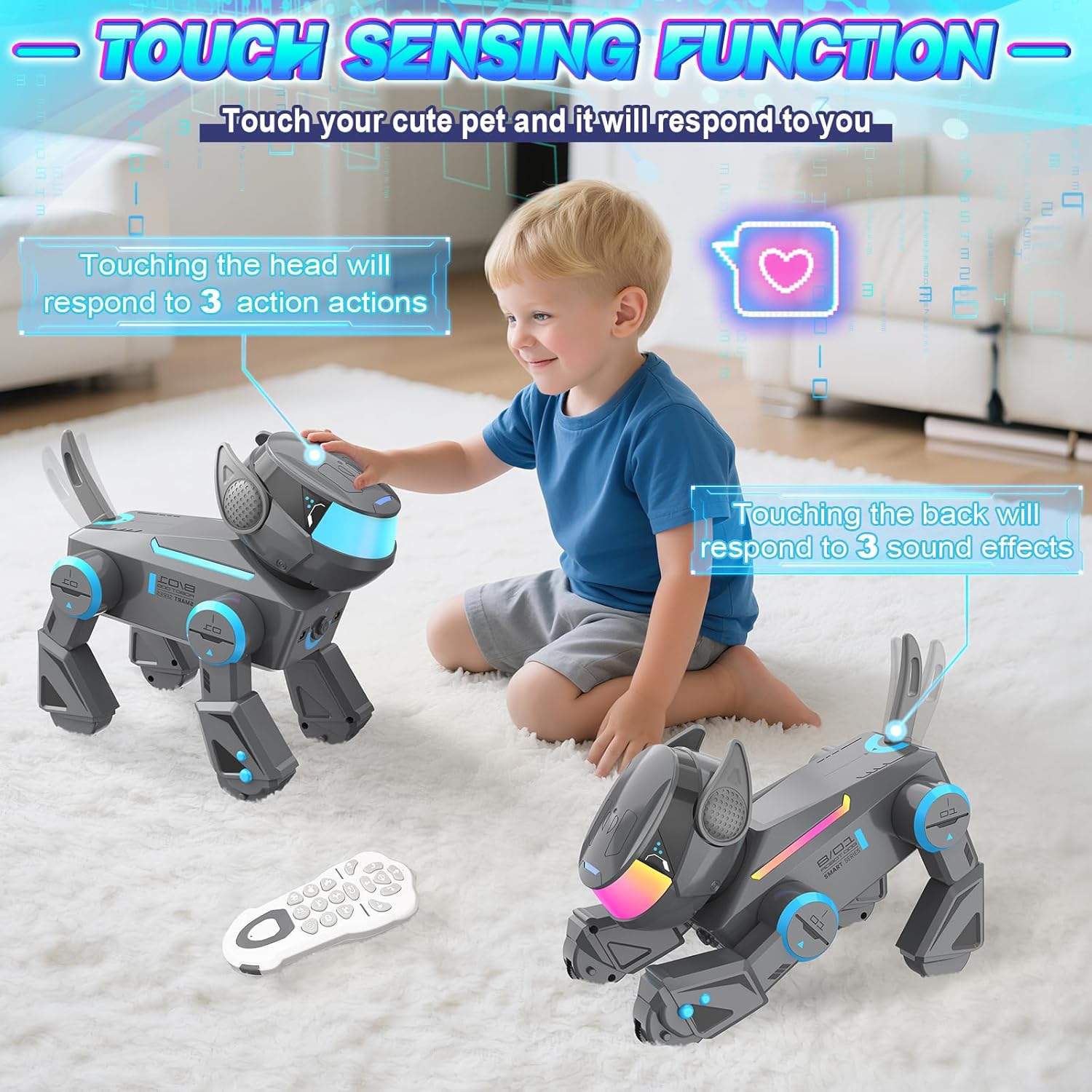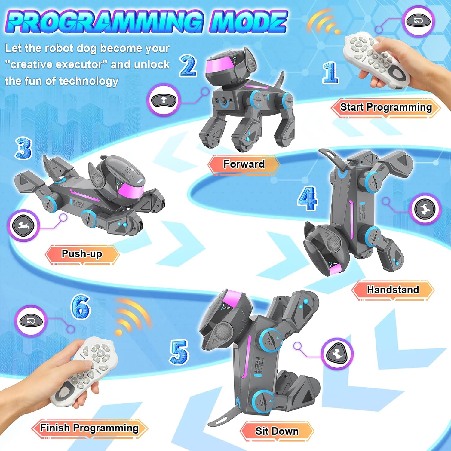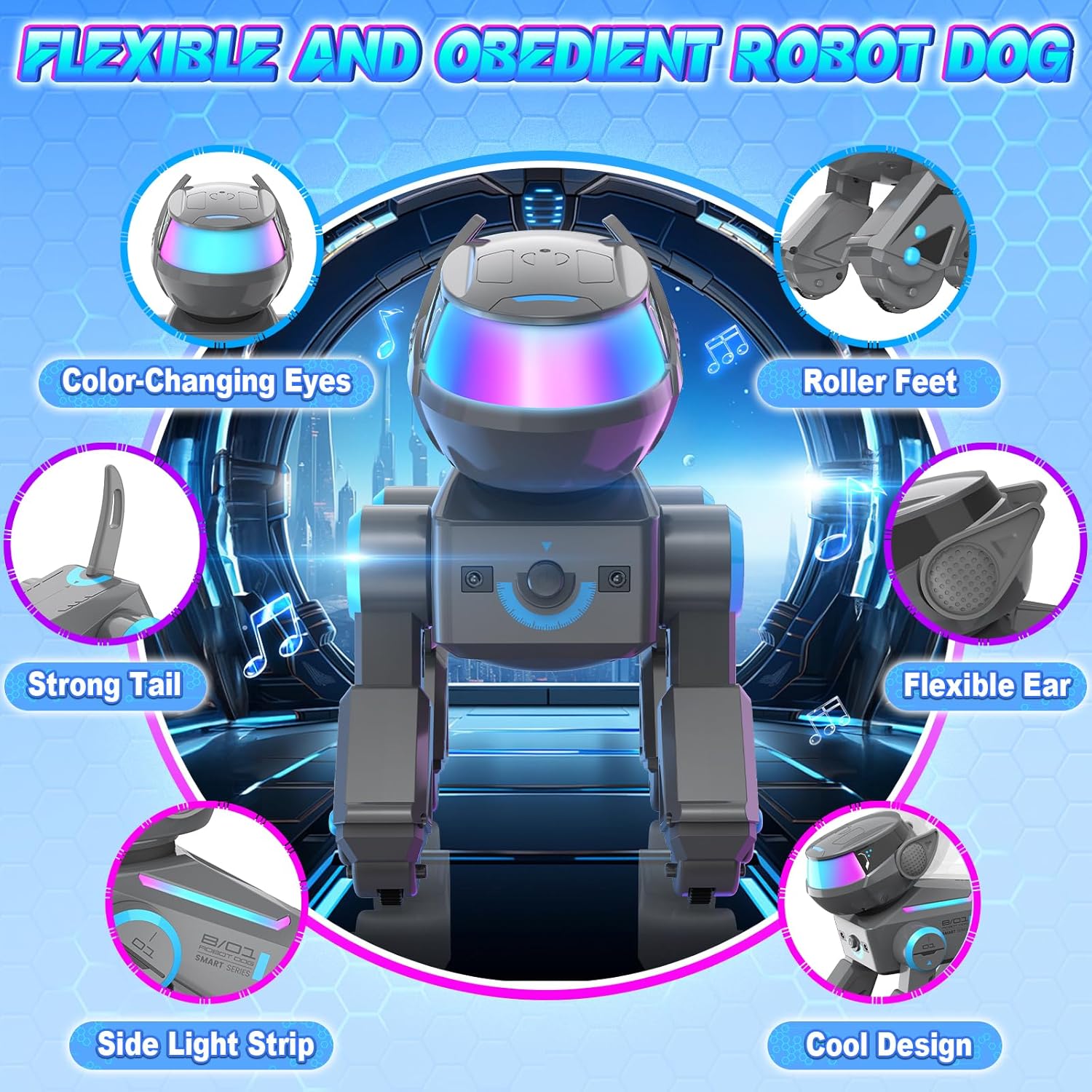 Играчка робот куче за деца от 3 години, програмируема играчка робот с Bluetooth и LED очи, робот куче с 15 функции, коледен и рожден подарък за момичета и момчета