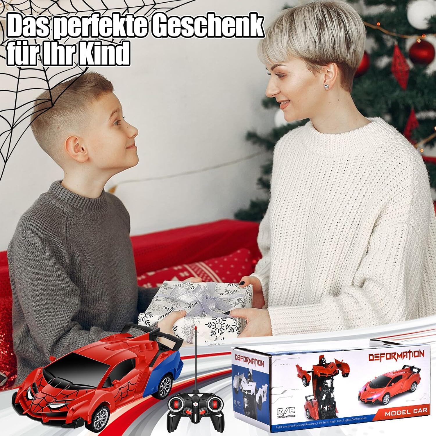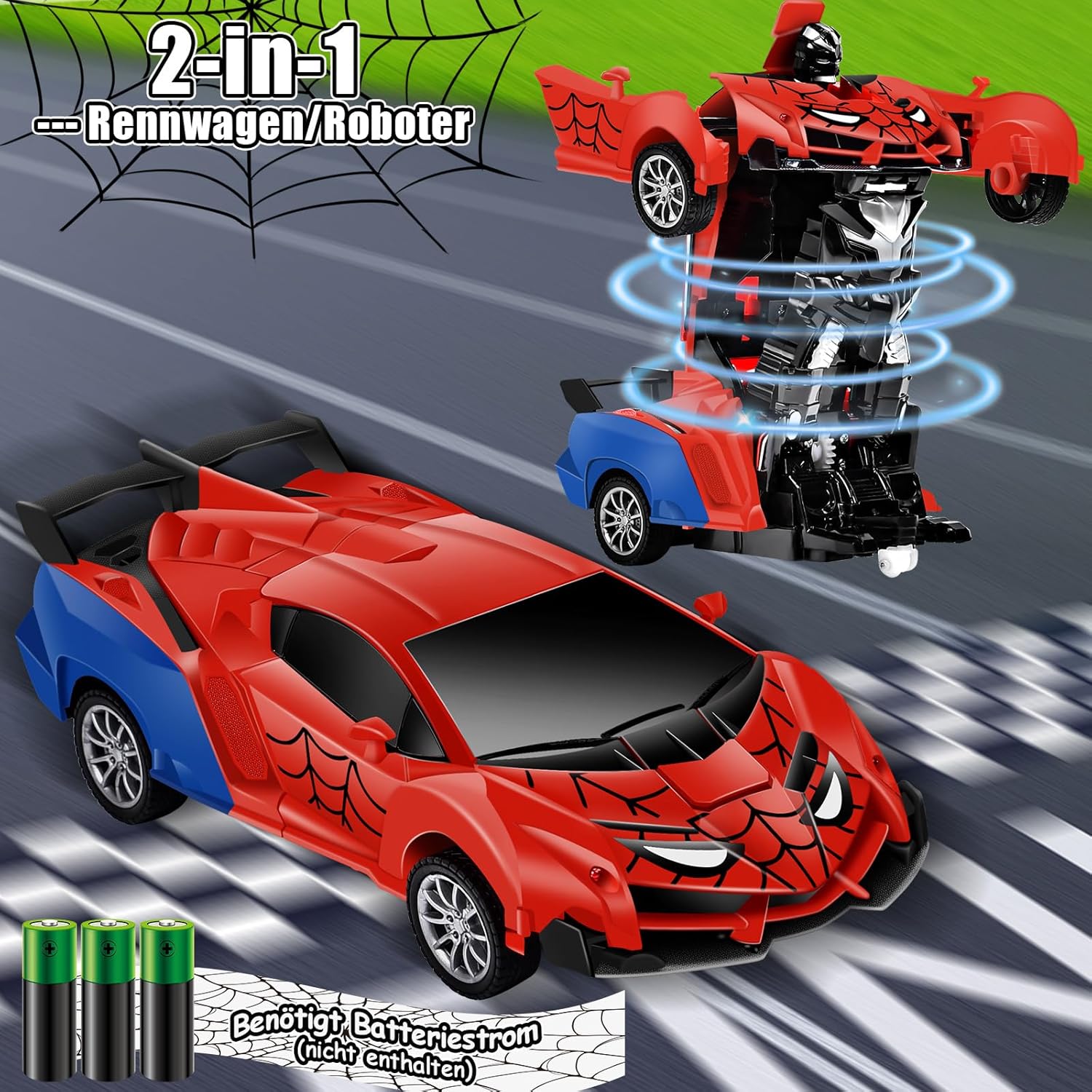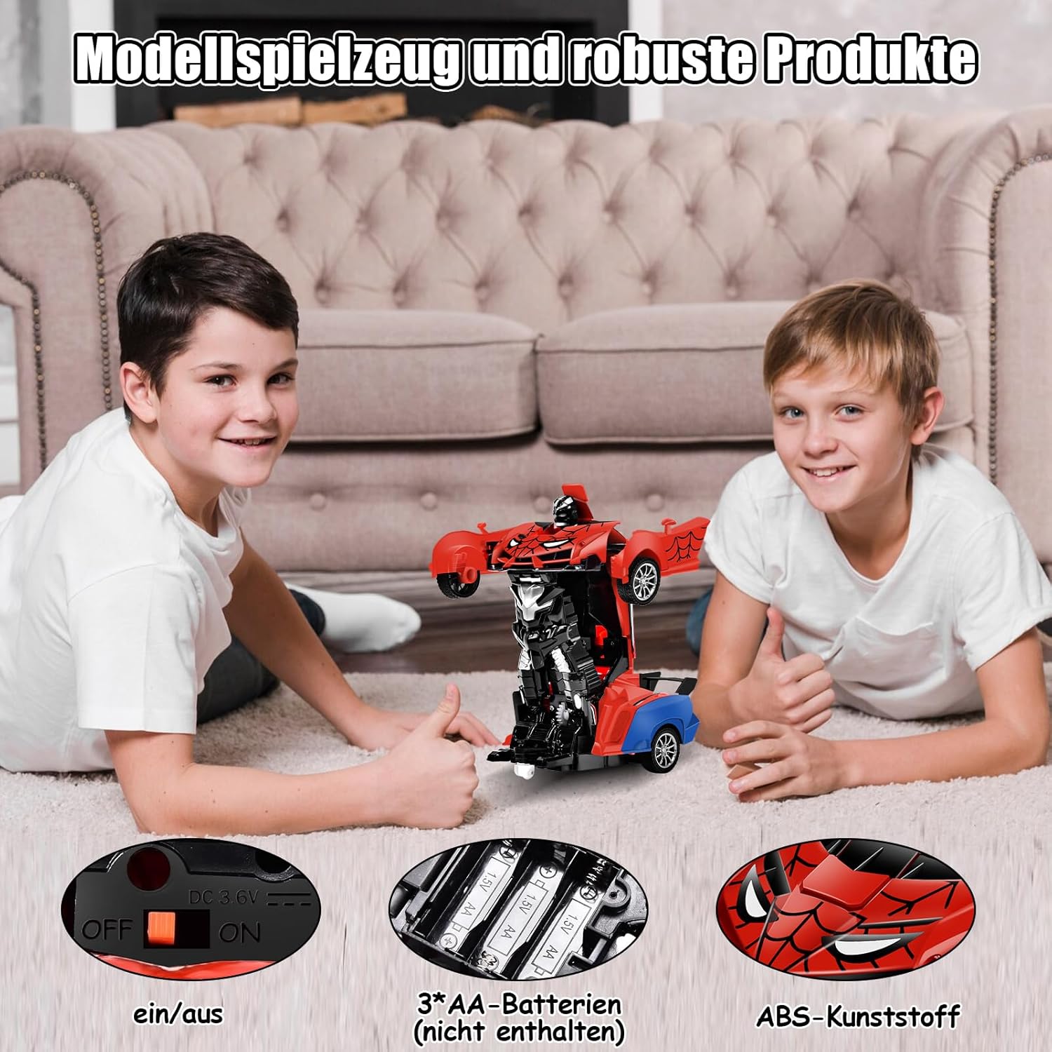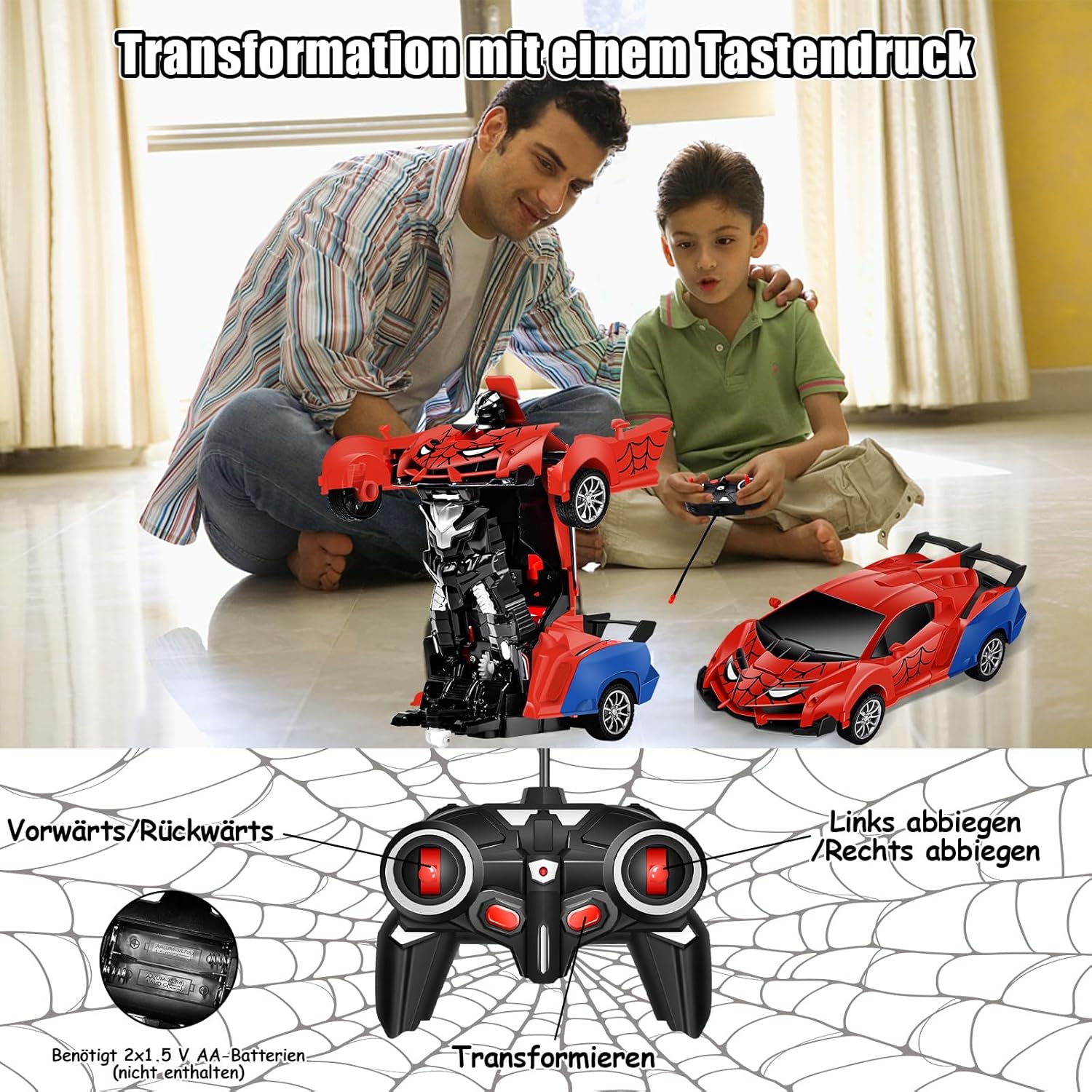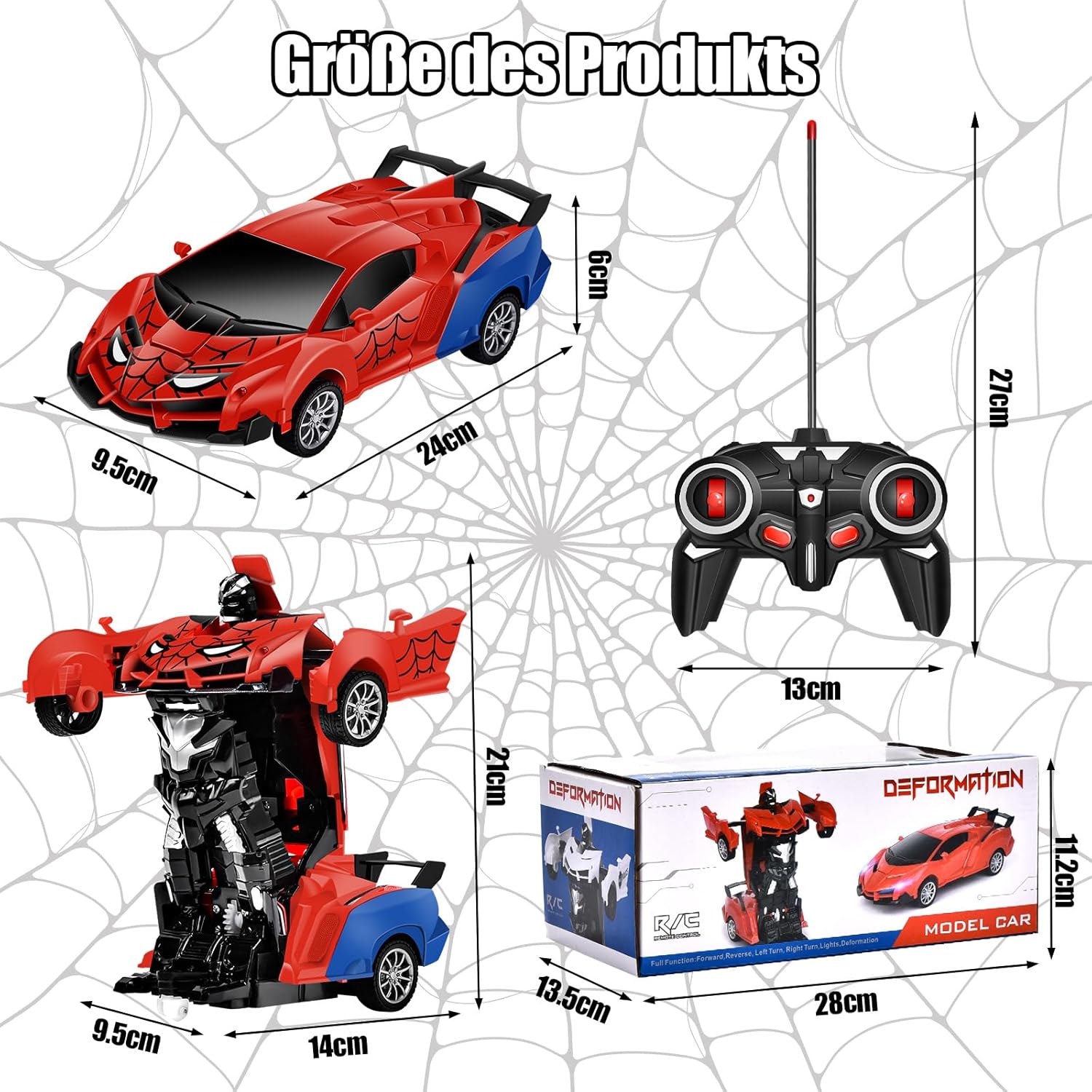 • 2 в 1 готин дизайн – тази играчка кола-трансформер с дистанционно управление съчетава кола и робот, може да превключва между кола и робот. Декорирана е с готин червено-син дизайн на паяк, може да привлече вниманието на децата.