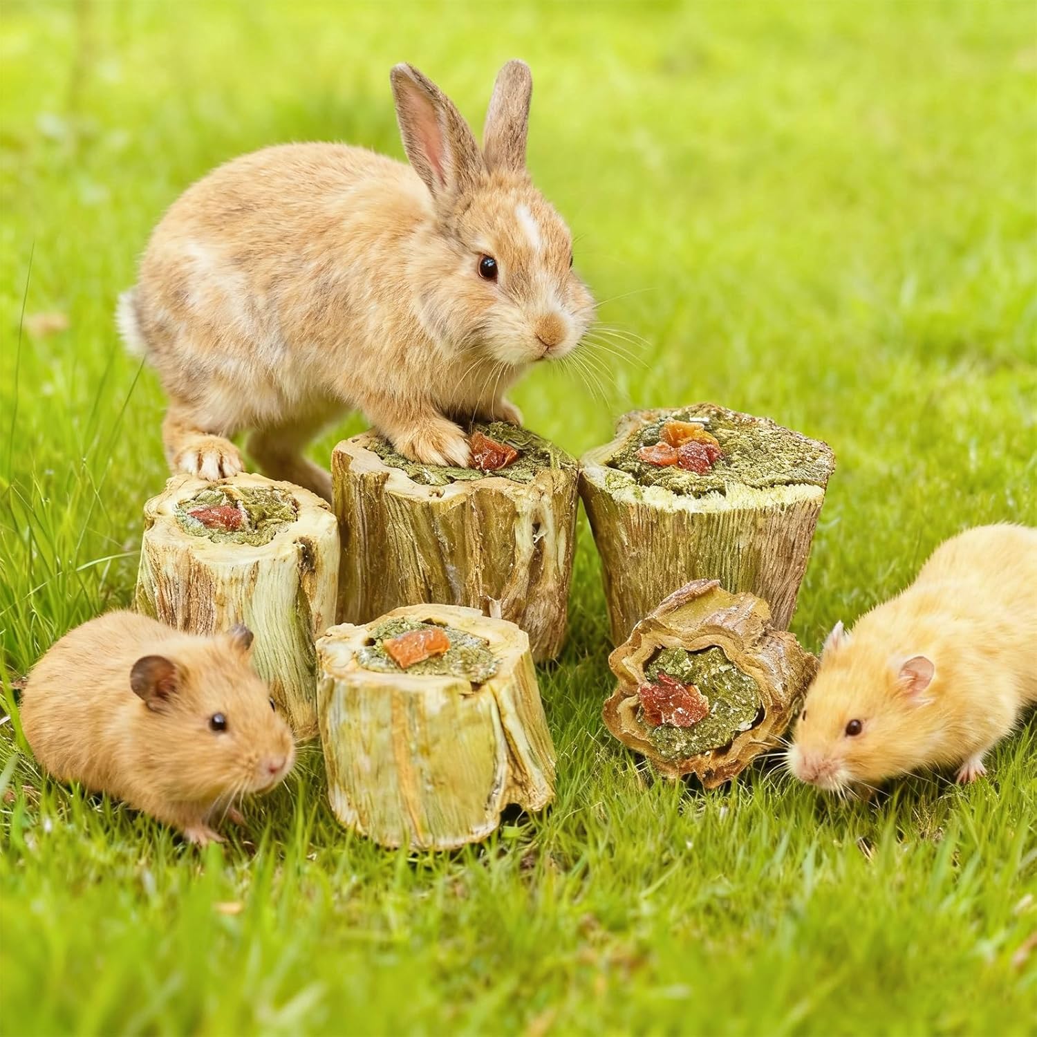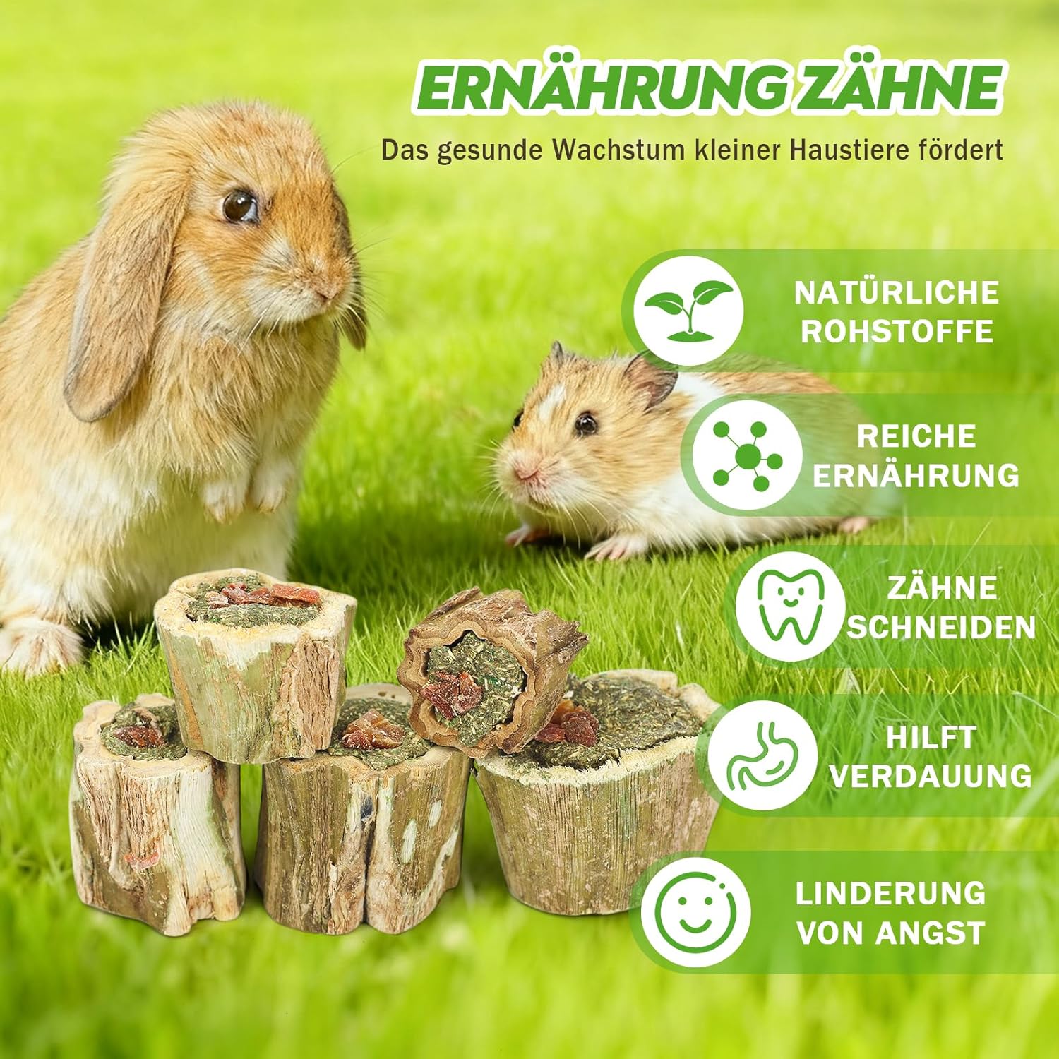 Облекчава скуката и тревожността, намалява разрушителното поведение - Богатата комбинация от естествен аромат на папая с плодове, венчелистчета и люцерна създава богат слой аромат, който напълно стимулира любопитството на домашните любимци. Ефективно пренасочва разрушителните желания на домашните любимци към клетки, килими, мебели и други предмети, облекчава самотата и тревожността, когато живеят сами, намалява стресовото поведение, като например хапане на клетки, и прави домашните любимци по-нежни и послушни.