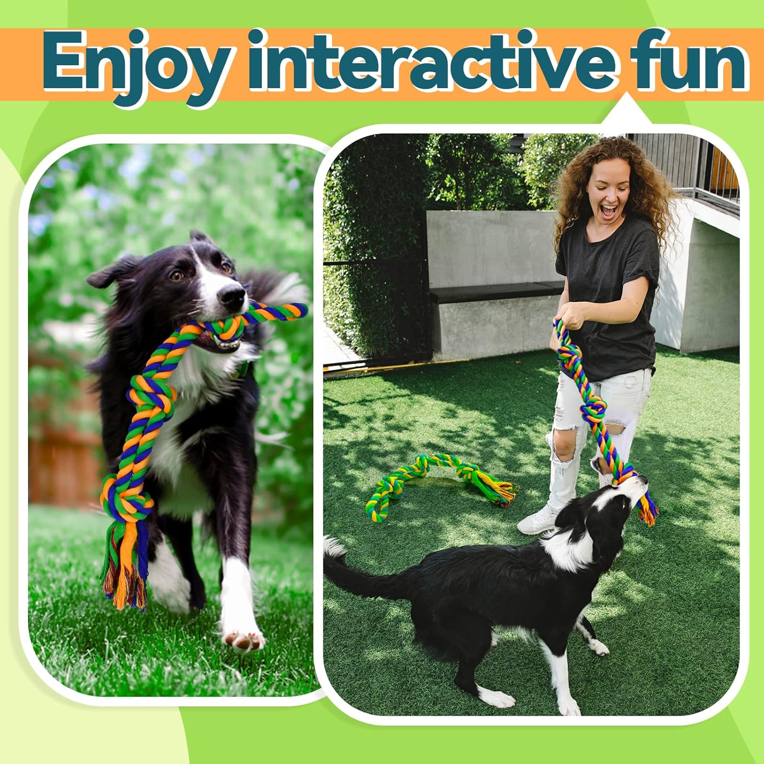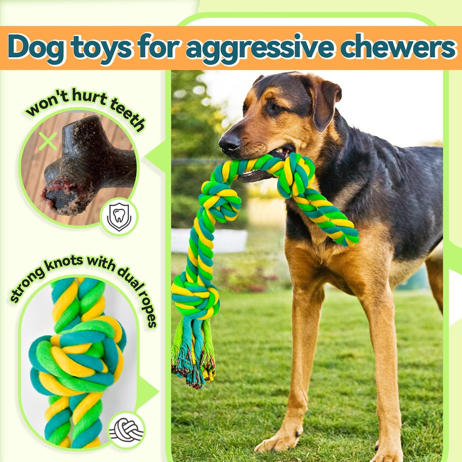 • Неразрушими играчки за кучета за агресивни дъвчащи, средни до големи породи: комплектът силни играчки за кучета XL е популярна комбинация от въжени играчки за кучета, включва 27-инчови играчки за кучета с 5 възела, въжени играчки за агресивни дъвчащи, кръгла въжена топка, играчка за кучета с множество възли, памучно въже, играчка за дъвчене и топка за дърпане на въже.