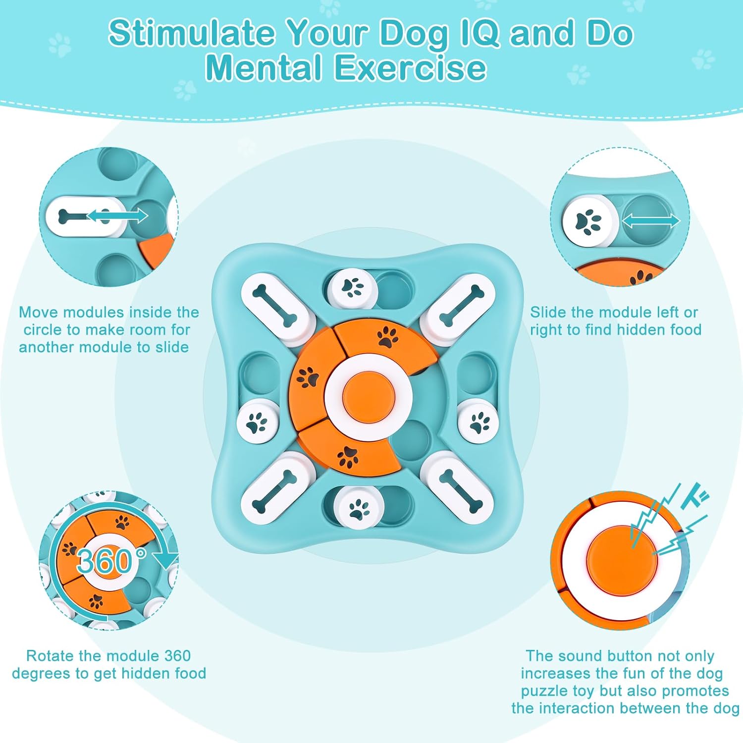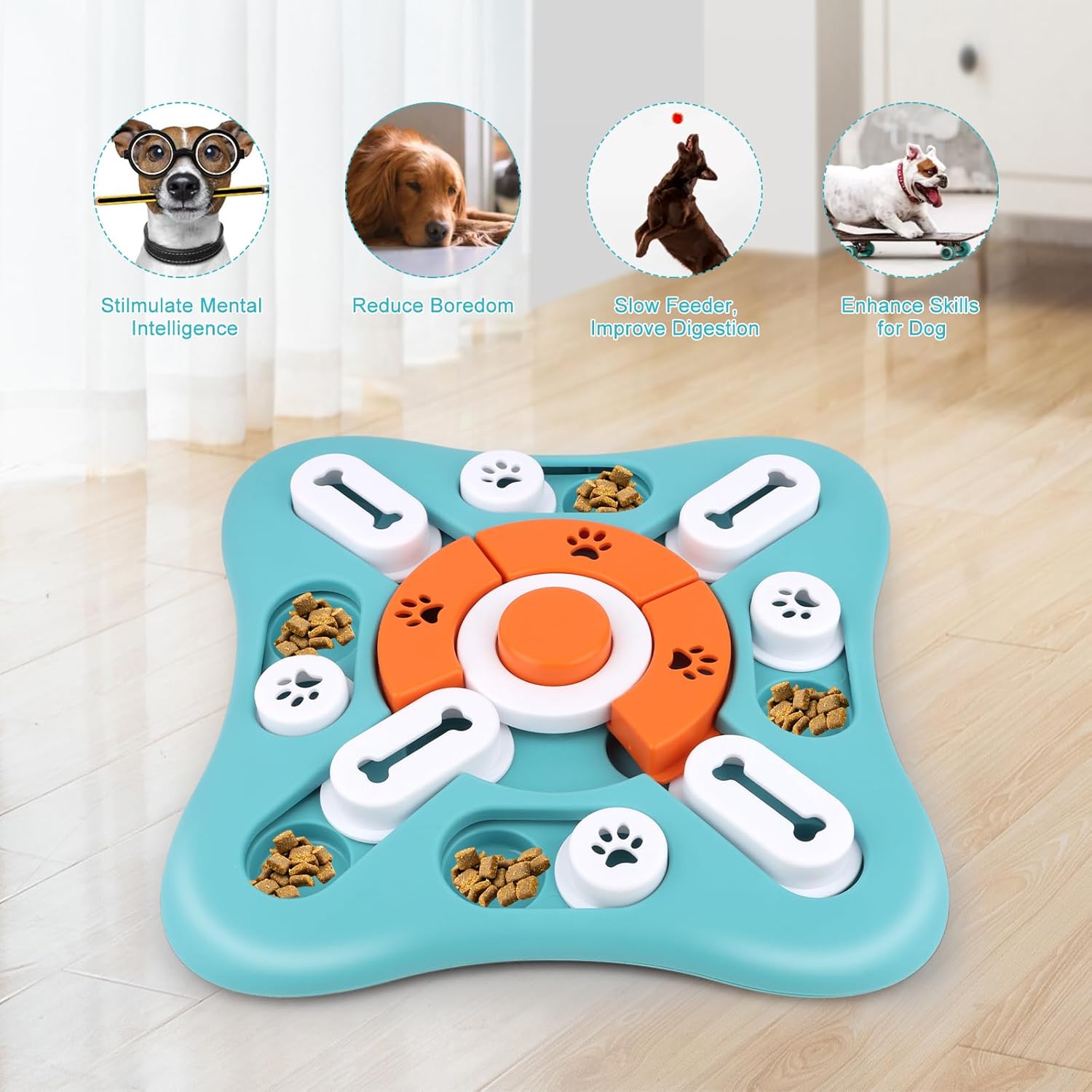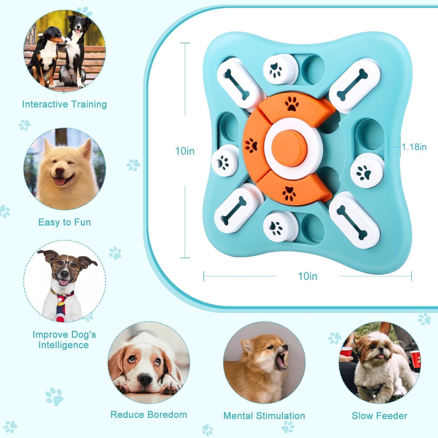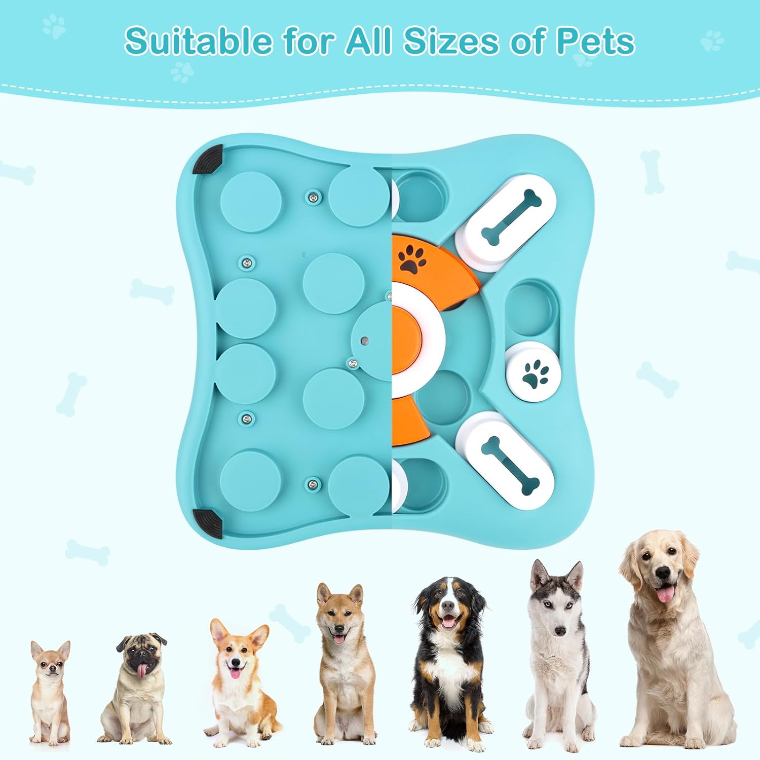 • Подходящо за всички кучета и котки: Чрез поставяне на храна или лакомства под плъзгача, кучетата или котките могат да си заслужат лакомствата с известно умение и търпение. Тази играчка за кучета няма подвижни части, тъй като е оборудвана с вградени фигурки, които не са лесни за премахване. Интелигентната играчка за кучета (25,4 x 25,4 x 3 см) е подходяща за големи, средни и малки кучета.