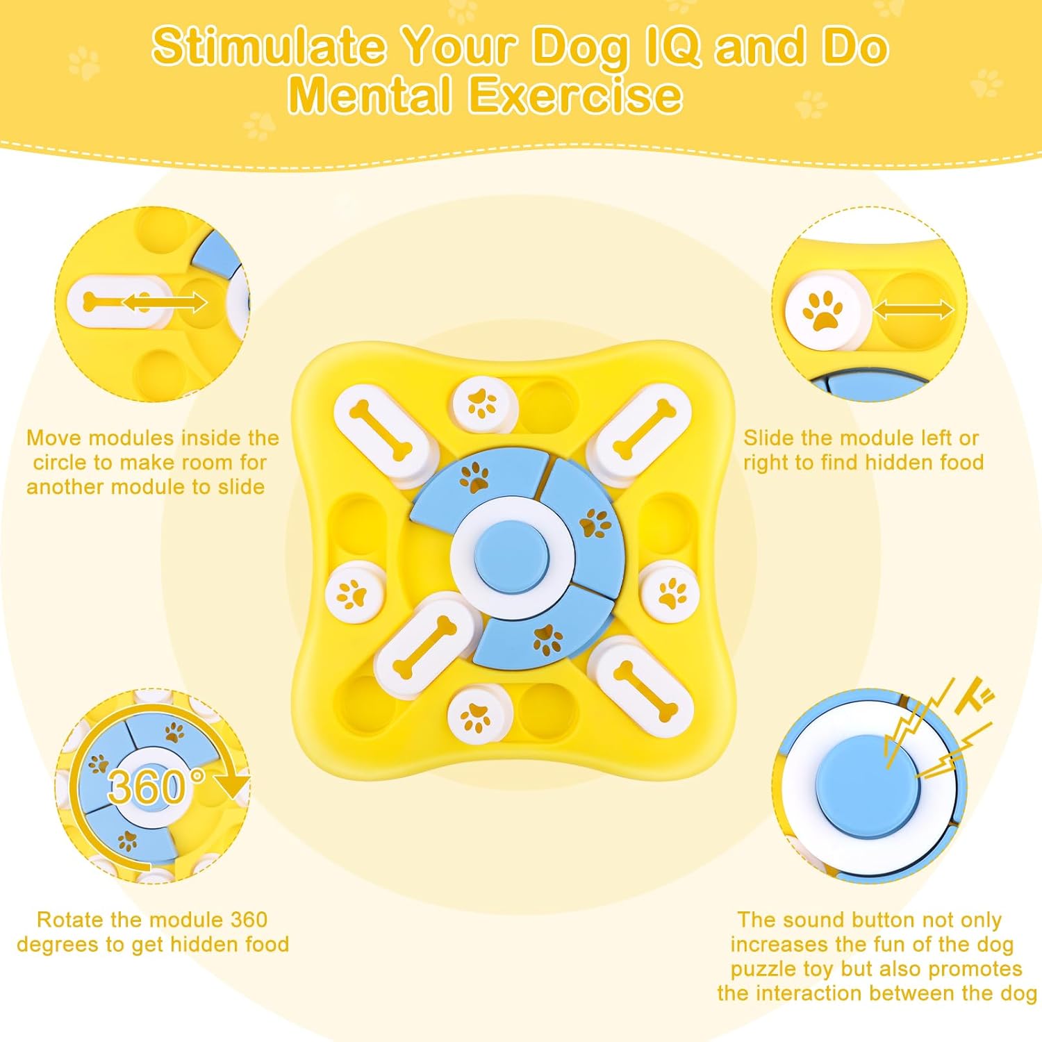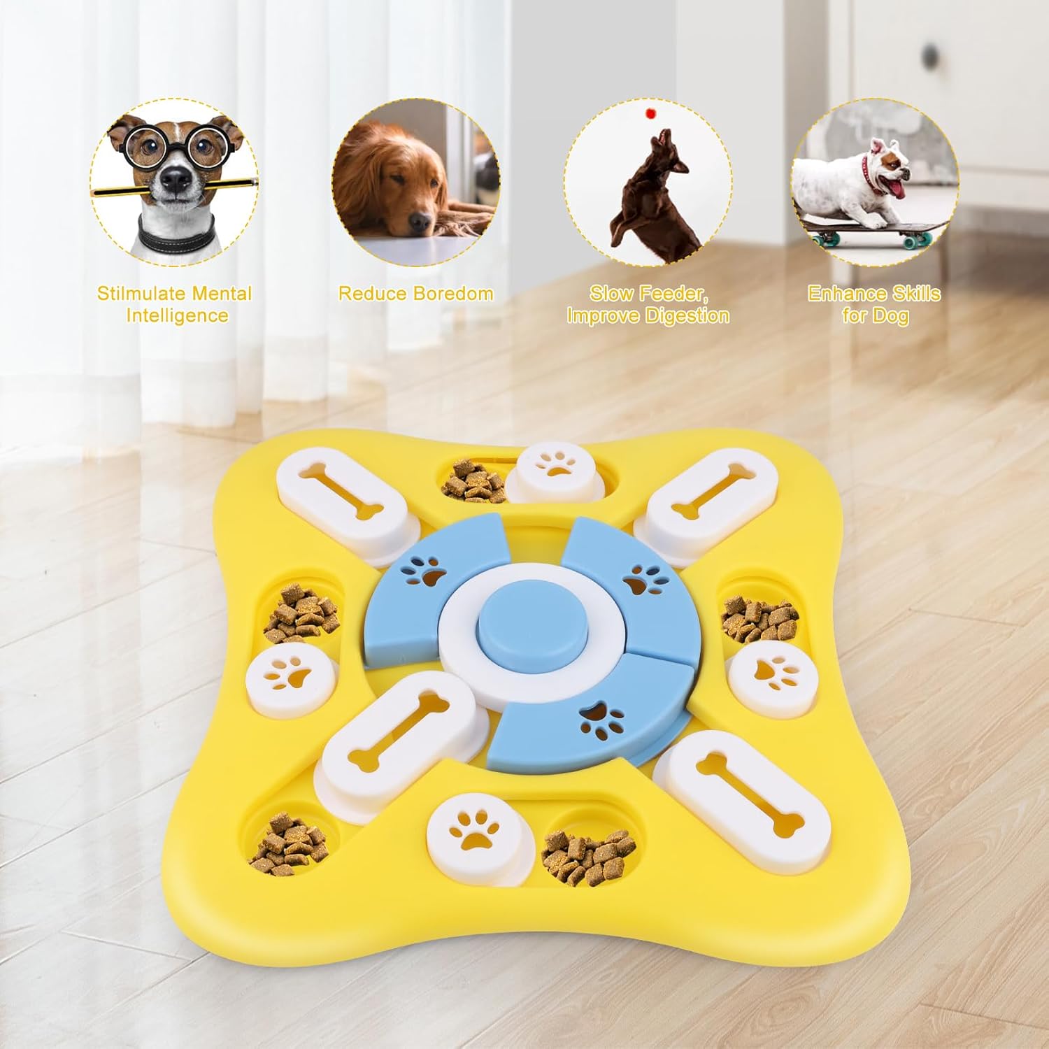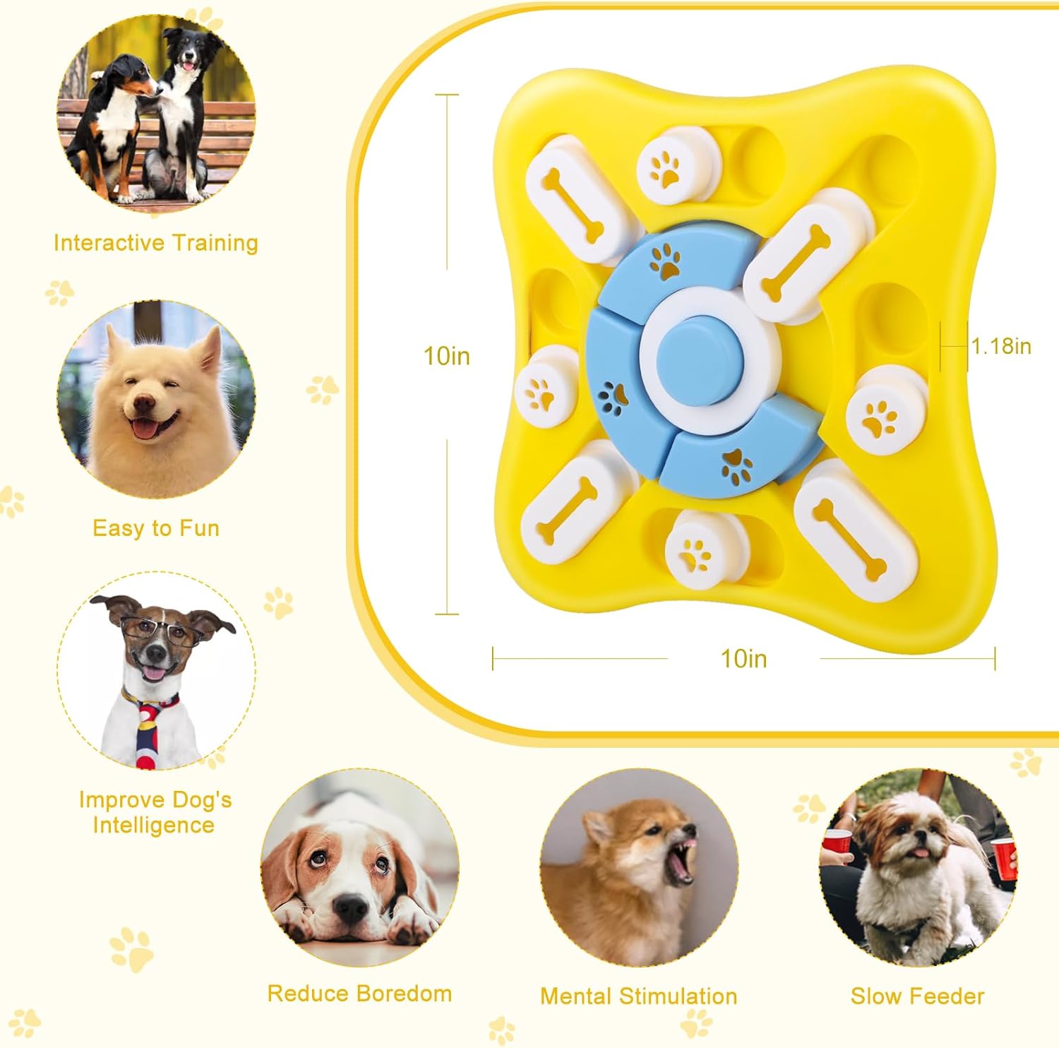 • Подходящо за всички кучета и котки: Чрез поставяне на храна или лакомства под плъзгача, кучетата или котките могат да си заслужат лакомствата с известно умение и търпение. Тази играчка за кучета няма подвижни части, тъй като е оборудвана с вградени фигурки, които не са лесни за премахване. Интелигентната играчка за кучета (25,4 x 25,4 x 3 см) е подходяща за големи, средни и малки кучета.