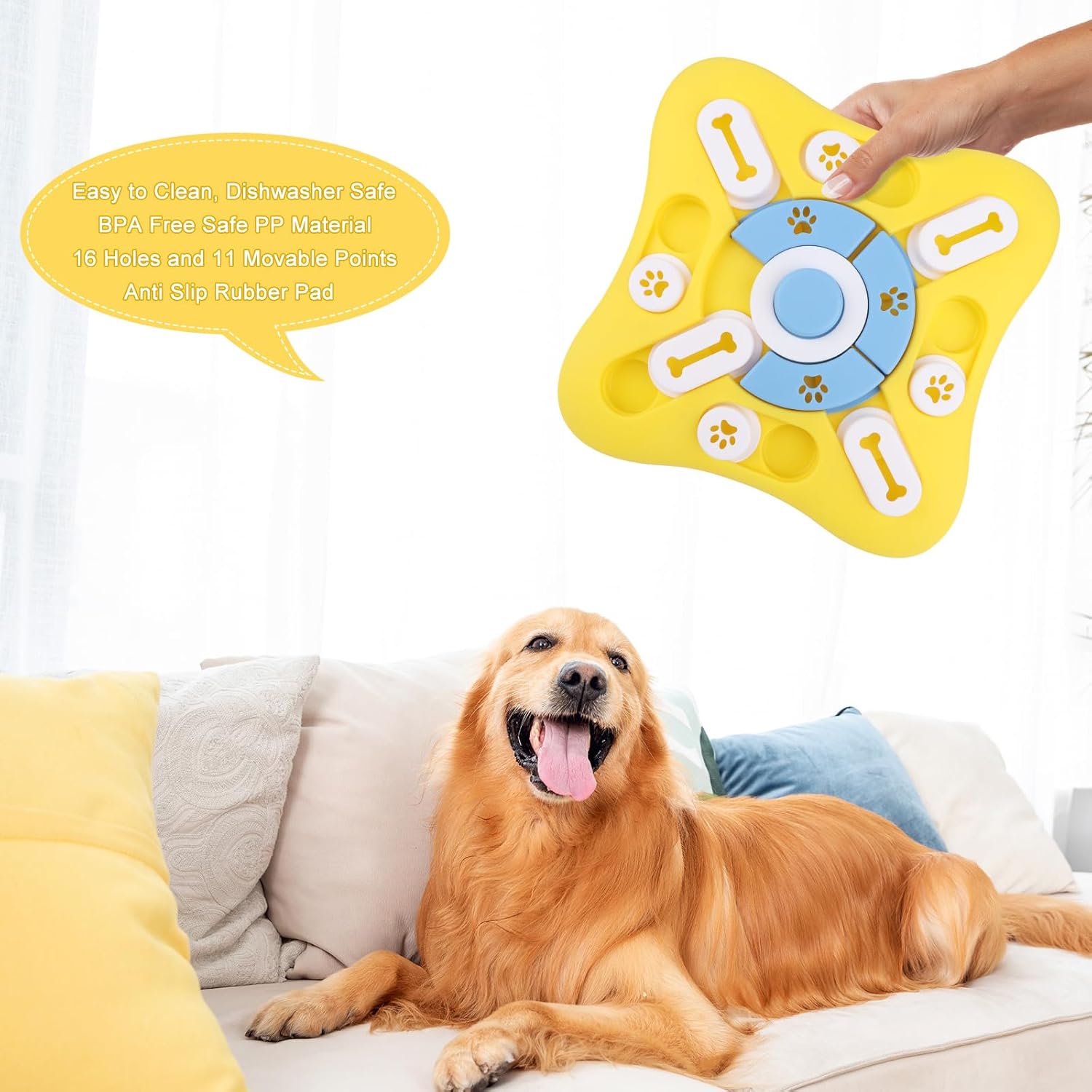 • Перфектен дизайн, най-добрият подарък за кучета: скърцащ бутон в средата, за да привлече вниманието на кучета и котки. 11 точки на движение и 16 отвора за хранене, за да се увеличи максимално времето за хранене и да се насърчи естественият ловен инстинкт на вашия домашен любимец, така че умните кучета да могат да използват уменията си за нос и лапа, за да намерят отделните стъпки за подобряване на коефициента на интелигентност на кучето и да тренират обонянието на своя домашен любимец.