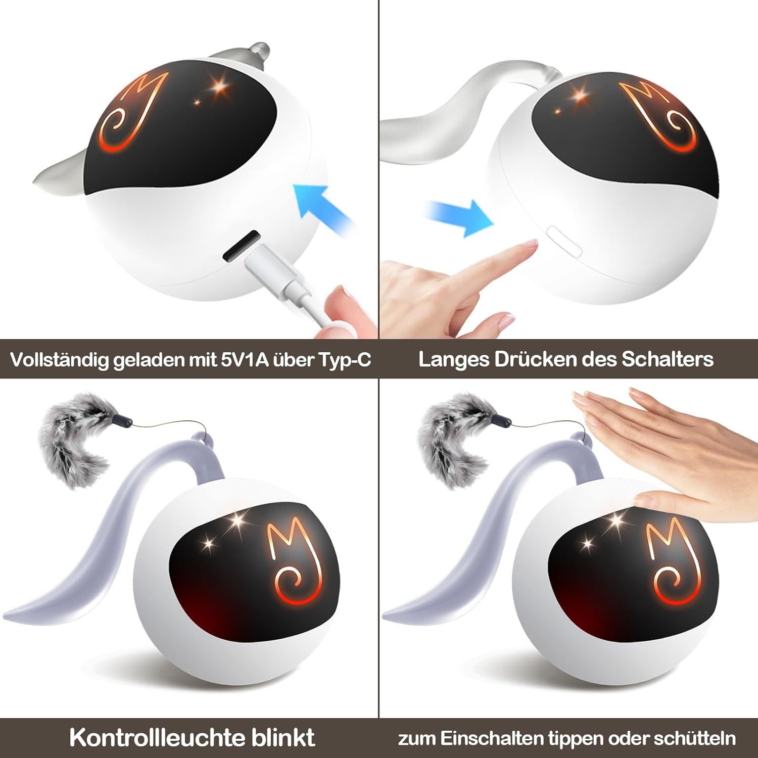 Migipaws Котешка футболна топка -- Плюшени мишки и пера като допълнителна играчка. Страхотната интерактивна и атрактивна играчка за вашите котки. Проектирана и разработена от екипи на MigipawsRD с десетилетия опит в индустрията за играчки за домашни любимци, използващи иновативен дизайн в тази интелигентна интерактивна играчка за котки с топка „Направи си сам“, комбинация от класическа играчка за котки.