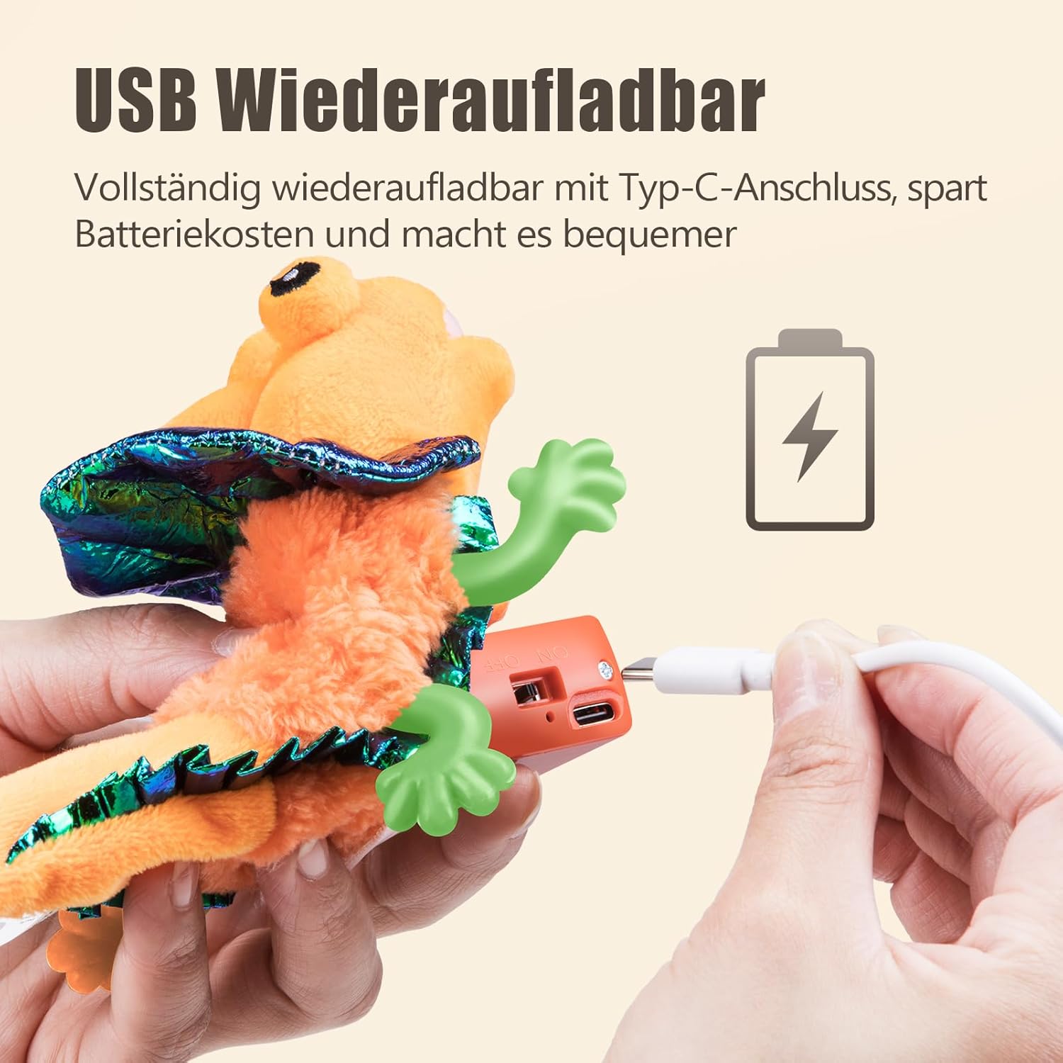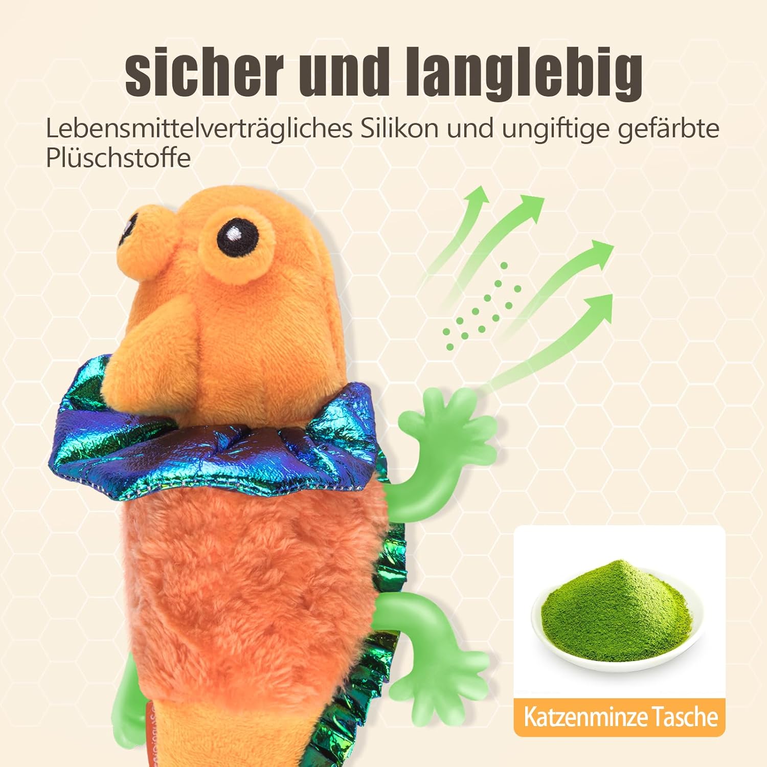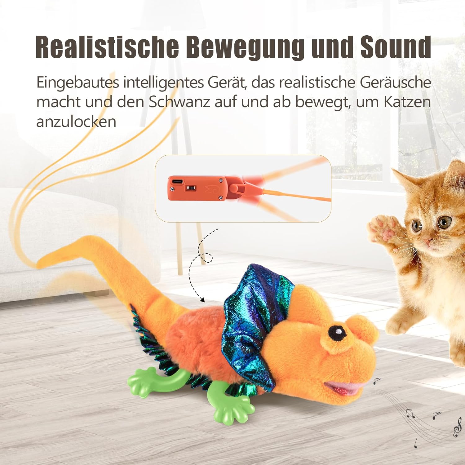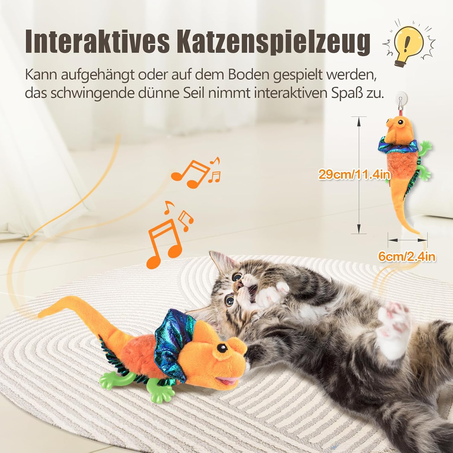 Играчка за котки Migipaws, плюшена играчка електрически гущер, истински люлки и цвърчащи, интерактивно висящо забавление, с котешка трева, презареждаща се (оранжева)