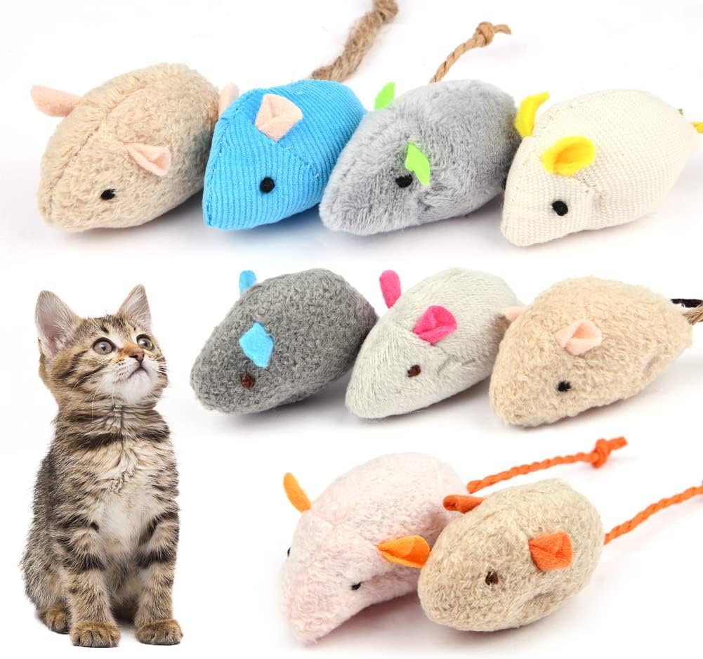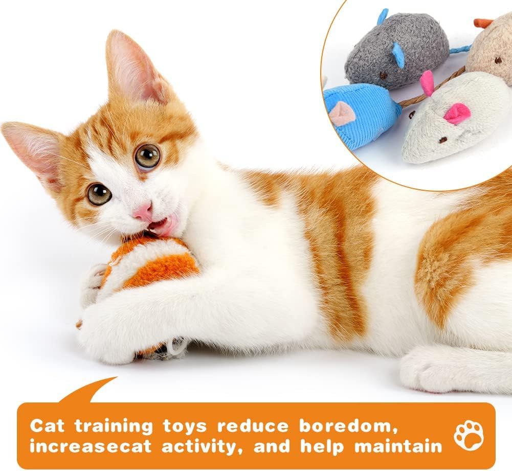 Adiwo 9 части играчки с котешка трева за котки, реалистични малки плюшени играчки с мишка, симулатор за хващане на мишка с котка, меки плюшени играчки с котешка трева, фалшиви играчки с мишка, играчки за котенца, интерактивни играчки за котки за вътрешна и външна употреба, премахват скуката