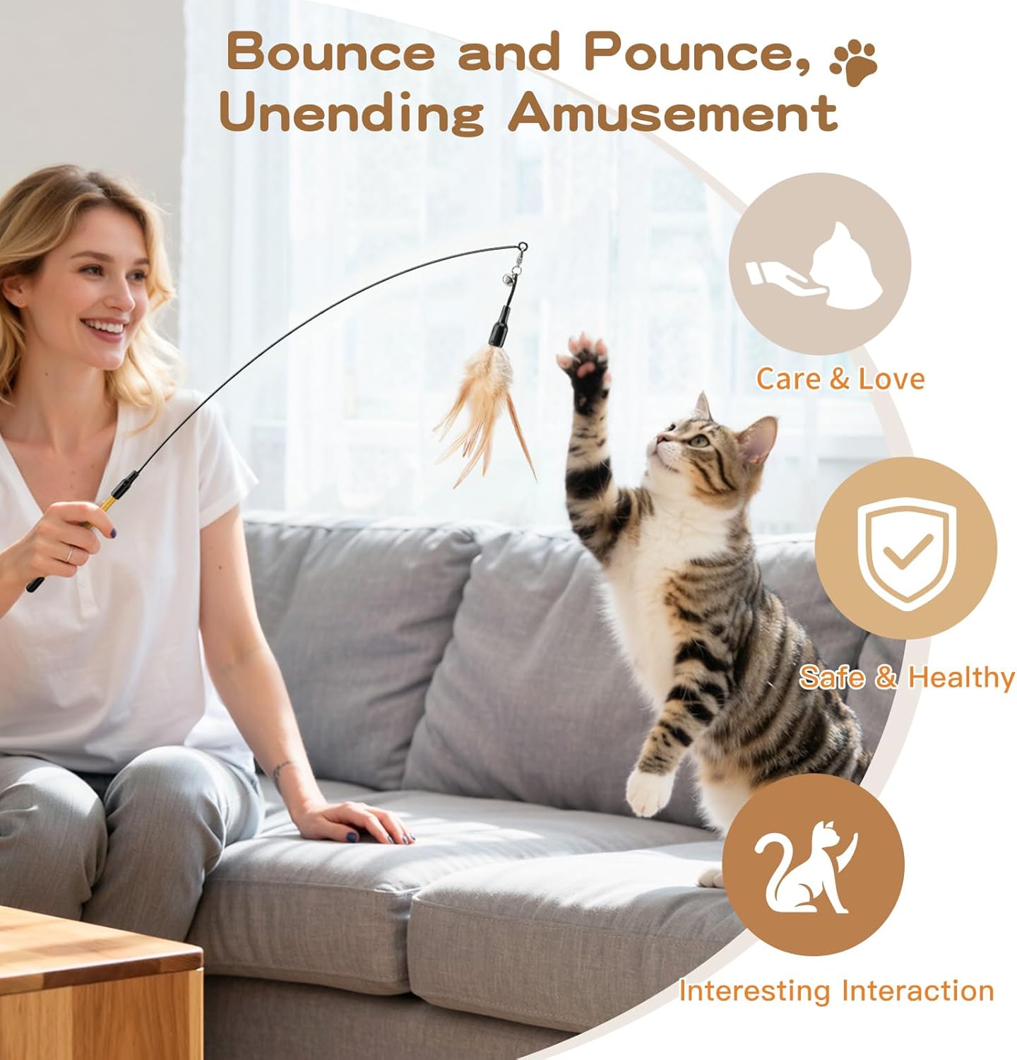 • Естественото пружинно движение на върха на пръчката активира естествения инстинкт на котката за лов и падане и насърчава здравословната активност.