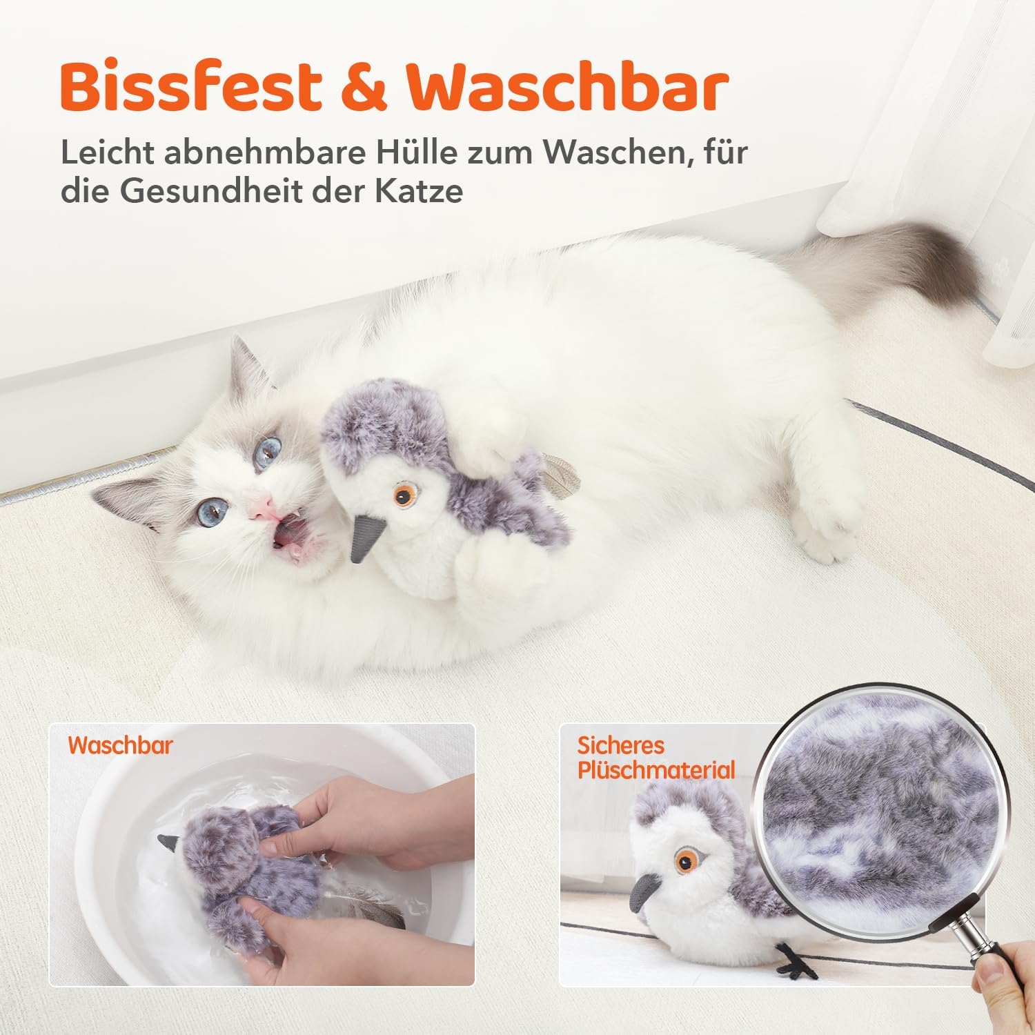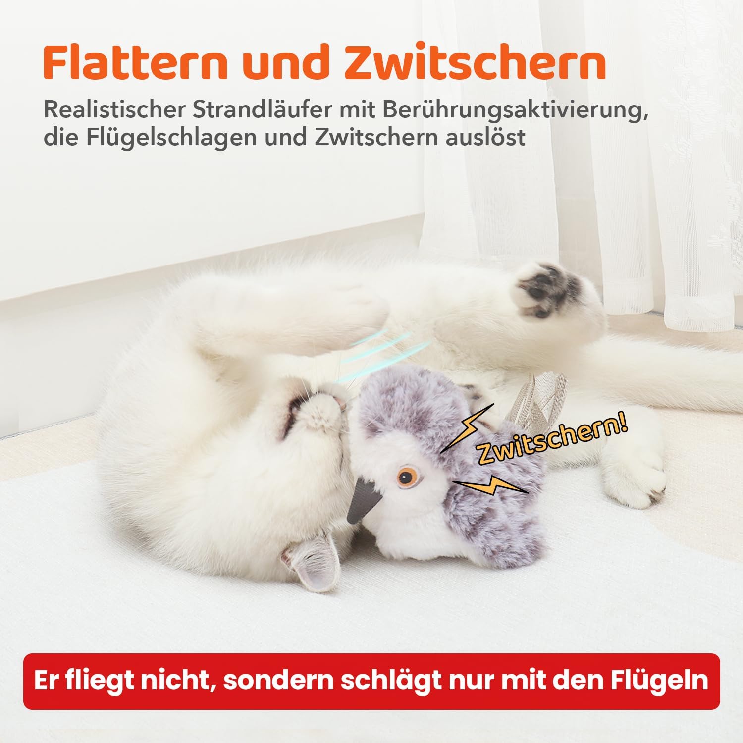 • Реалистична играчка за птици с чуруликане: Меката птица бекас издава реалистични чуруликащи звуци, които насърчават естествения ловен инстинкт на вашата котка. Акцент сред играчките за птици - идеална за котки, които обичат разнообразието.