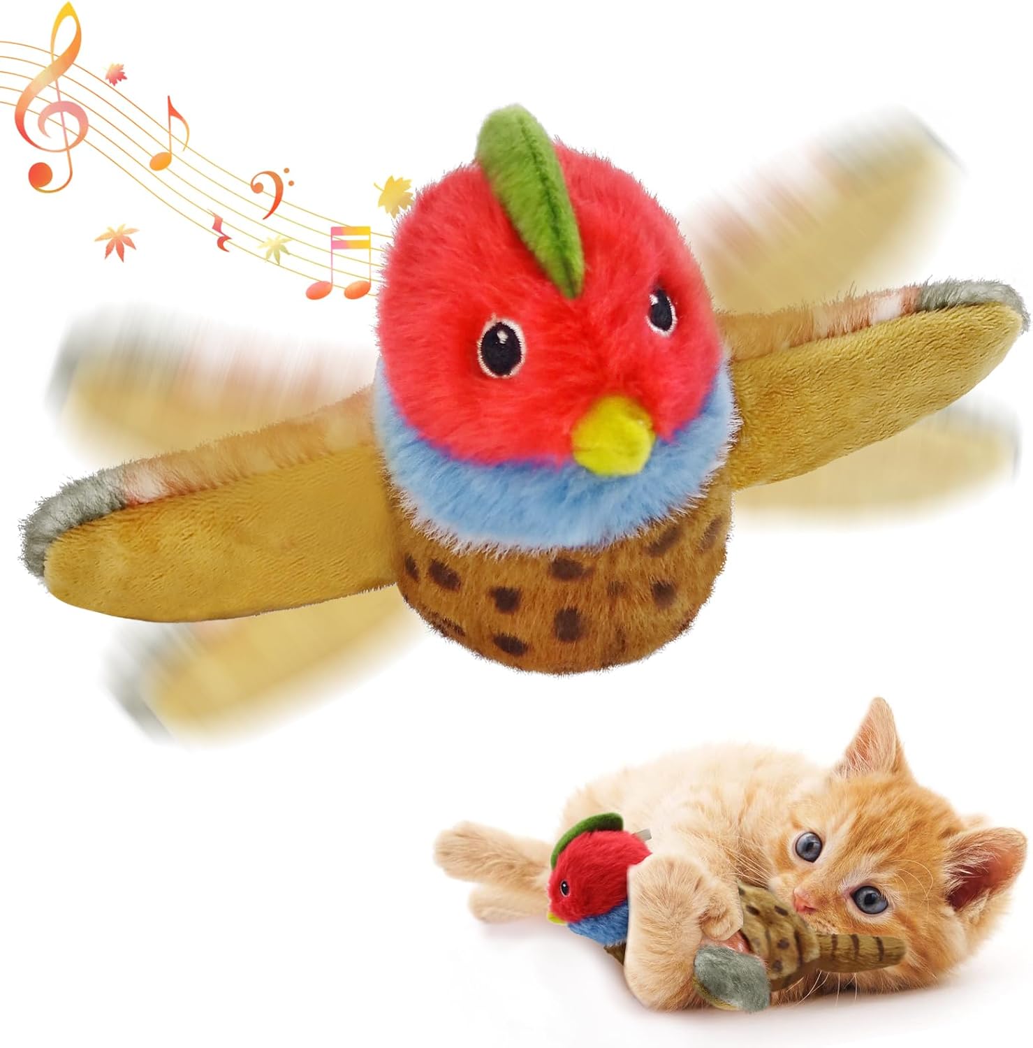 • НАЙ-ДОБРАТА ИДЕЯ ЗА ПОДАРЪК Ако търсите уникална интерактивна играчка за вашия любимец с пухкаво носле, тази чуруликаща пърхаща птичка с аромат на котешка трева е перфектният избор. Идеалният подарък за Деня на благодарността, Коледа, Нова година или просто за ежедневно носене.