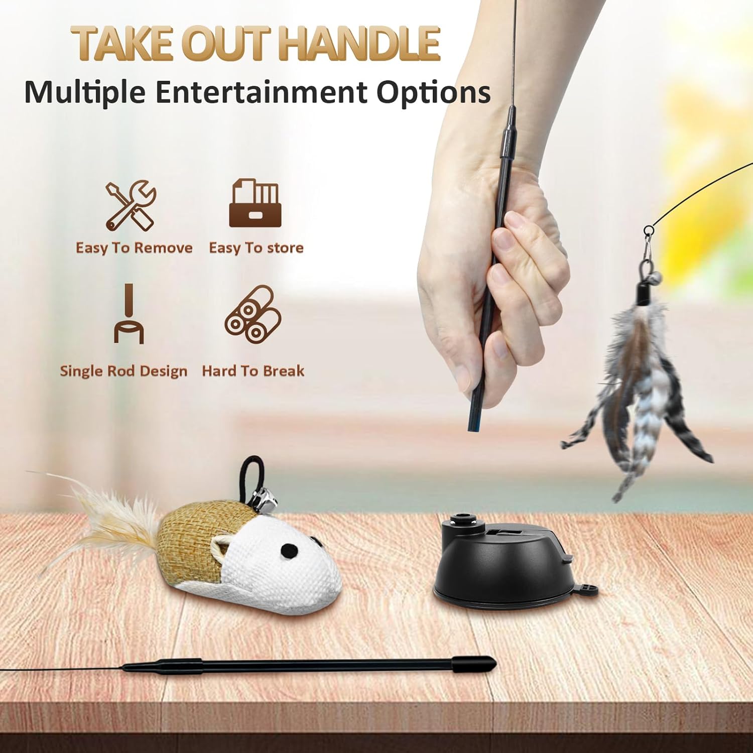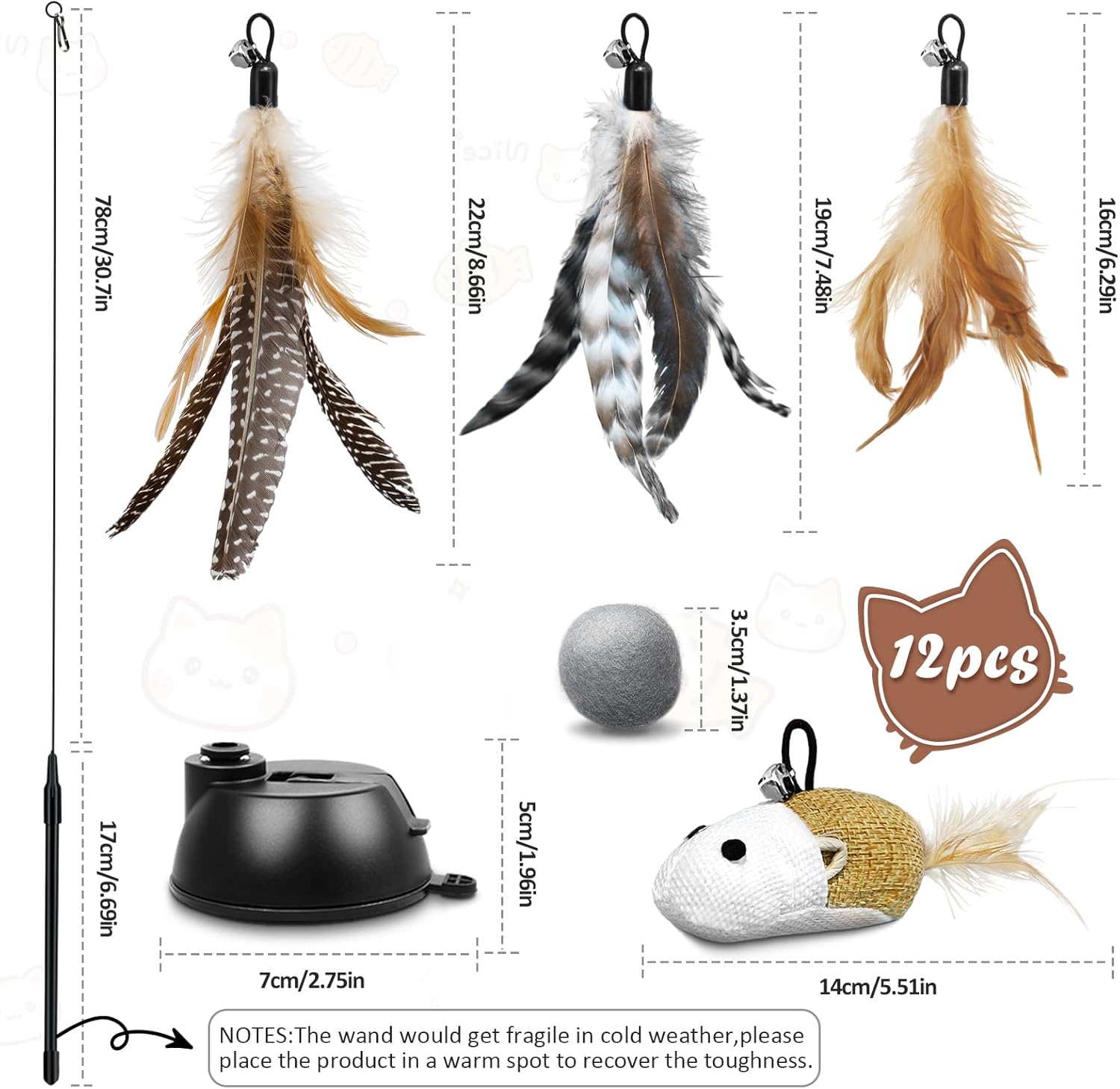 • В студено време пръчката за играчки за котки може да стане леко крехка, което увеличава риска от счупване. Моля, оставете я за кратко на топло място преди употреба, за да стане отново гъвкава. - Благодарим ви за разбирането.