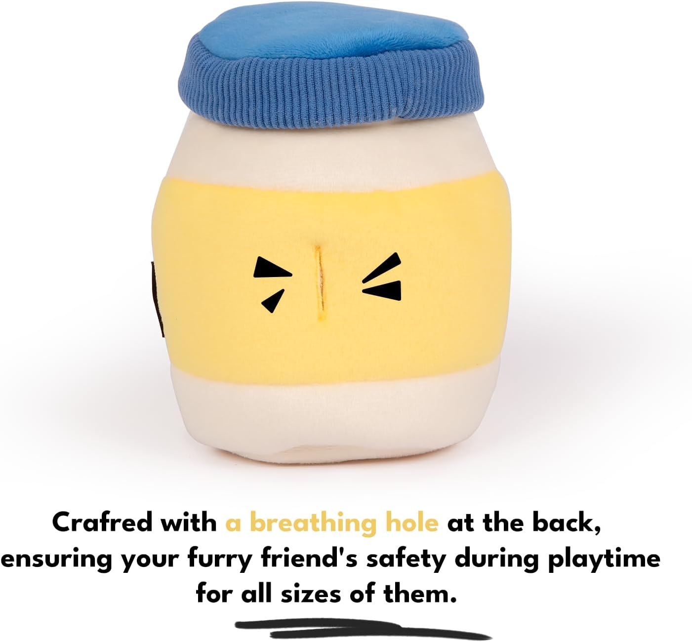 ВЪВЕДЕНИЕ ЗА ВАШЕТО КУЧЕ Нека кучето ви изследва играчката с носа и лапите си. Уникалният дизайн и аромат ще го очароват сами. СКРИЙТЕ ЛАКОМСТВА Отворете плюшения буркан и поставете лакомства или суха храна в какадицата. За допълнително забавление можете също да скриете лакомства в самия буркан, за да насърчите кучето си да подуши и изследва. ПОДОБРЯВАЙТЕ ВЗАИМОДЕЙСТВИЕТО Покажете на кучето си как работи играчката, като леко стиснете или разклатите какадицата, за да освободите лакомство. Насърчаването и положителното подкрепление помагат на кучето ви да разбере модела на игра. Надзор по време на игра: Винаги наблюдавайте кучето си, докато играе с играчката. Това гарантира, че то използва играчката правилно и безопасно и предотвратява случайно поглъщане на части от играчката.