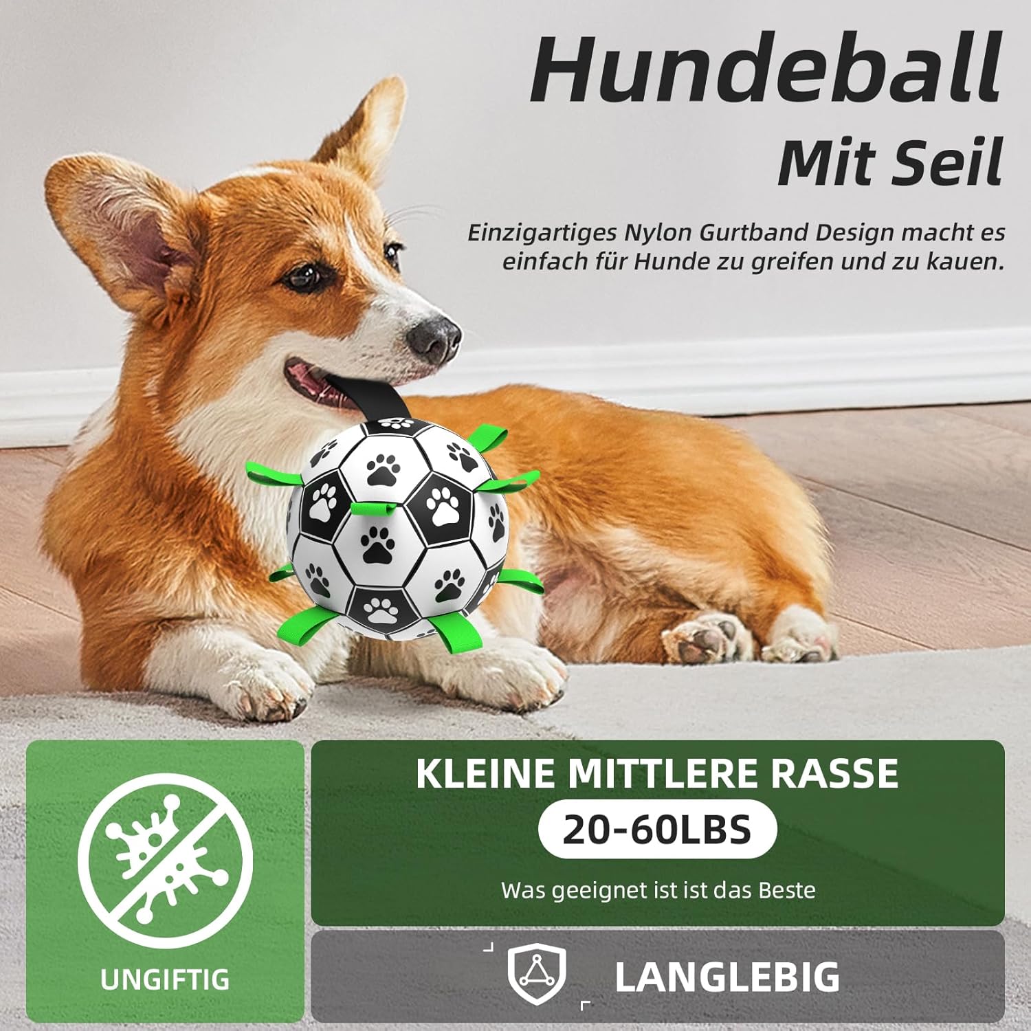 • Играчка за кучета HETOO: Уникалният дизайн на футболна топка с каишки отговаря на нуждите на кучетата при хапане, лов и обучение. В същото време, черно-бяло-зеленият дизайн, подходящ за зрението на кучето, ефективно привлича вниманието му.