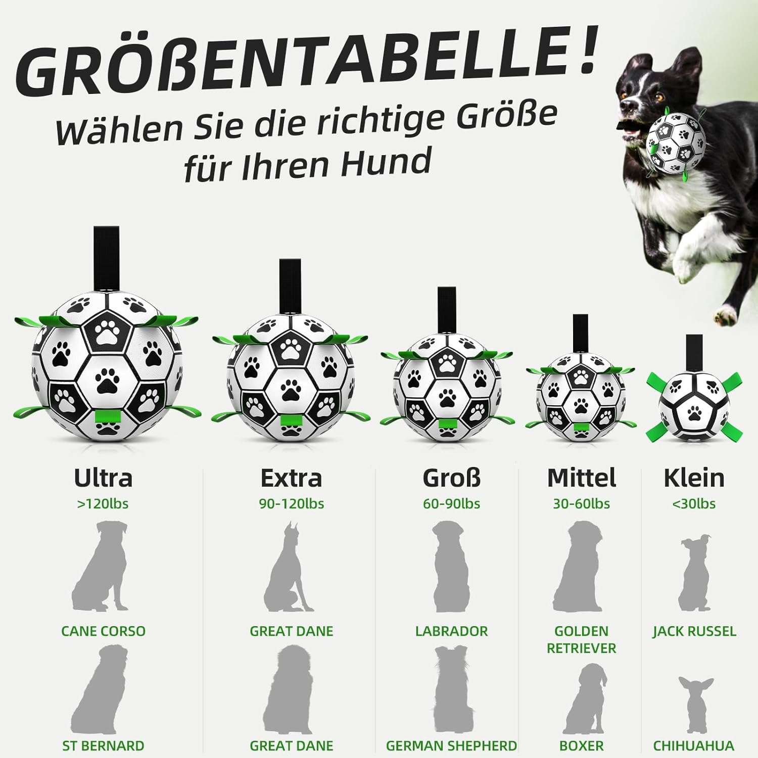 • Топка за кучета с презрамки: Найлоновата каишка на топката осигурява радост както за любителите на кучета, така и за техните космати приятели. Можете да играете игри на дърпане на въже, гонене или изследване и, разбира се, много други нови възможности за игра ви очакват да бъдат отключени от вас.
