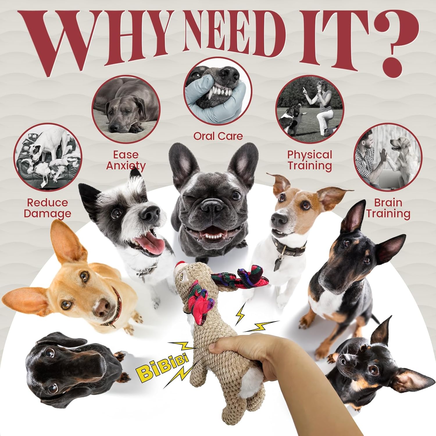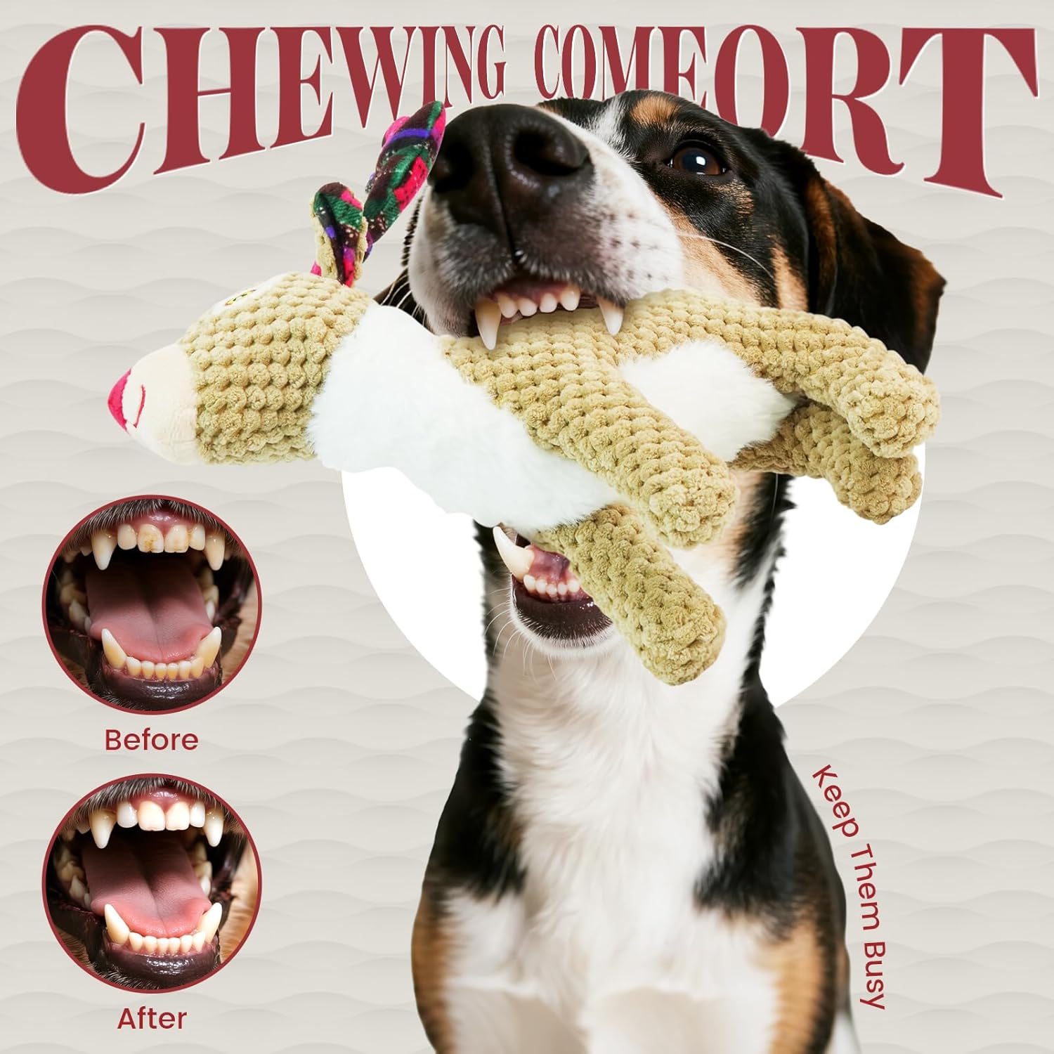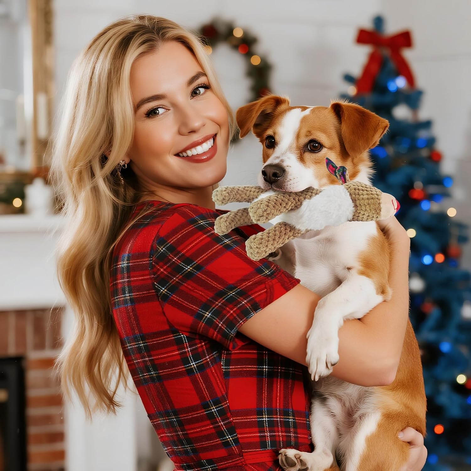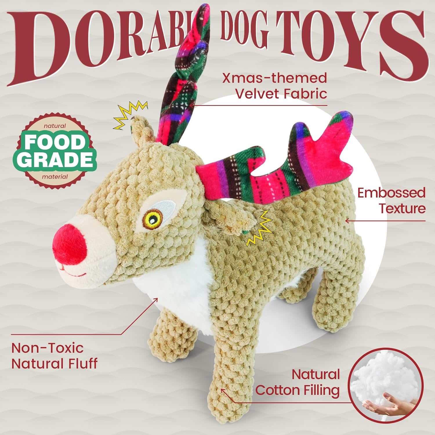 Играчка за кучета Коледен елен - Плюшена скърцаща играчка за кучета и кученца, Интерактивна играчка за дъвчене, Малки, средни и големи кучета