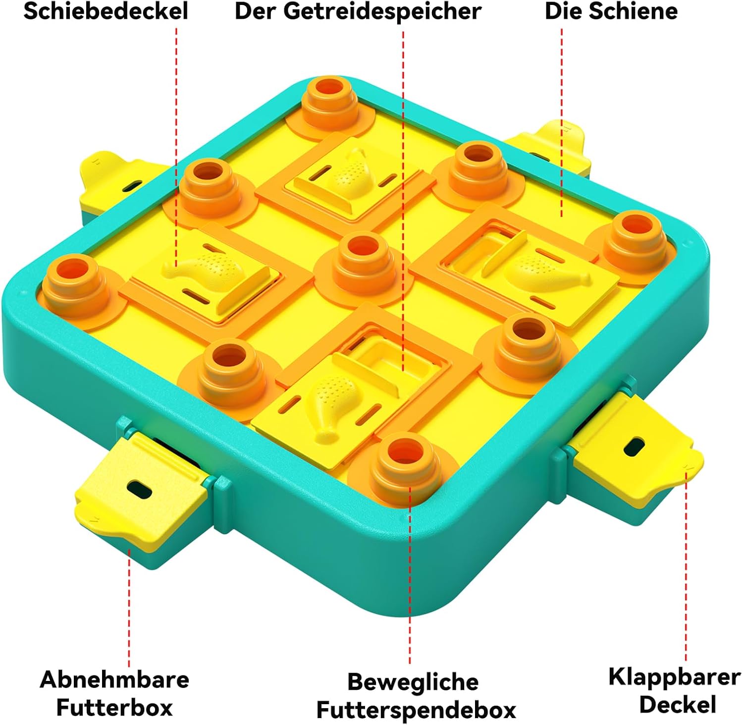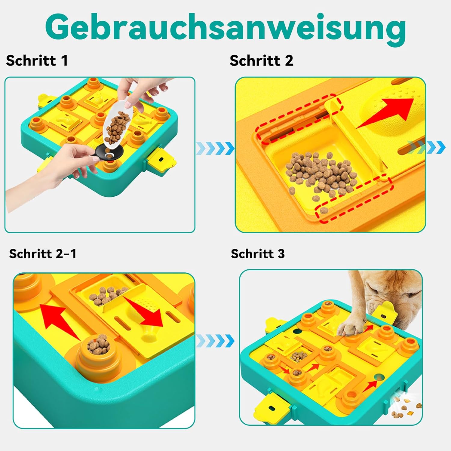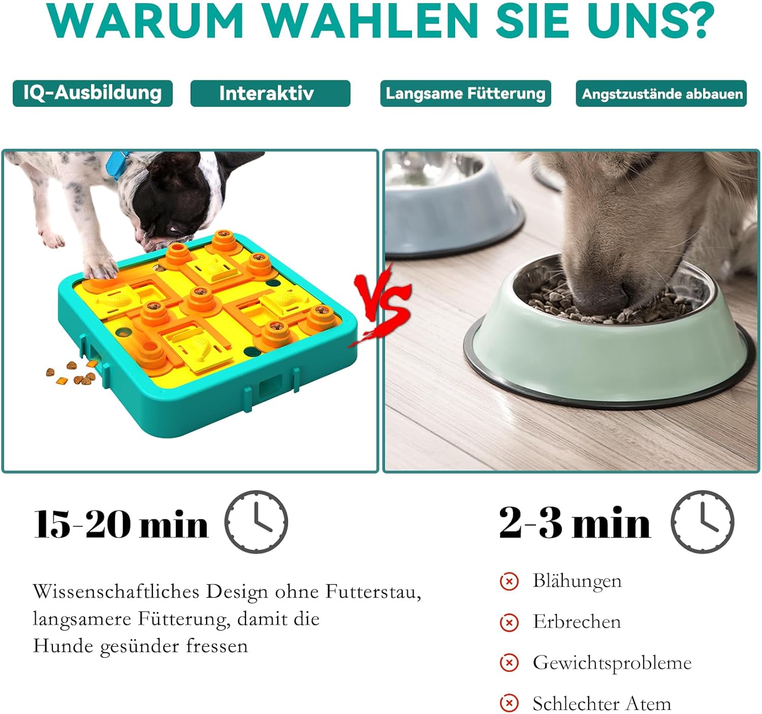 • Ниво 1 и ниво 2 Тази умна играчка за кучета има ниво на трудност 1 плюс ниво 2, можете да използвате ниво 1 или ниво 2 самостоятелно, един продукт, два начина на игра, което напълно спестява разходите ви за образователни играчки. Долната част на играчката е оборудвана с 4 неплъзгащи се подложки, за да се предотврати кучето да събаря играчката по време на игра, и може да се използва на всякаква повърхност.