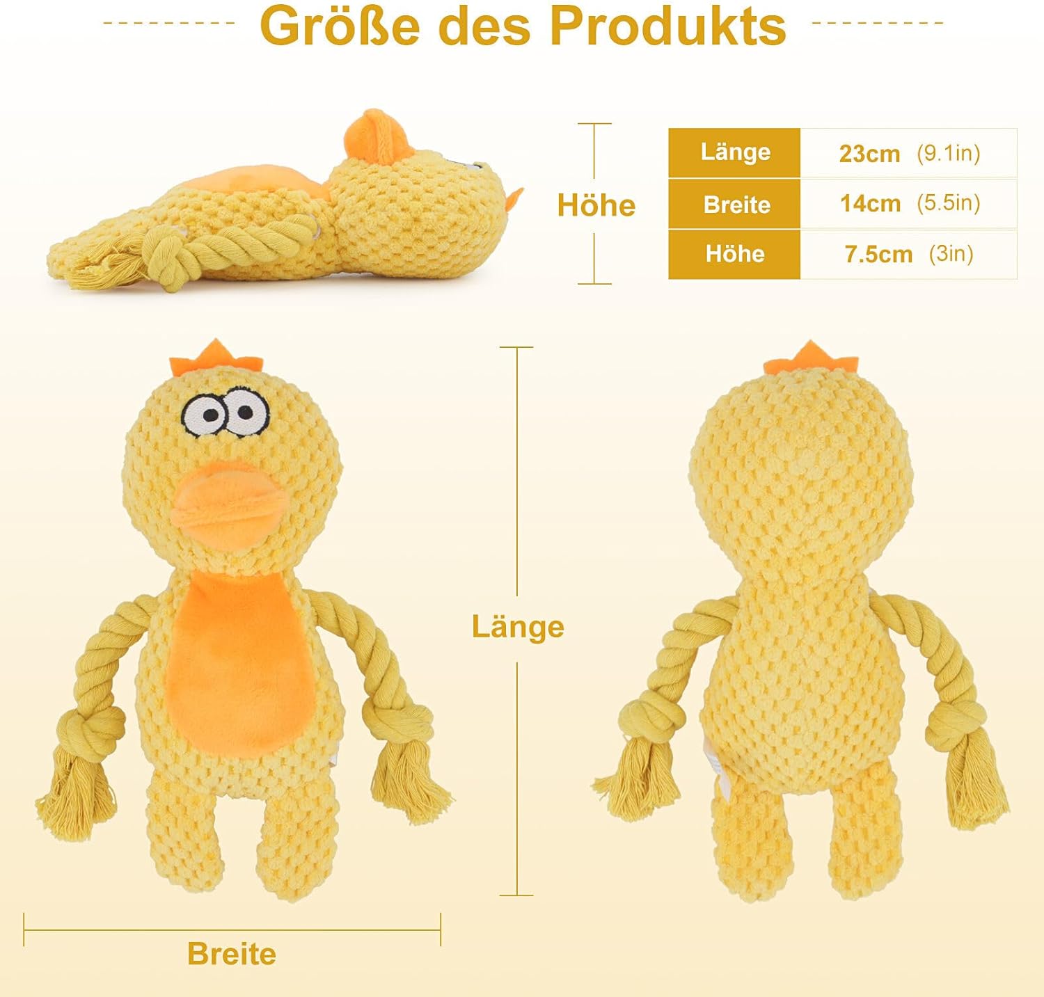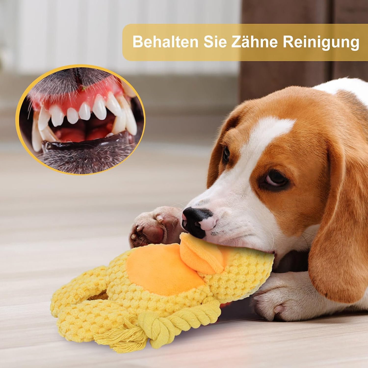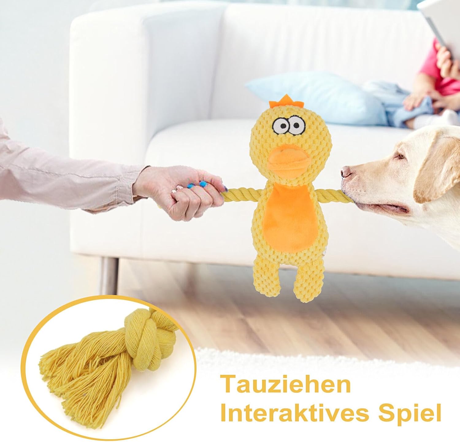 Играчка за кучета, Скърцаща играчка за кучета с набръчкана хартия, Плюшена играчка за кучета, Плюшена играчка за дъвчене, Интерактивна играчка от памучно въже за кученца, Малки, Средни кучета (Жълто пате)
