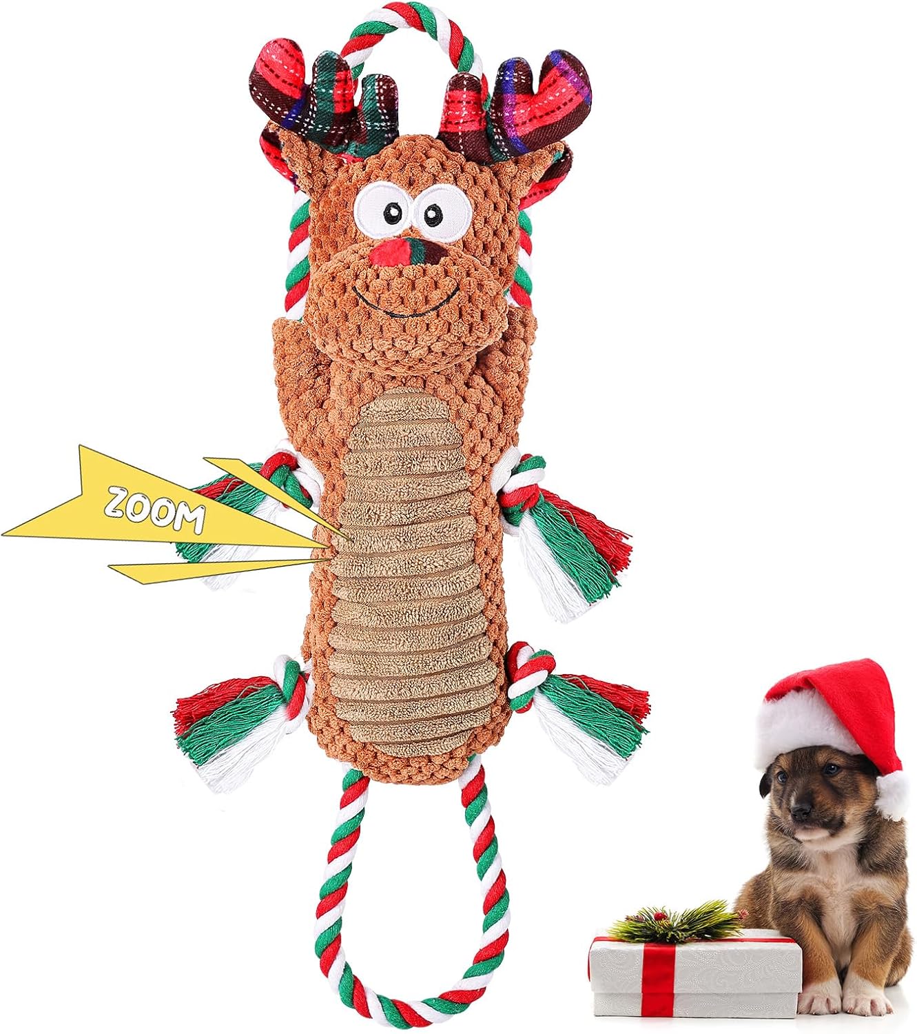 Играчка за кучета Squeaky, Коледна играчка с дърпане на лос, за малки кучета, интерактивна играчка за пране за малки, средни кучета, кученца