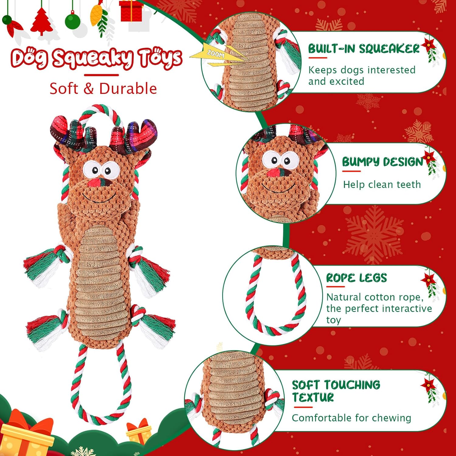 • Перфектен коледен подарък: тези пухкави играчки за кучета са специално проектирани за Коледа и съдържат елементи с лосове, които създават силна празнична атмосфера за Коледа и са перфектен избор за подарък за вашето куче.